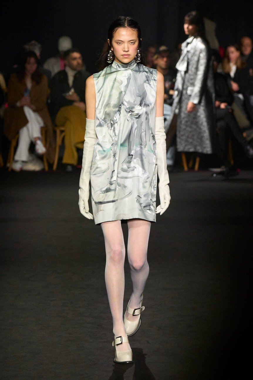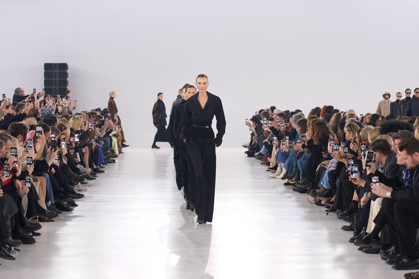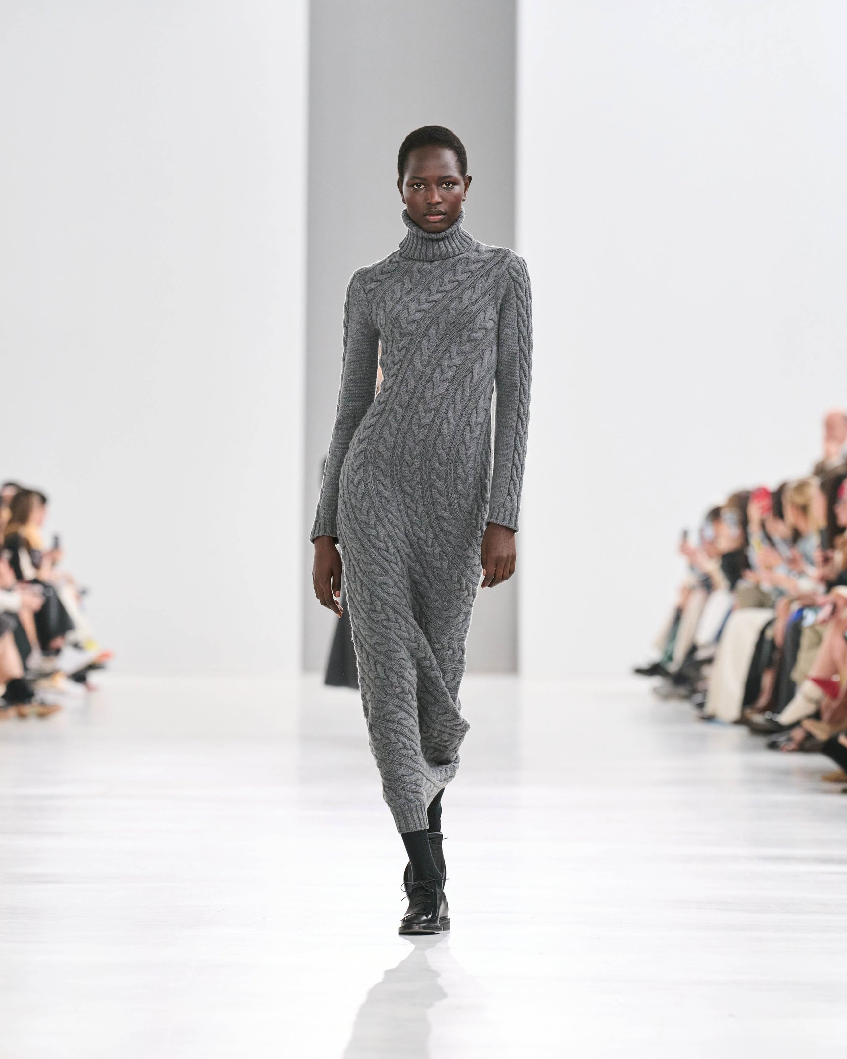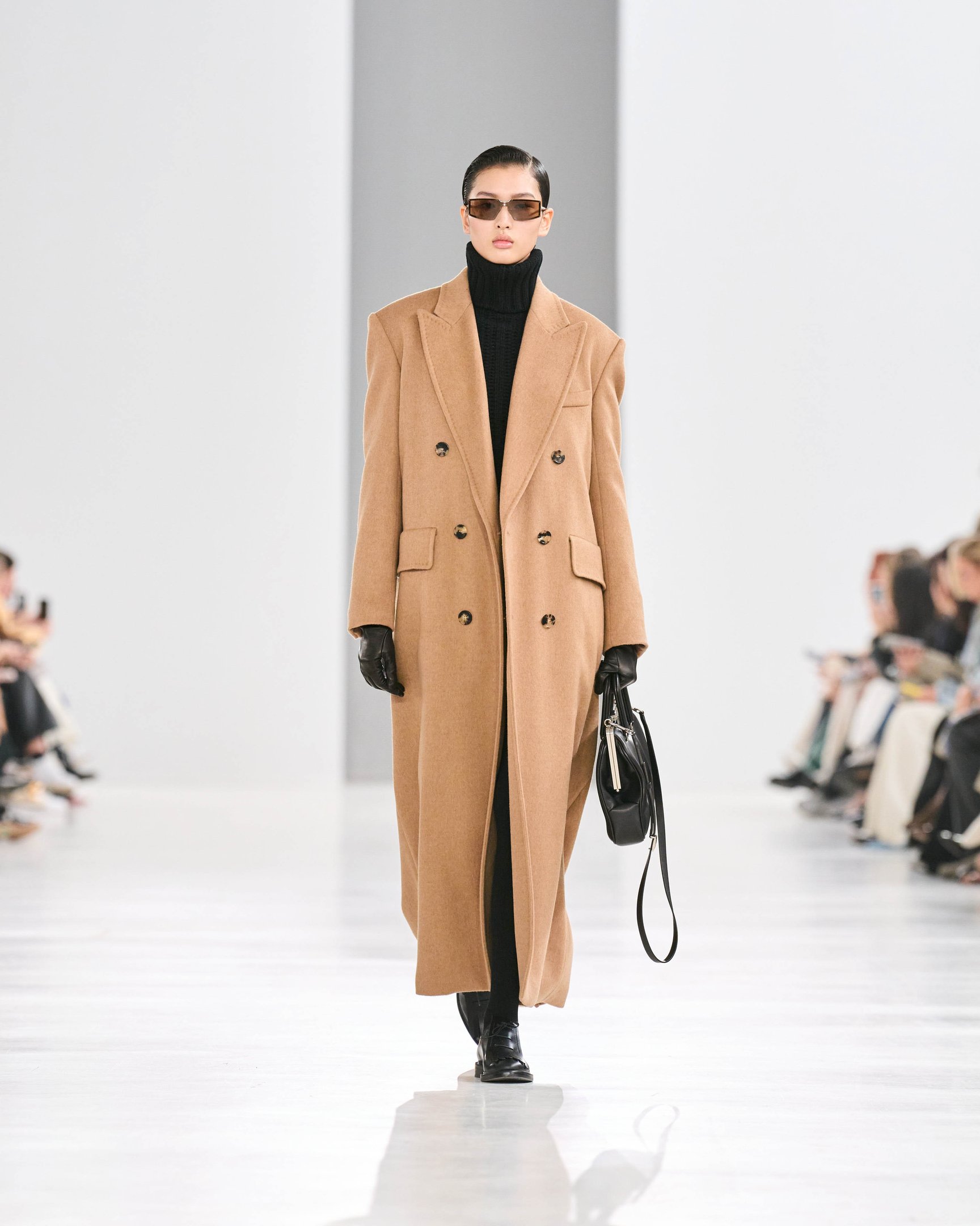 イアン?グリフィス(Ian Griffith)が手掛けるマックスマーラは、フランスの作家 コレット(Colette)から着想を得て、“人生を自らコントロールできる完璧な女性像”を表現。「インナーライフ(THE INNER LIFE)」と題し、余分なものが削ぎ落とされた、モダンかつスマートな装いを探究した。カラーは、深みのあるネイビーや漆黒、スモーキーグレーといった落ち着いたトーン。コレットがしばしば男性のような格好をしていたことから、黒を多用したハンサムな世界観を打ち出した。