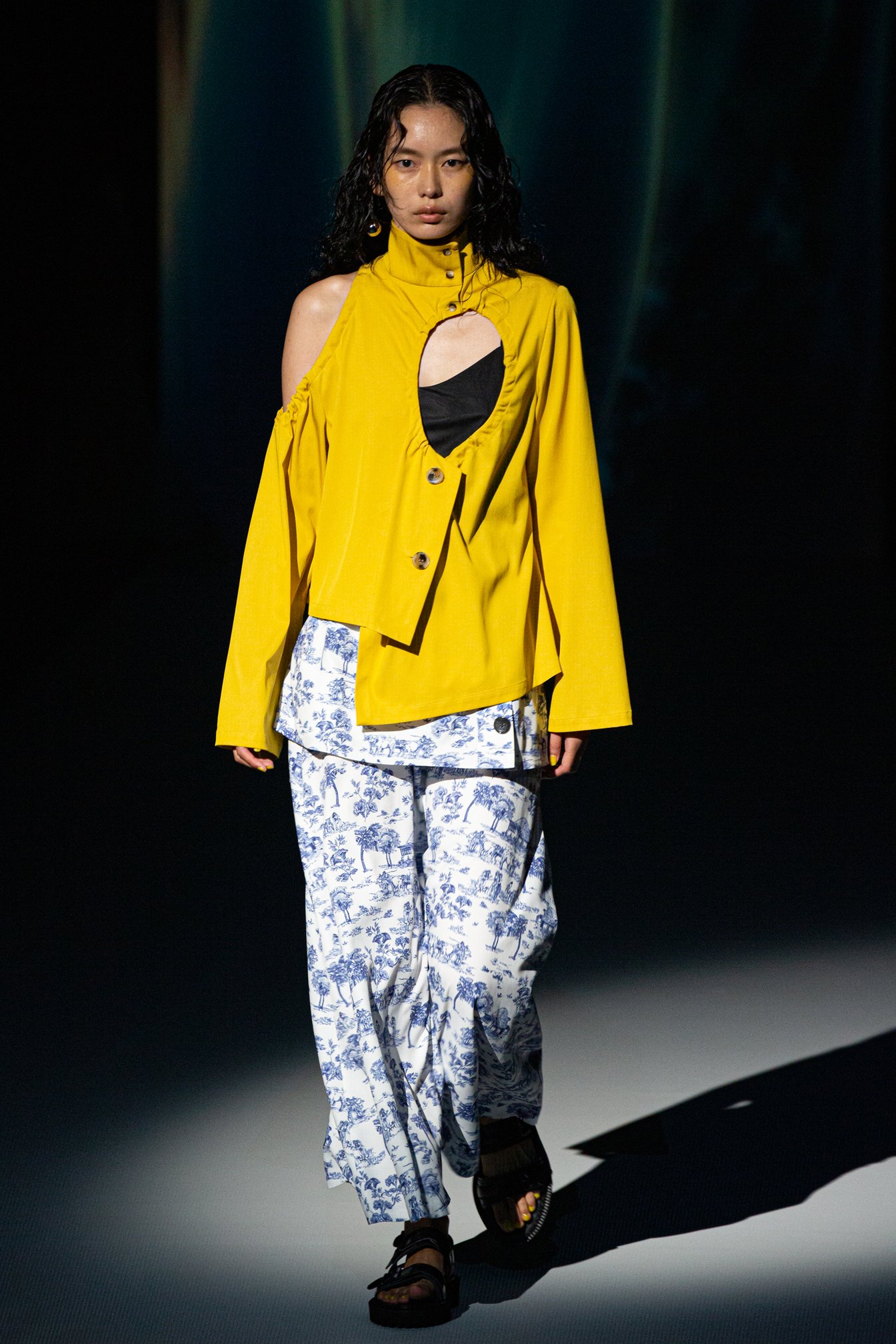 同ブランドは今シーズンから、半数以上のアイテムを環境に配慮した素材や、トレーサビリティ認証を得たテキスタイルに変更。素材や共に働く人々との連帯強化にトライしたコレクションになったという。ファッションを取り巻く状況も、かつてとは大きく異なっている。コロナ禍において「装うこと」は大きく揺さぶられ、「サステナブル」という新たな価値観が注目される時代になった。ファッションにおけるサステナビリティの促進は、建築界における近代化、西洋化の波に類似しているようにも思う。進は「ファッション業界自体が向き合わないといけないこともある」とした上で、「個人的にはファッションにおけるデザインの部分が軽視されることは悲しく思っている」と涙ながらに訴えた。