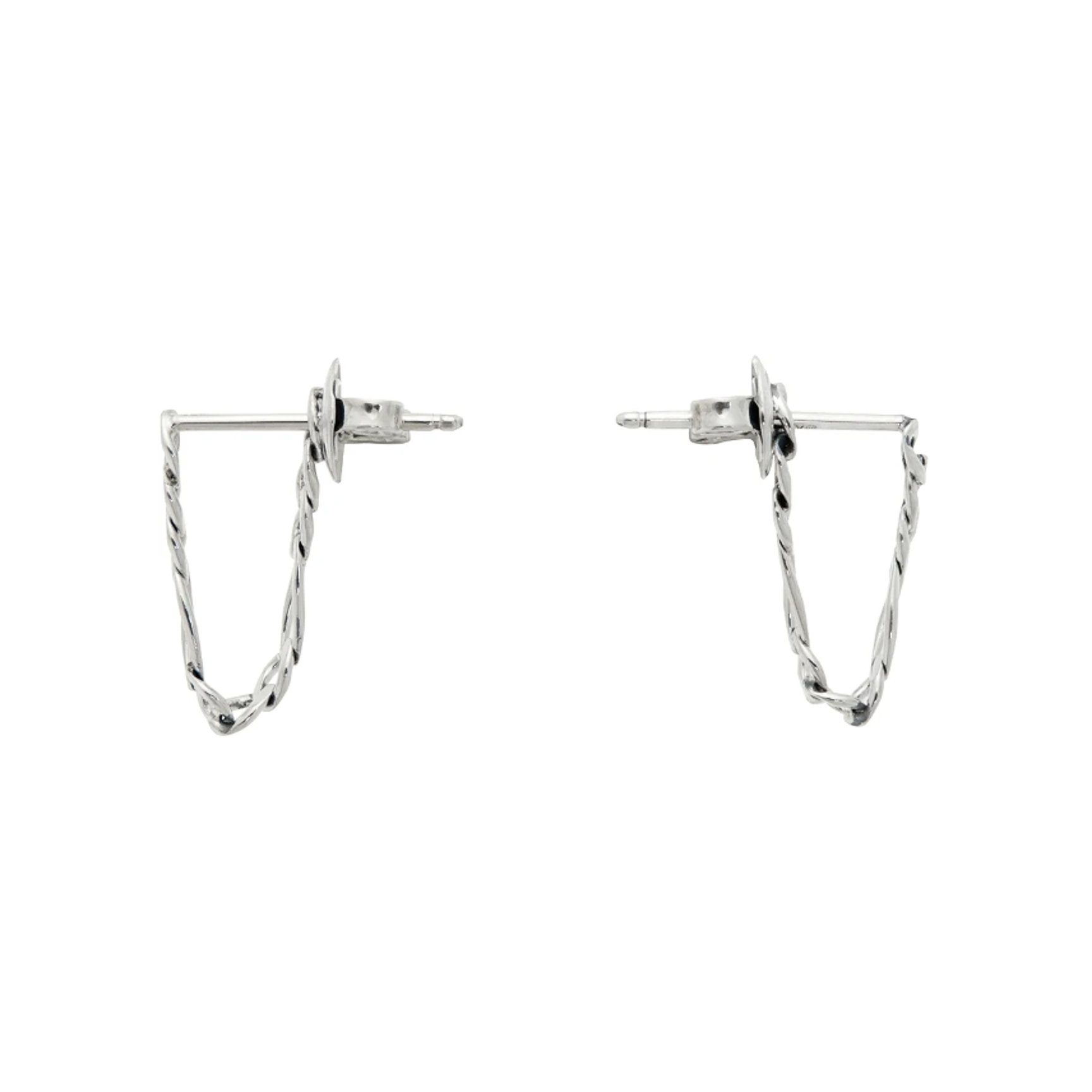 「ボッテガ?ヴェネタ(BOTTEGA VENETA)」のピアスは、925スターリングシルバーでできたイタリア製。一見、細めのリングピアスに見えるデザインですが、チェーンディテールの独特なデザインが特徴。繊細ながらも、耳元に上品さと高級感をプラスしてくれるミニピアスです。