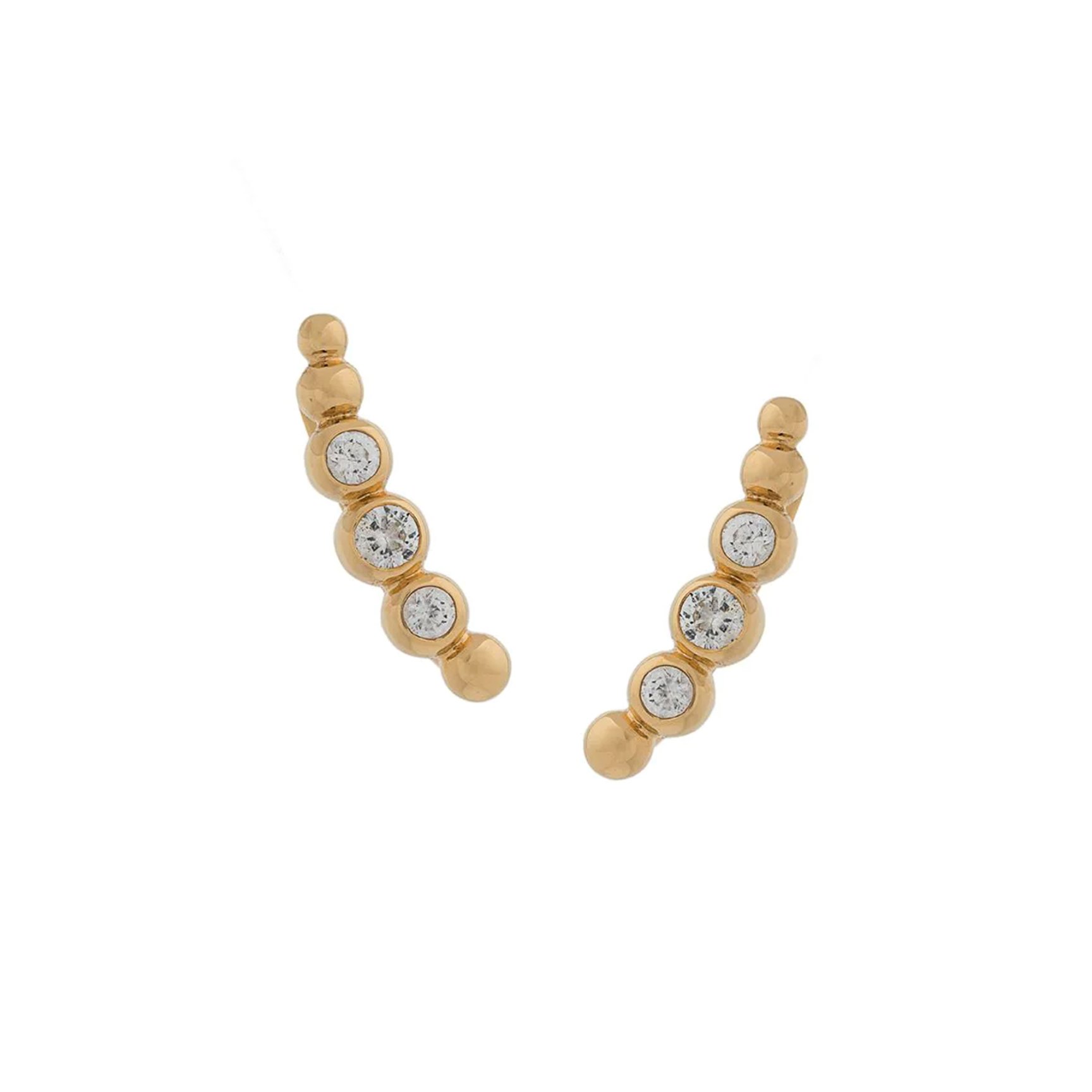 2007年にロンドンで誕生した「アクストリー?クラーク(Astley Clarke)」は、ディテールへのこだわりと毅然としたブリティッシュセンスがブランドコンセプト。モダンな女性たちに向けた質の高いファインジュエリーを提供しています。こちらのピアスは、18kゴールドメッキシルバーにクリスタルの装飾があしらわれたラグジュアリーなデザインが特徴。耳たぶに沿うような緩やかな曲線ポイントです。