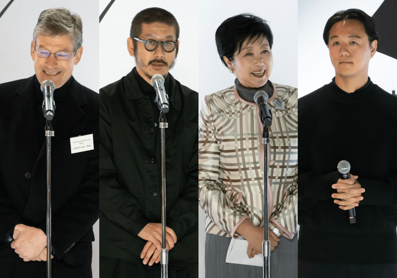 左から ノルベール?ルレ、森永邦彦、小池百合子 東京都知事、高橋悠介