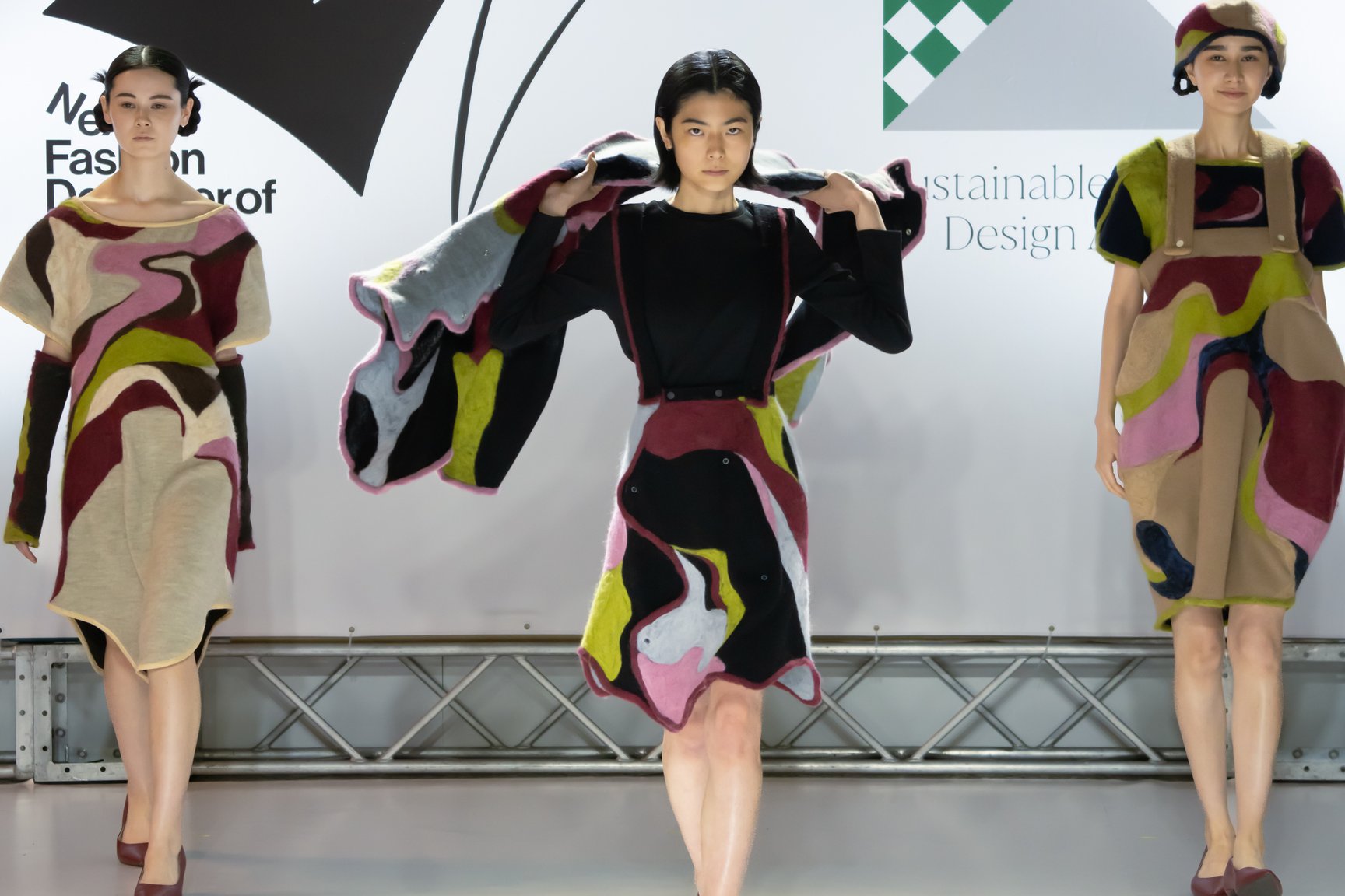 ファッショングッズ部門の大賞は一般応募の末永るみえ、優秀賞は東京都立城東職業能力開発センターの猿田奈央と文化服装学院の山上大成、特別選抜賞は東京モード学園の西吉絢海がそれぞれ受賞した。