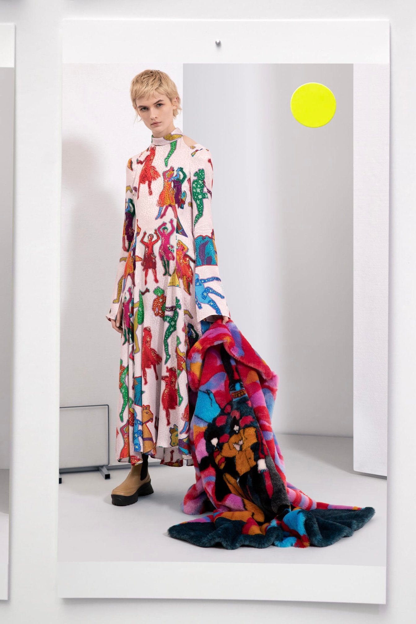 その後は「ステラ マッカートニー(STELLA McCARTNEY)」2019年プレフォールウィメンズコレクションのドレスに衣装チェンジ。馬や人間がプリントされた個性溢れるデザインが目を引きます。本番では柄違いを着用していました。
