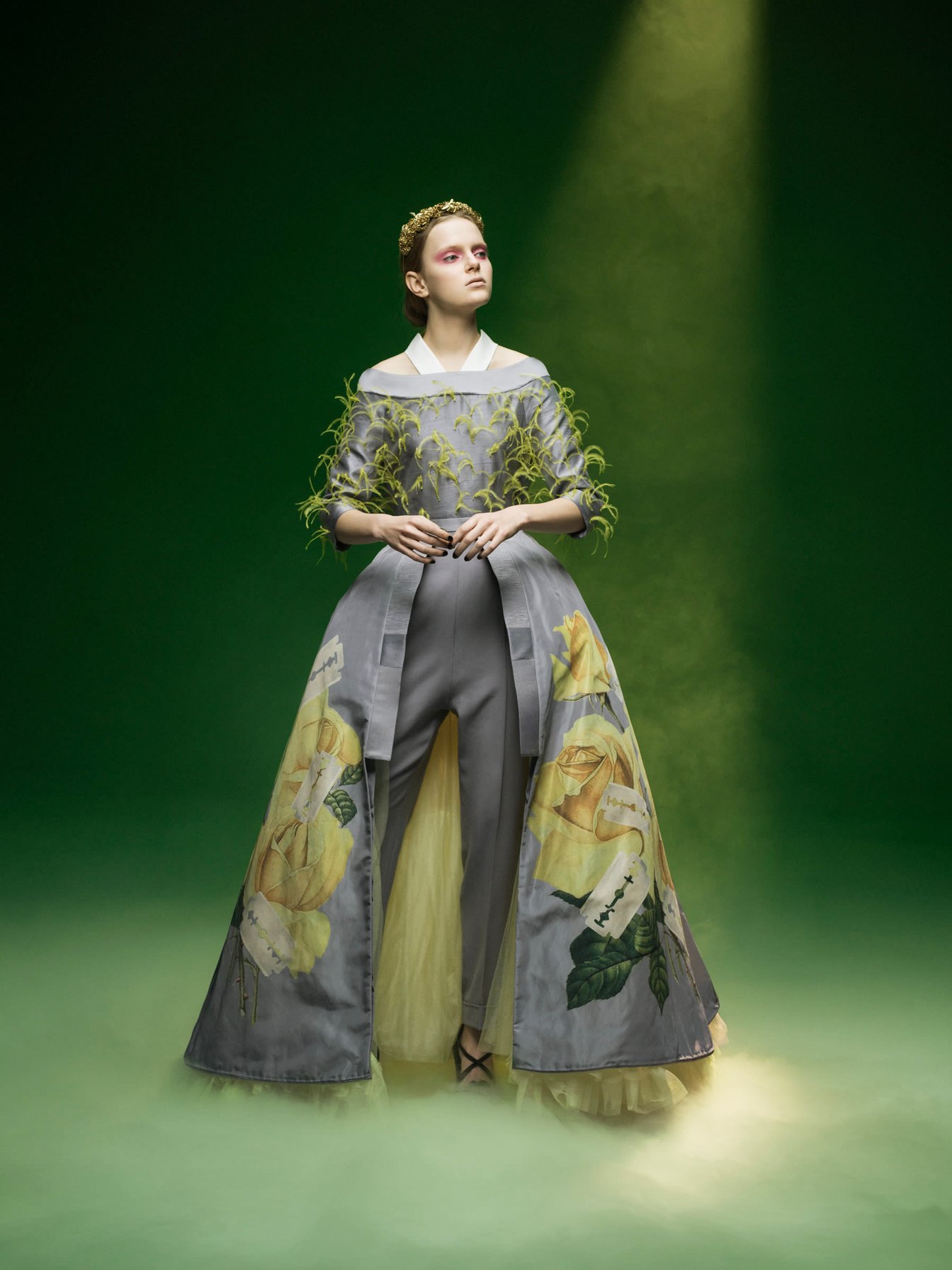 紅組の司会は連続テレビ小説「エール」で主演を務めた女優の二階堂ふみさん。紅白の司会を務めるのは今回が初めてです。前半のディズニースペシャルメドレーで氷川きよしさんと「ホール?ニュー?ワールド」を歌唱した際には「アンダーカバー(UNDERCOVER)」のドレスを着用。映画「蜘蛛巣城」に登場する女性をイメージした2020年秋冬コレクションのものです。当日は画像のドレスをリデザインしたものを着用しました。