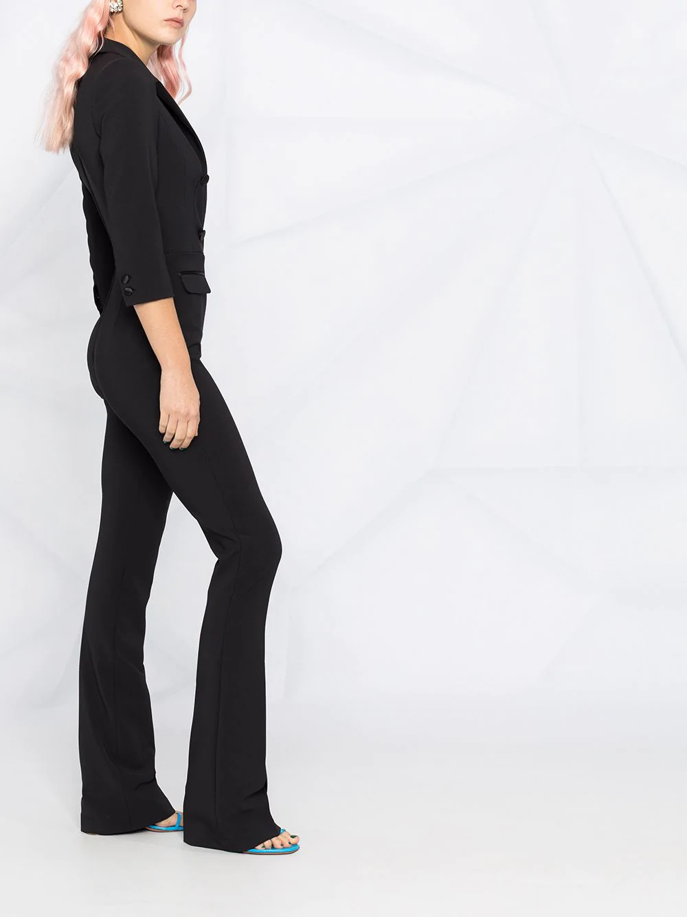後半では「エリザベッタ?フランキ(Elisabetta Franchi)」のブラックカラーのジャンプスーツを着用していました。前半とは打って変わり、シックな印象です。「ジ?アティコ(The Attico)」の真っ赤なパンプスと合わせていました。