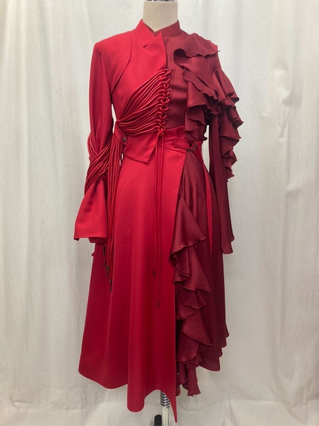 和久田麻由子アナウンサーは、オープニングで「リエカ イノウエ ヌー」2021年秋冬コレクションのドレスを着用。