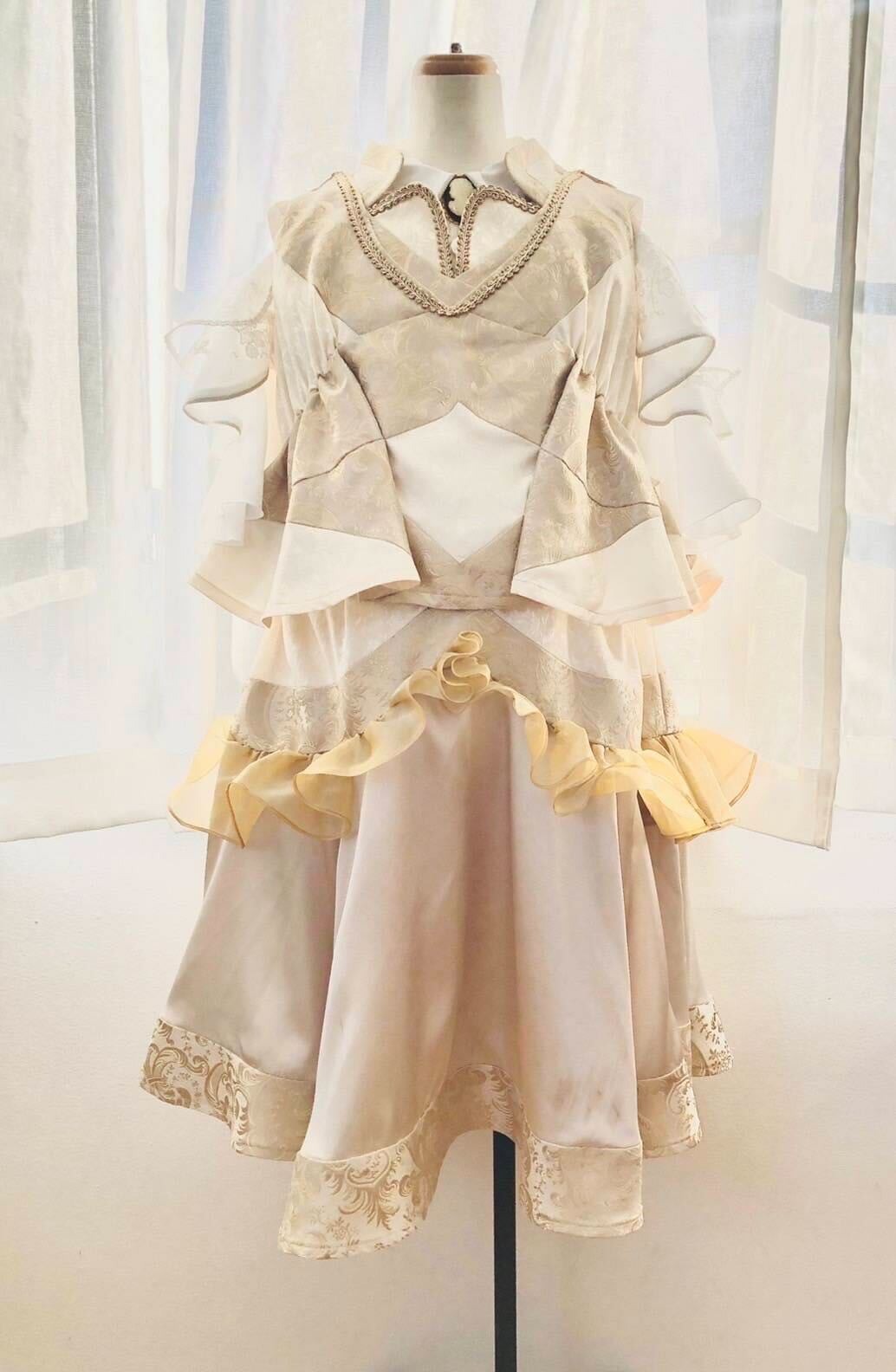 「君しか勝たん」を披露した「日向坂46」は、演出で変化する煌びやかな衣装で登場。衣装ディレクションは市野沢祐大さん、コスチュームデザインは影山駿さんがそれぞれ担当しました。メンバーそれぞれのドレスには、花の色に合わせたヴィヴィッドなオーガンジー生地を使用。首元には愛や富を象徴するヴィンテージのシェルカメオがあしらわれていました。