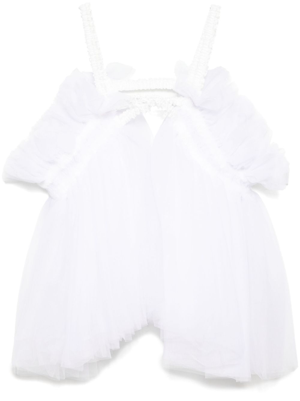 初出場の韓国発ガールズグループILLITは、メンバー全員でノワール ケイ ニノミヤのホワイト&シルバーカラーのアイテムでリンクコーディネート。ユナはチュールスカートとセーフティピンシャツ、イロハはフローラルハーネス、ウォンヒはセーフティピン ハーネス トップ、モカはチュールラッフル トップを着用しました。