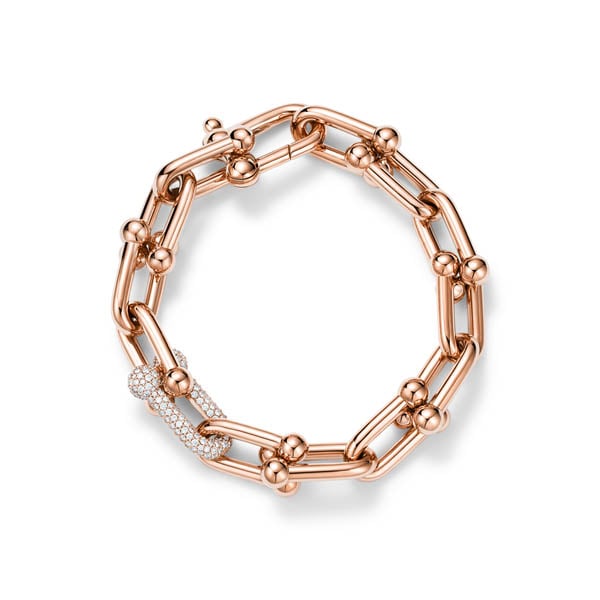 ジュエリーには「ティファニー(Tiffany & Co.)」のハードウェアコレクションを着用。ゴールドのトリプル ドロップ ピアスとブレスレットを合わせました。