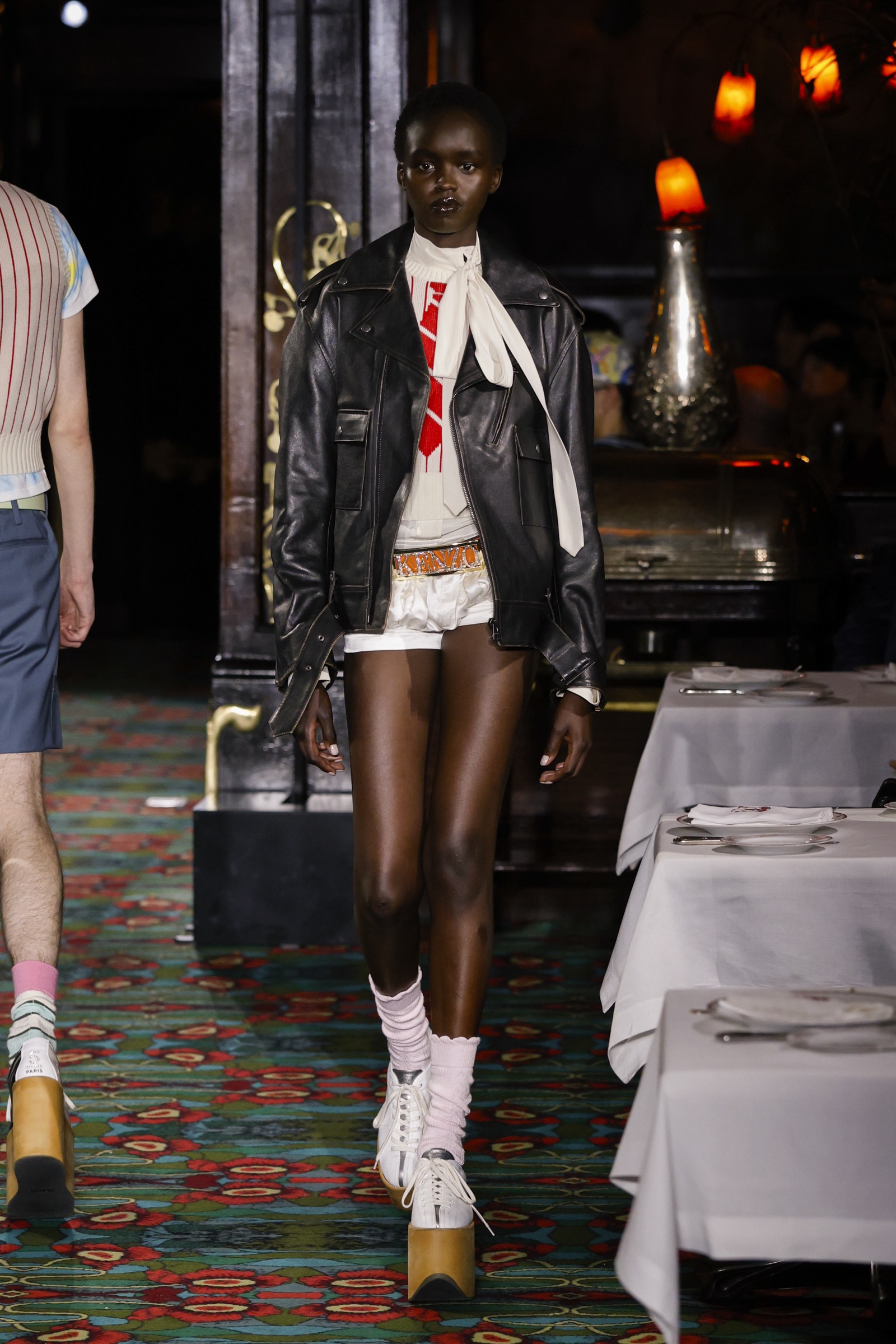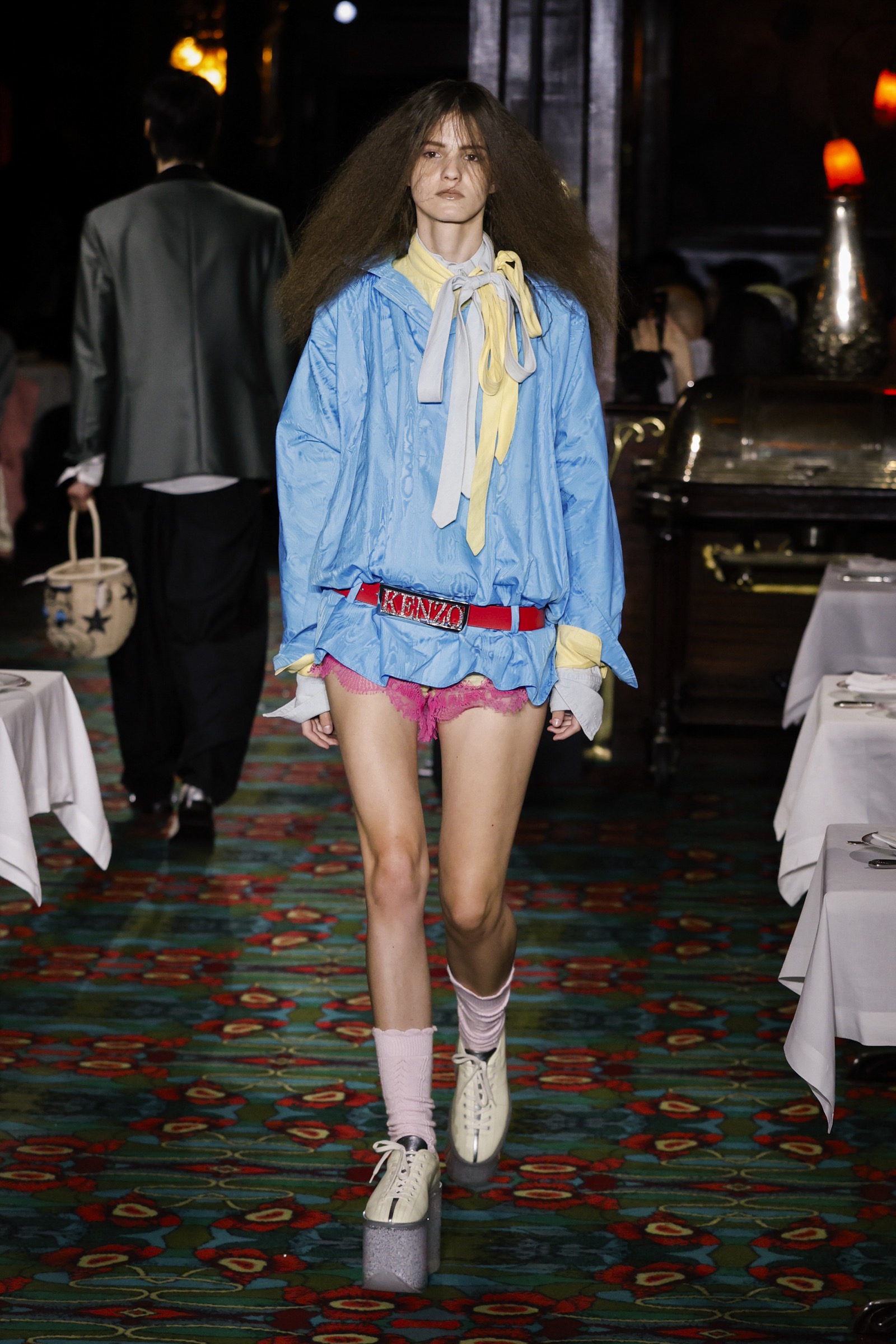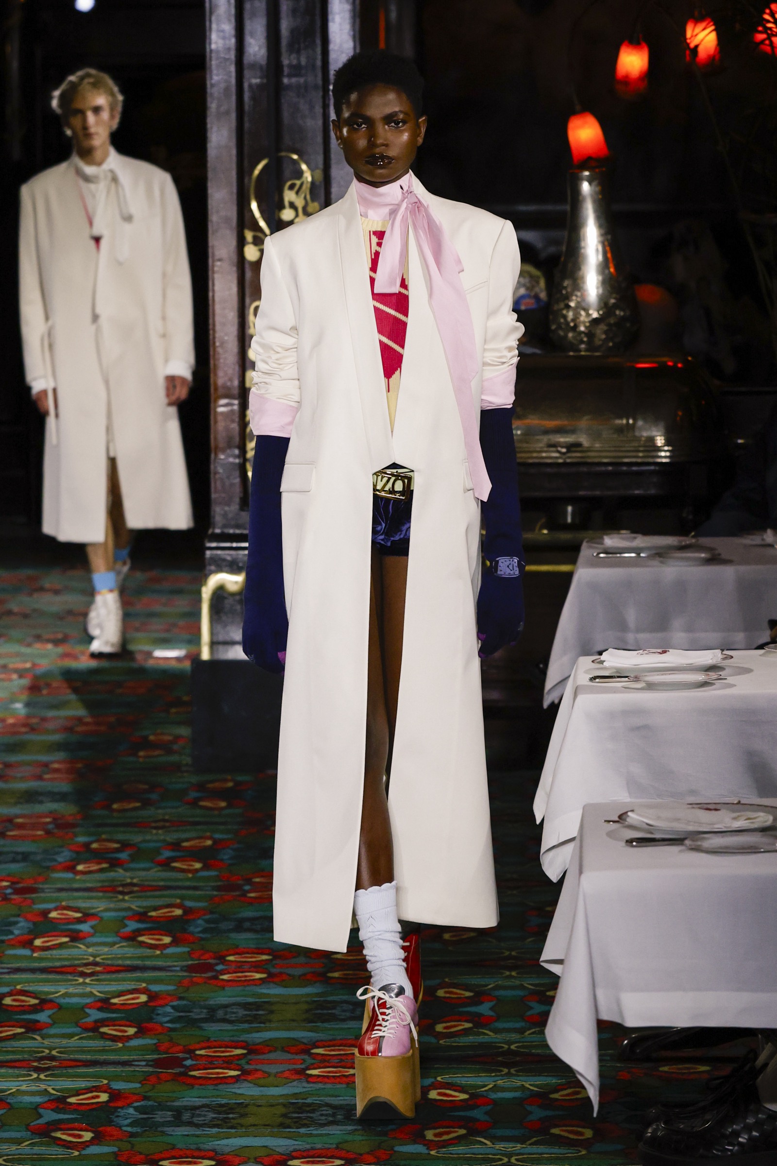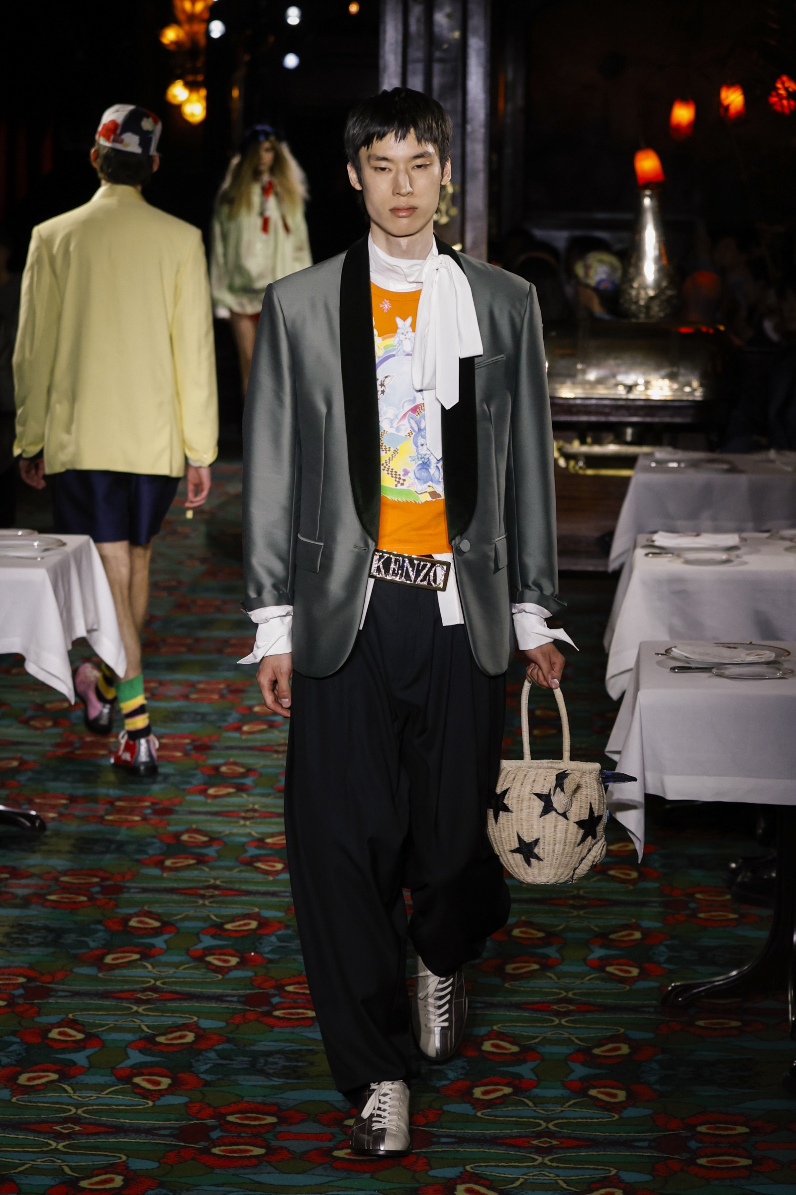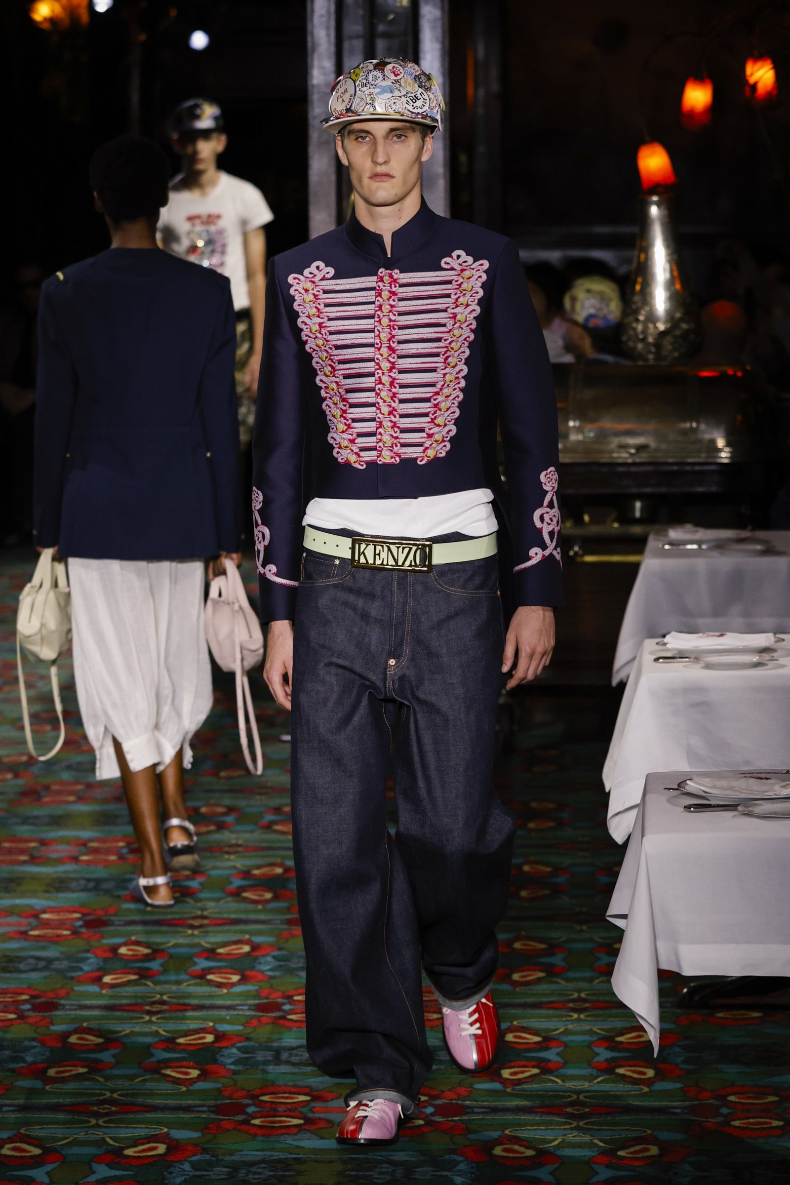 ショー会場となったのは、パリを象徴する社交場であり歴史ある名店「マキシム」。今にもパーティーが始まりそうな店内を、ストリートに精通した"Kenzo Guy"と、無邪気な"Kenzo Girl"たちが練り歩く。