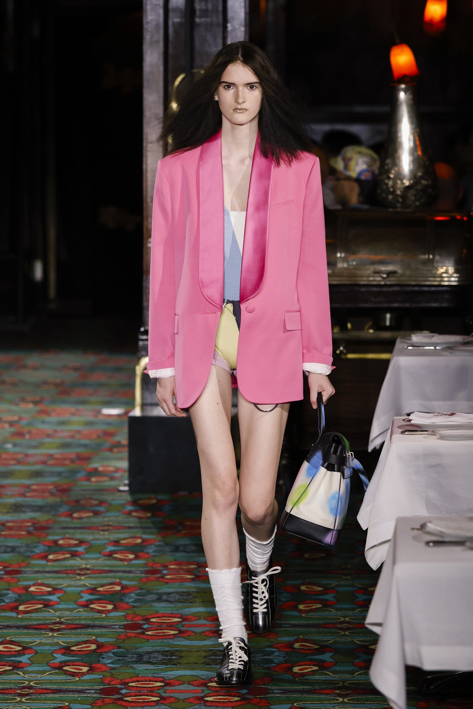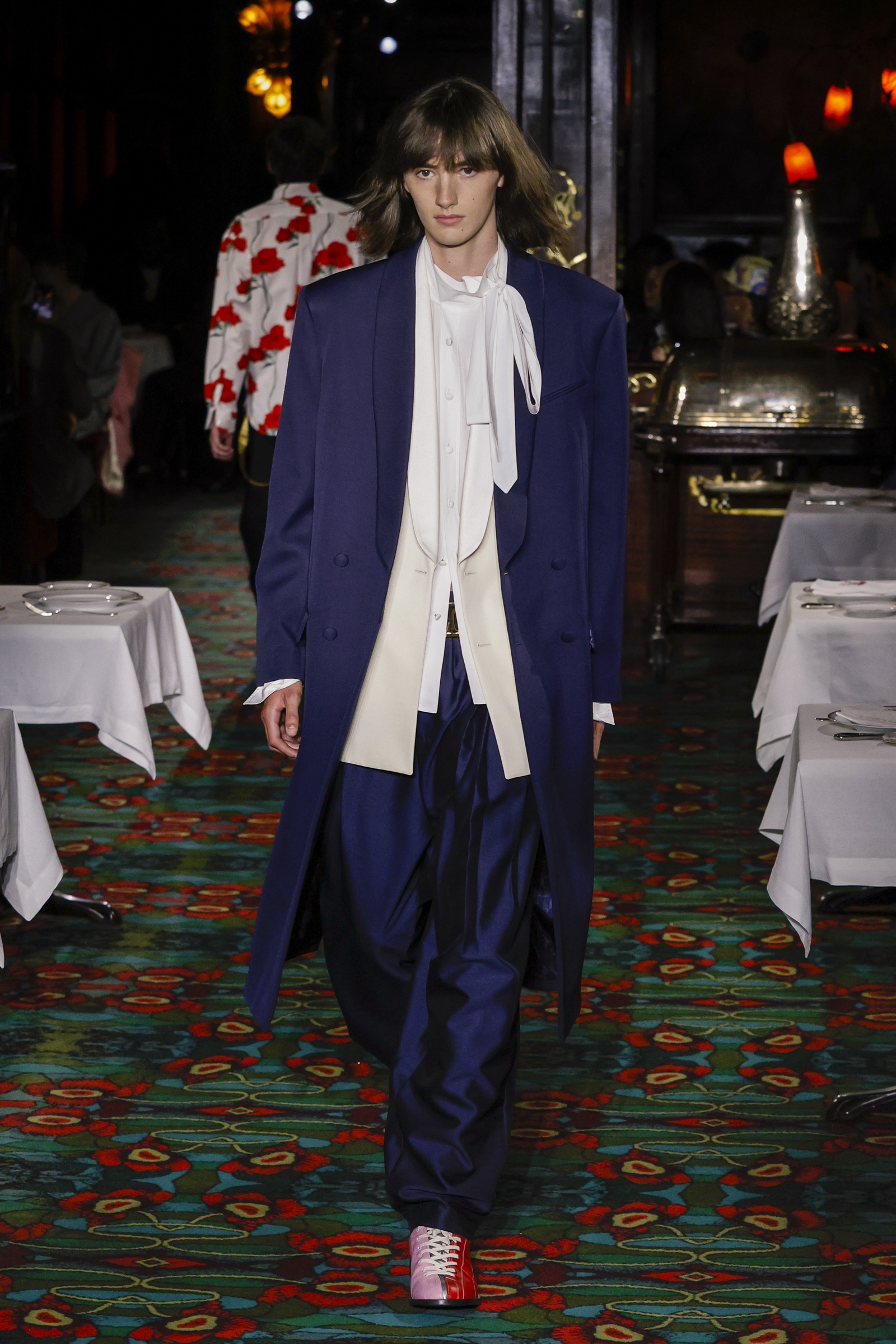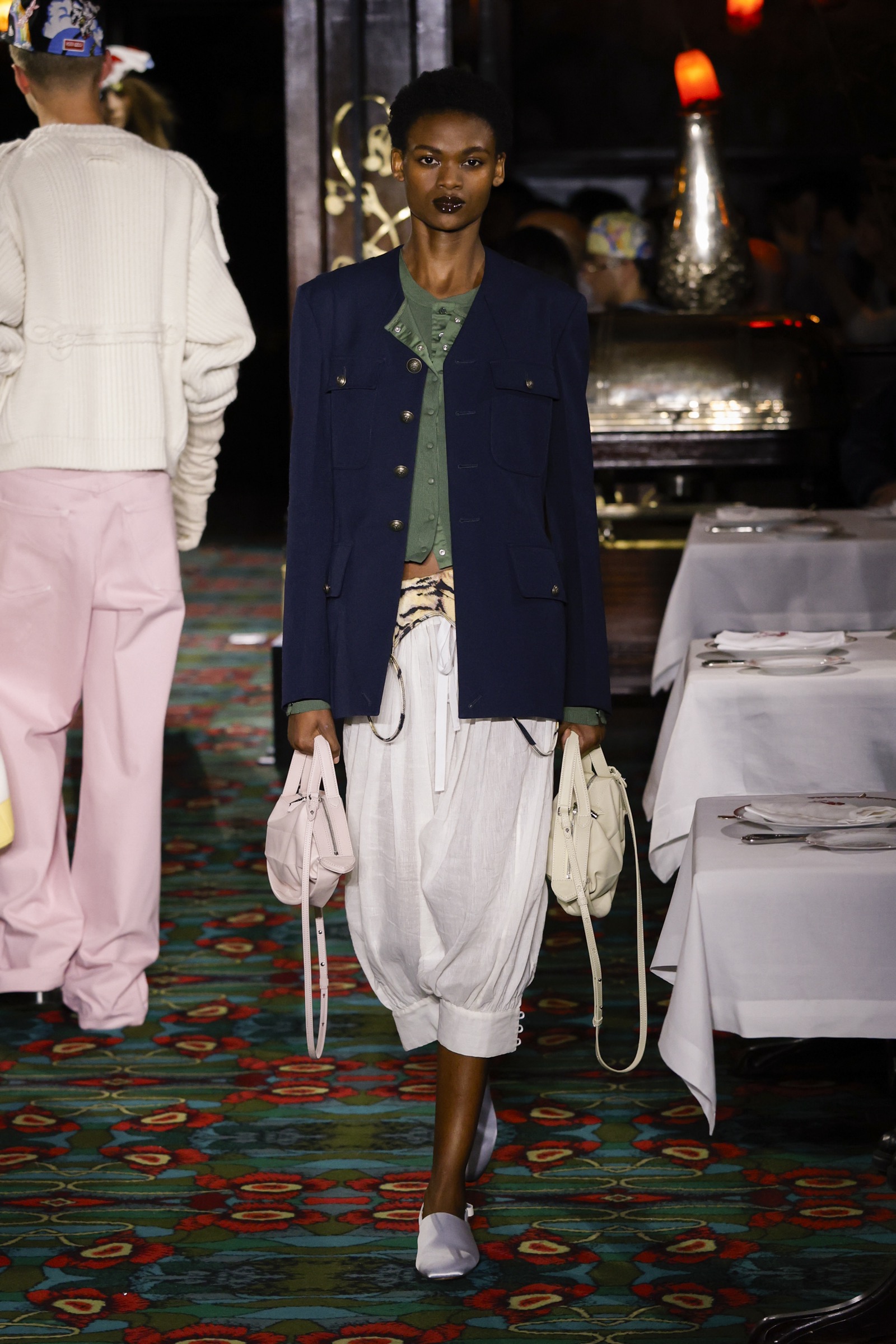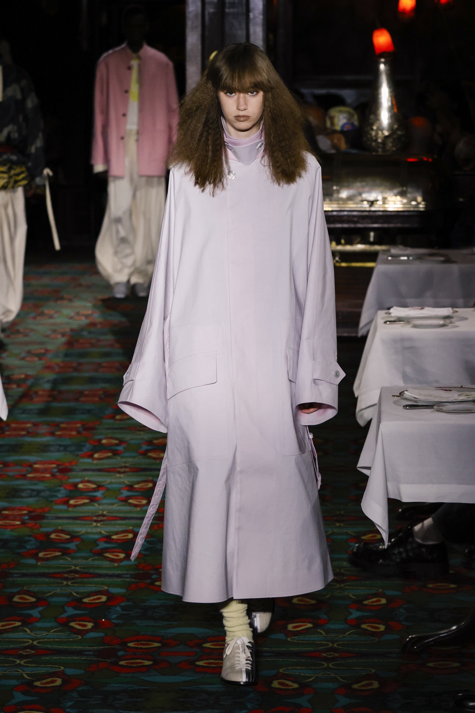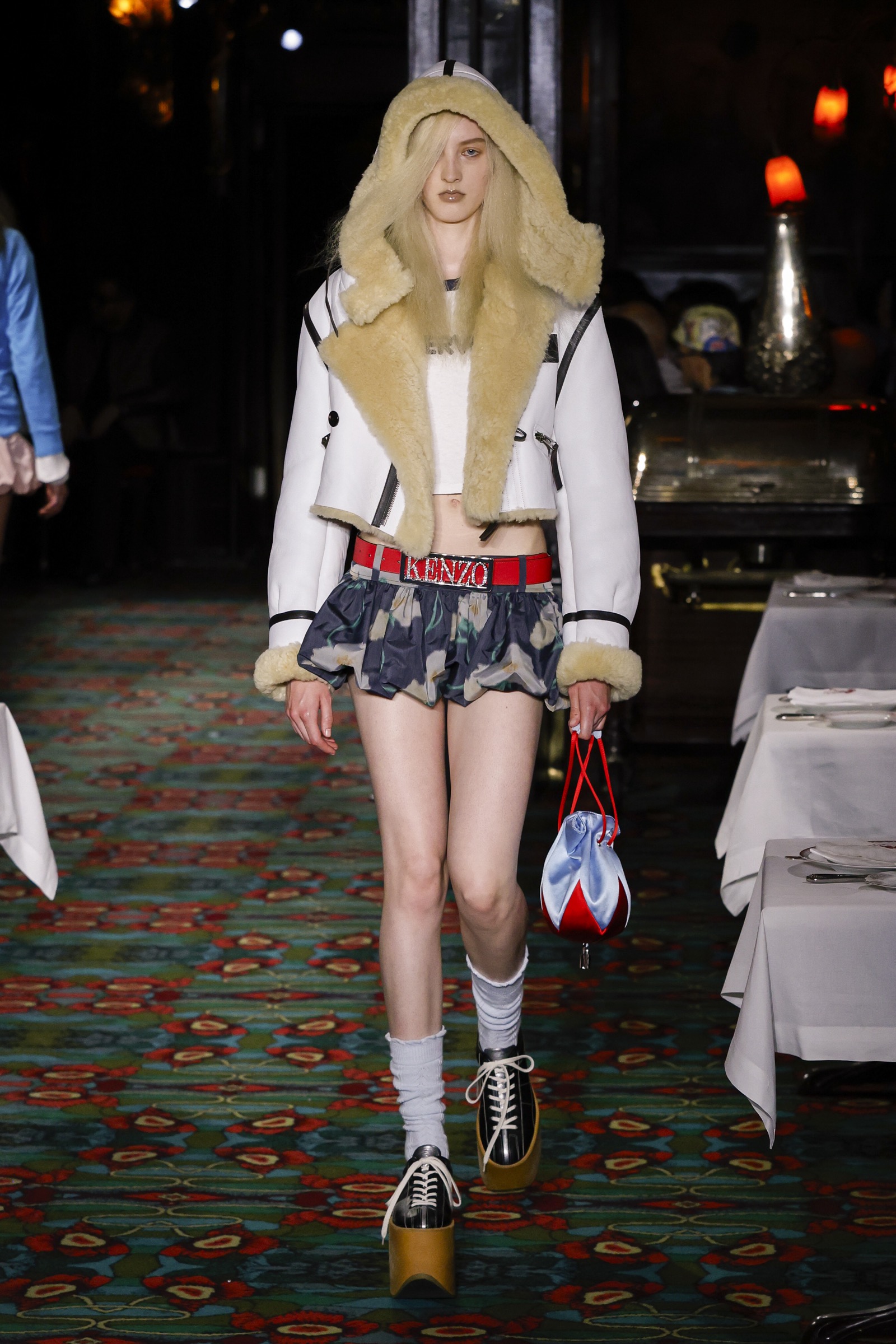 ショー会場となったのは、パリを象徴する社交場であり歴史ある名店「マキシム」。今にもパーティーが始まりそうな店内を、ストリートに精通した"Kenzo Guy"と、無邪気な"Kenzo Girl"たちが練り歩く。