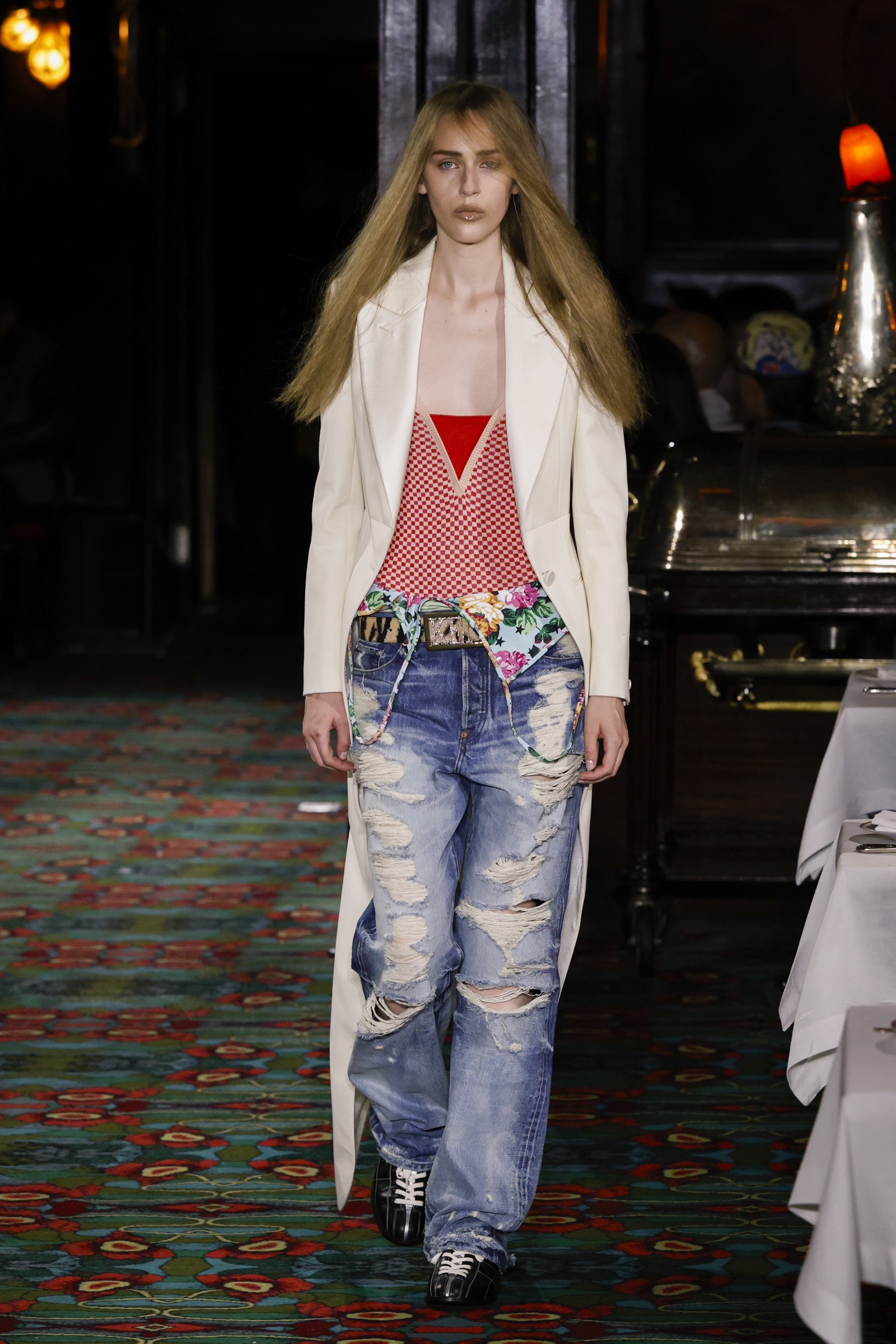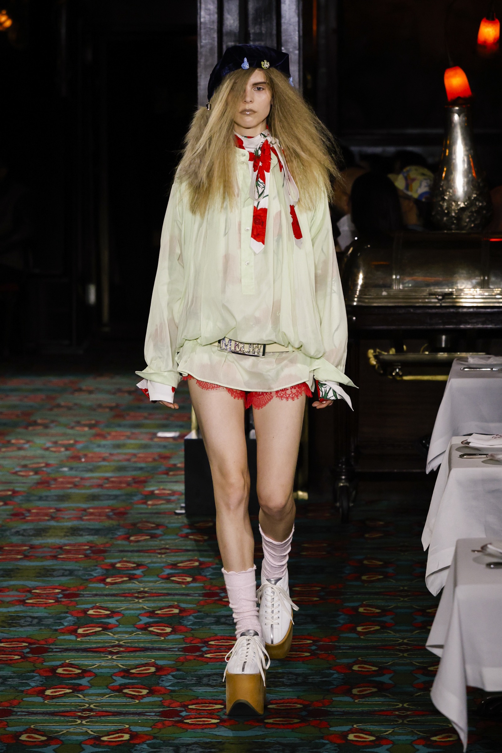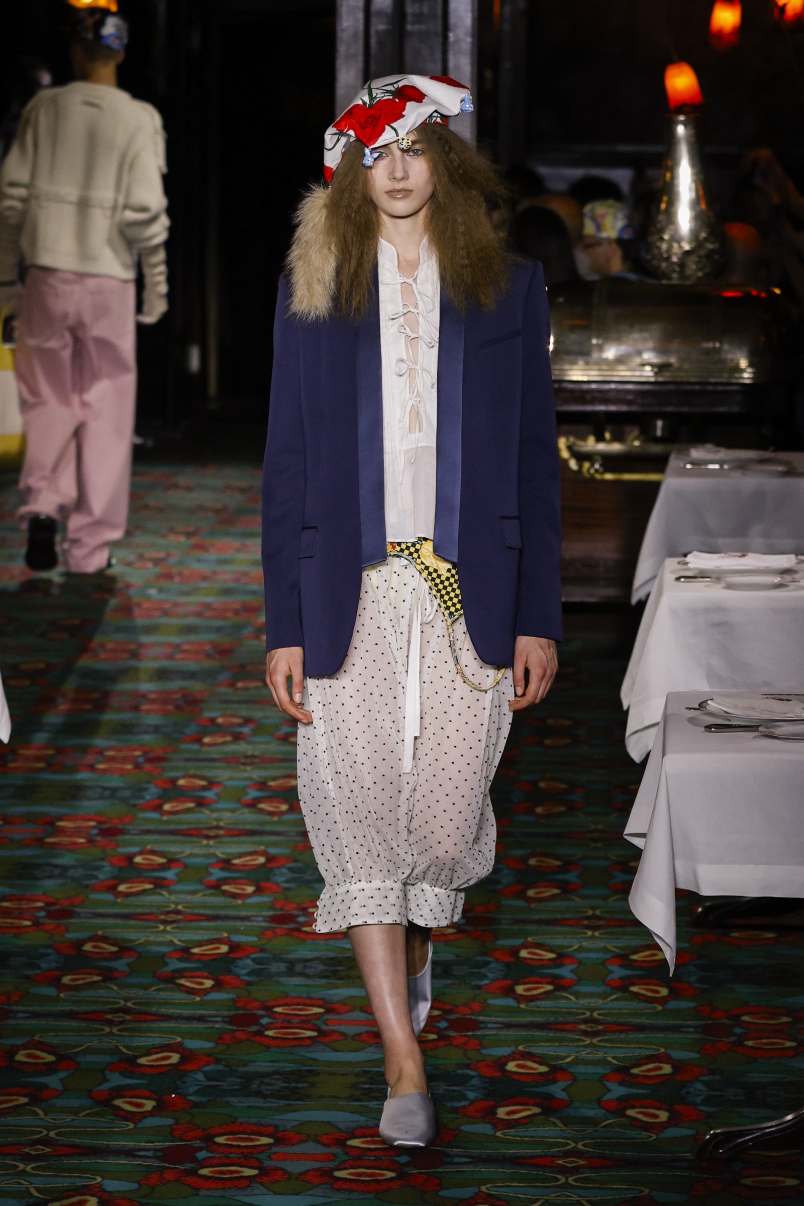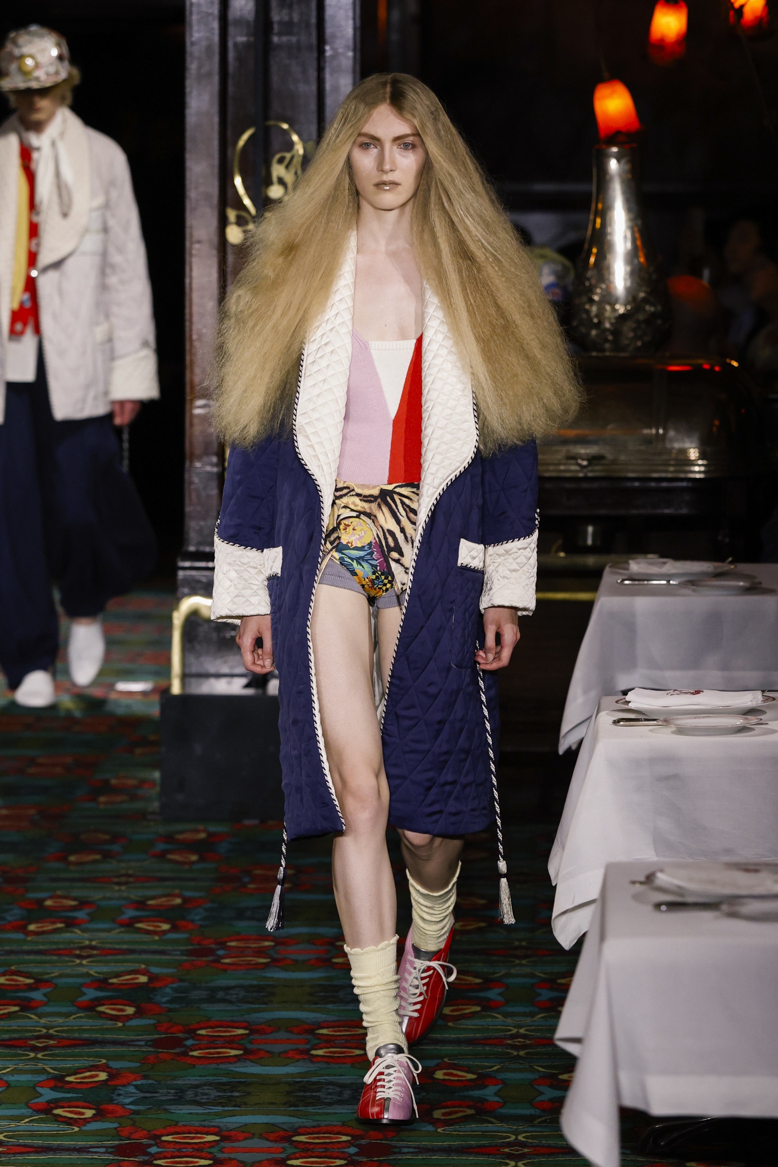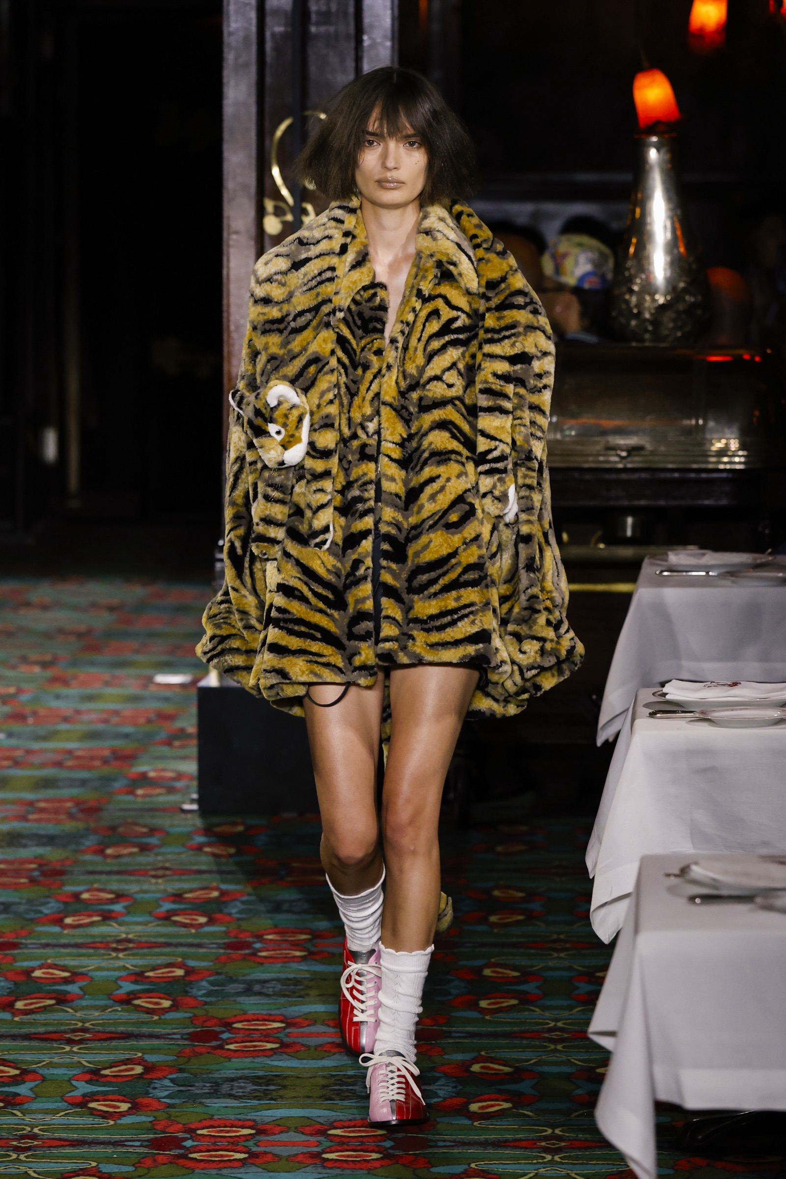 ショー会場となったのは、パリを象徴する社交場であり歴史ある名店「マキシム」。今にもパーティーが始まりそうな店内を、ストリートに精通した"Kenzo Guy"と、無邪気な"Kenzo Girl"たちが練り歩く。