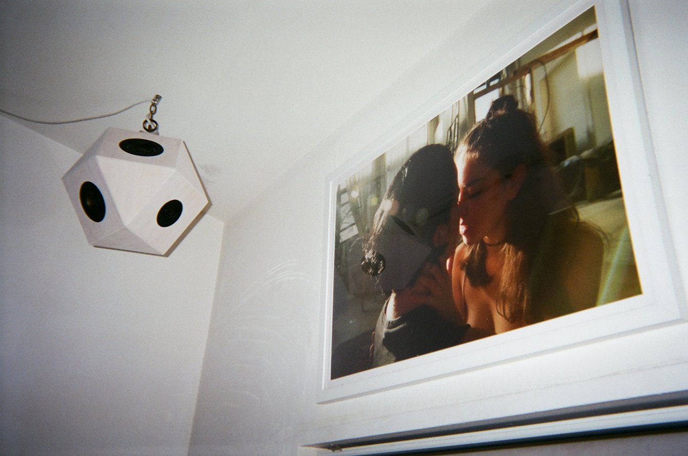 右は写真家チャド?ムーアの作品。左は京都のメーカーlistudeのスピーカー。来店するアーティストが絶賛するほど音質がよく、音楽にこだわるTETROならではのセレクト