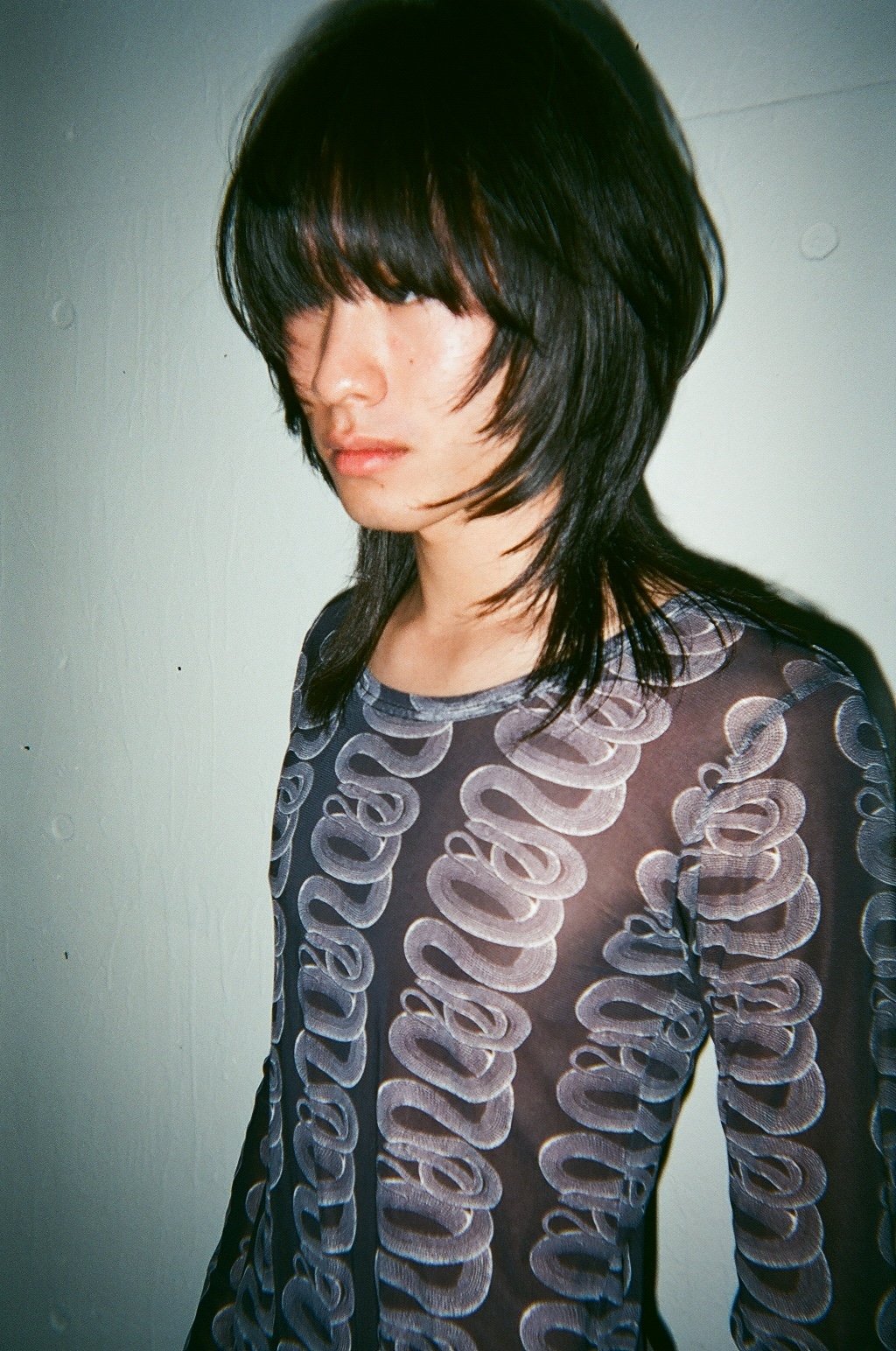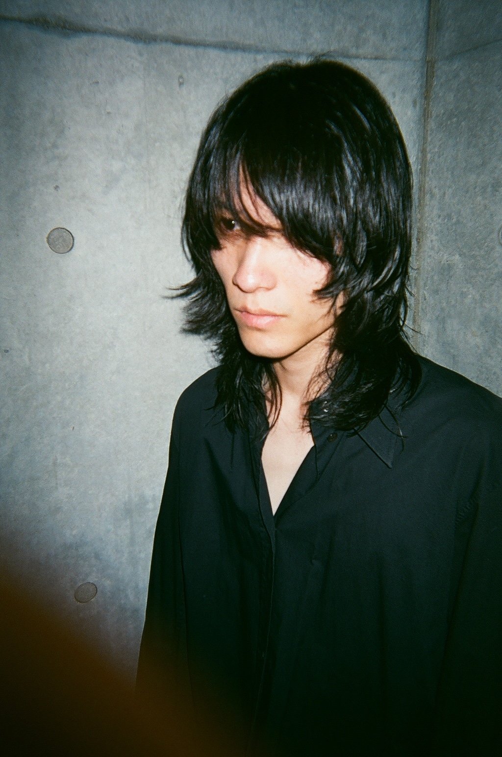 Kazuhoさんのヘアデザイン。「ポイントは“ウザめ”の前髪。実用的ではないけれど、かっこよさを重視しています。メンズっぽいテイストに合わせてレイヤーのラフさを取り入れつつ、バランスにこだわってカットしました」(Kazuho)