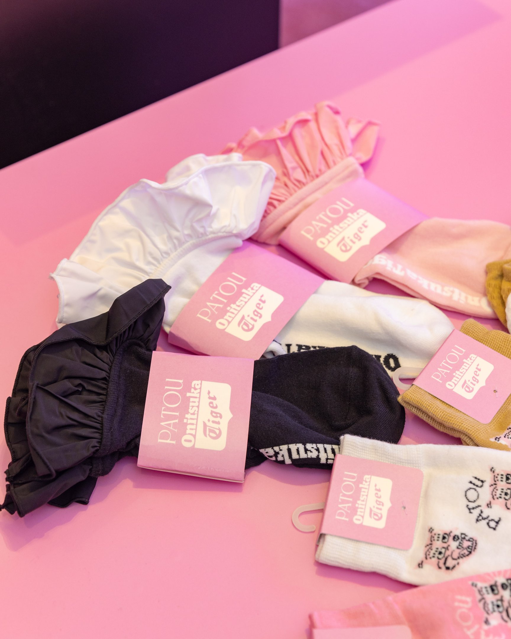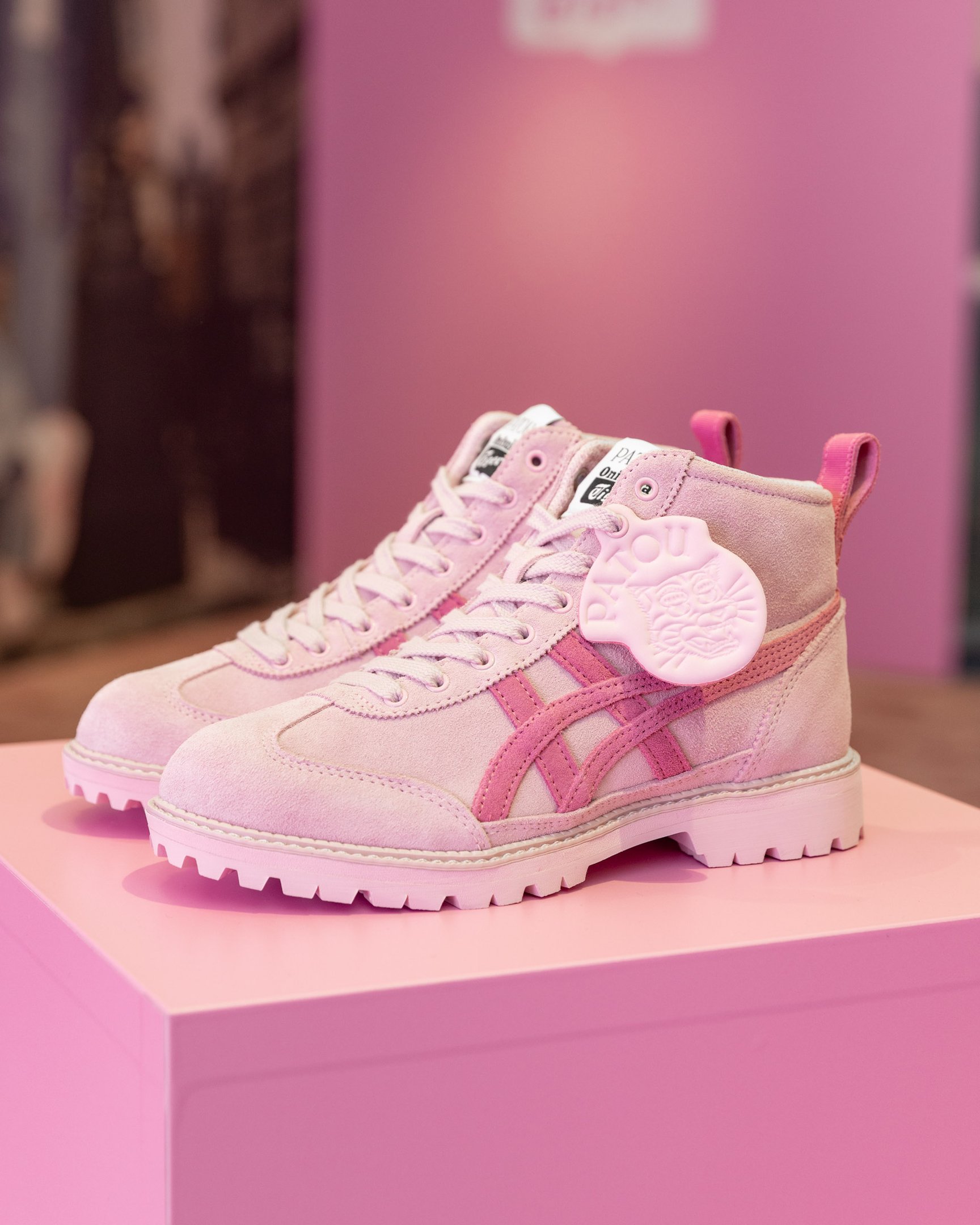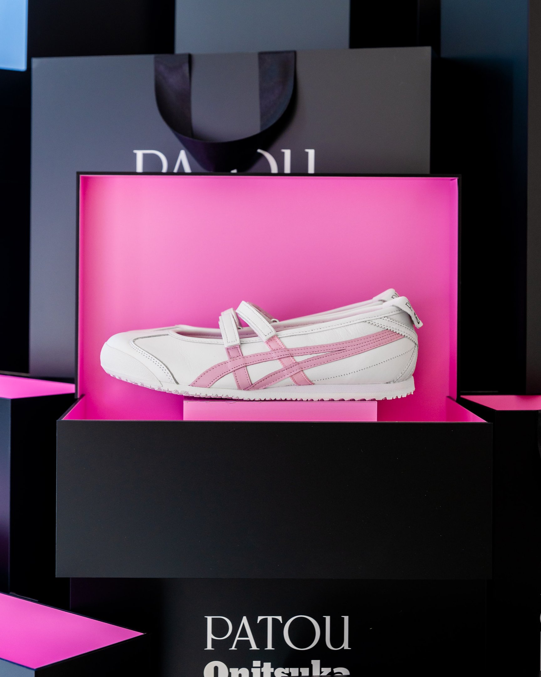 ヒールカウンターや、タイガーモチーフ"オニトラ"の取り外し可能なチャームはパトゥのシグニチャーカラーのピンクが採用されたほか、アイコニックなグログランリボンがオニツカタイガーストライプの一部に使われていたりと、クラシックな「MEXICO 66?」のベースにパトゥの"胸キュン"要素が取り入れられており、日常使いにもぴったりなデザインに仕上がりました。
