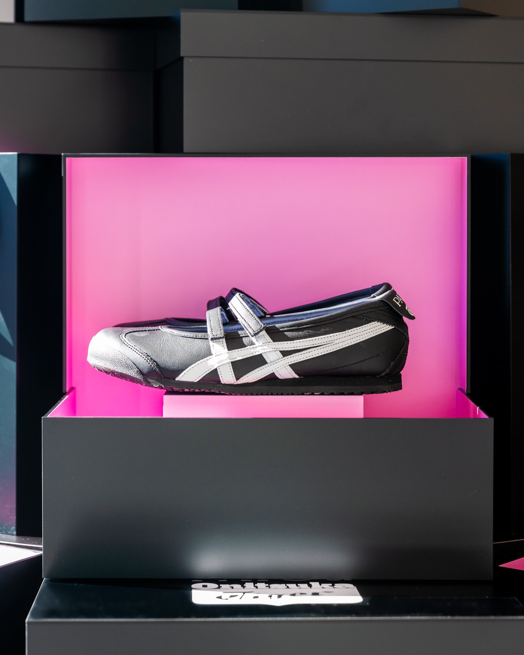 ファッショントレンドにも浮上している"バレエコア"の流れを引き継いだ「MEXICO 66? BALLERINA」(3万6300円)。ダブルストラップが特徴で、今回のコラボではブラックとピンクのカラーで展開されます。スポーティかつエレガントなデザインで足元を可憐に印象づけてくれます。
