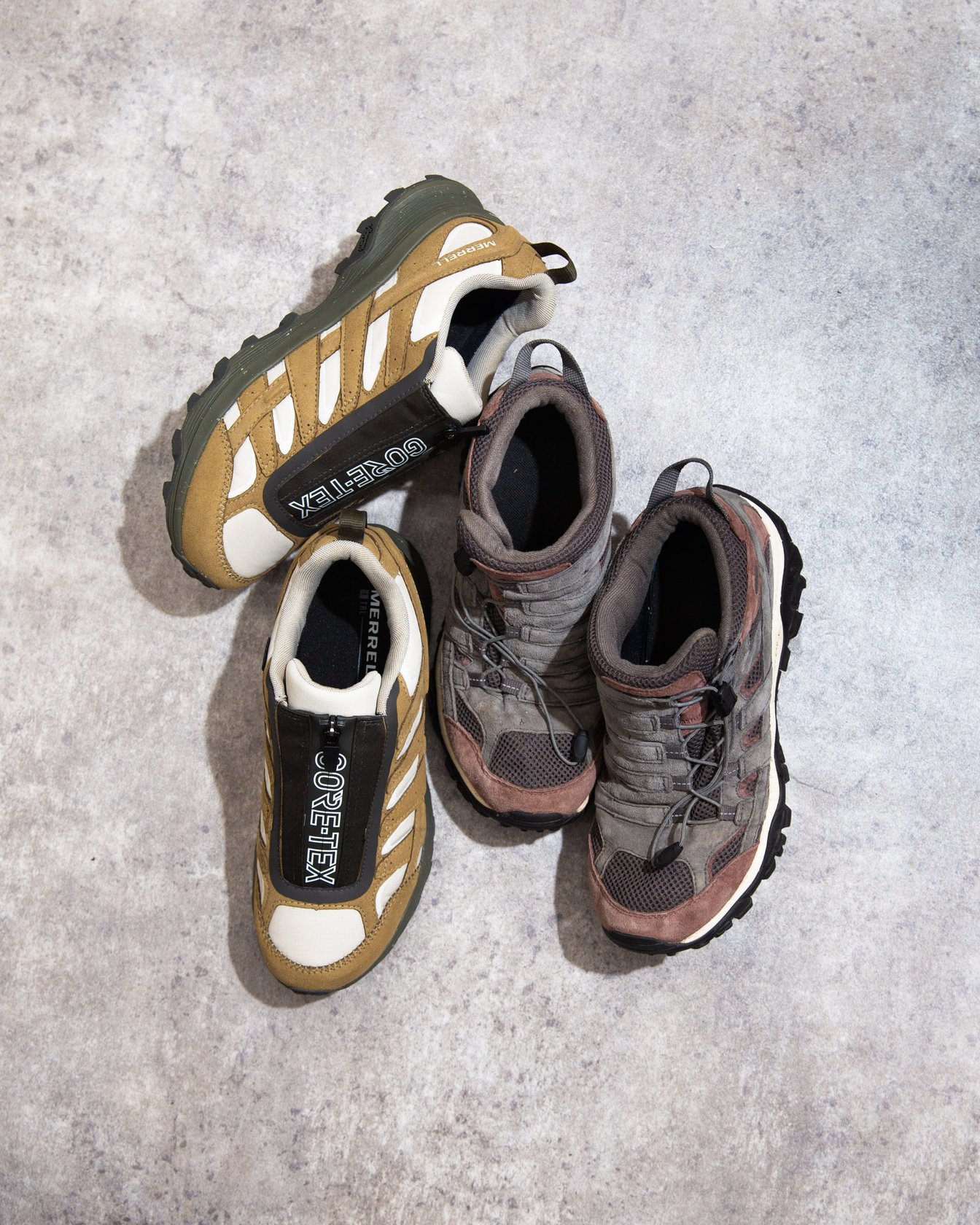 左:MOAB SPEED ZIP GORE-TEX(2023SSの最新モデル)右:A.Four MOAB GORE-TEX(2021SS MERRELL × A.Four)