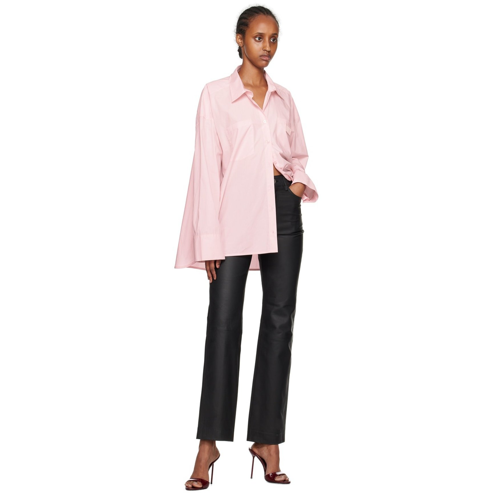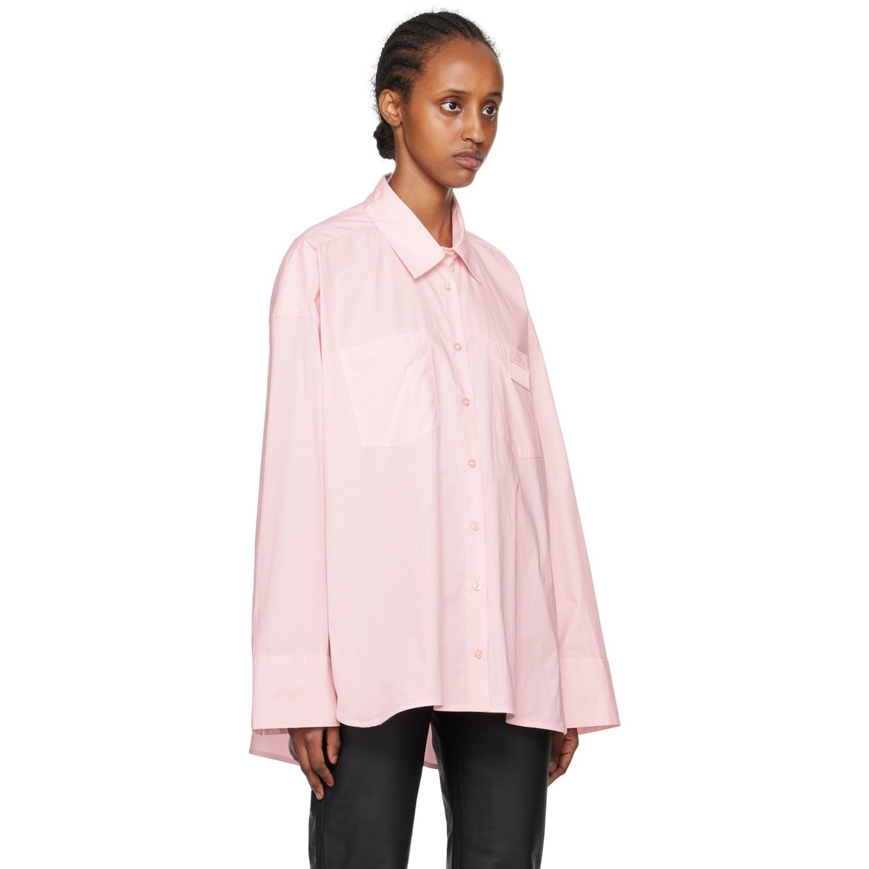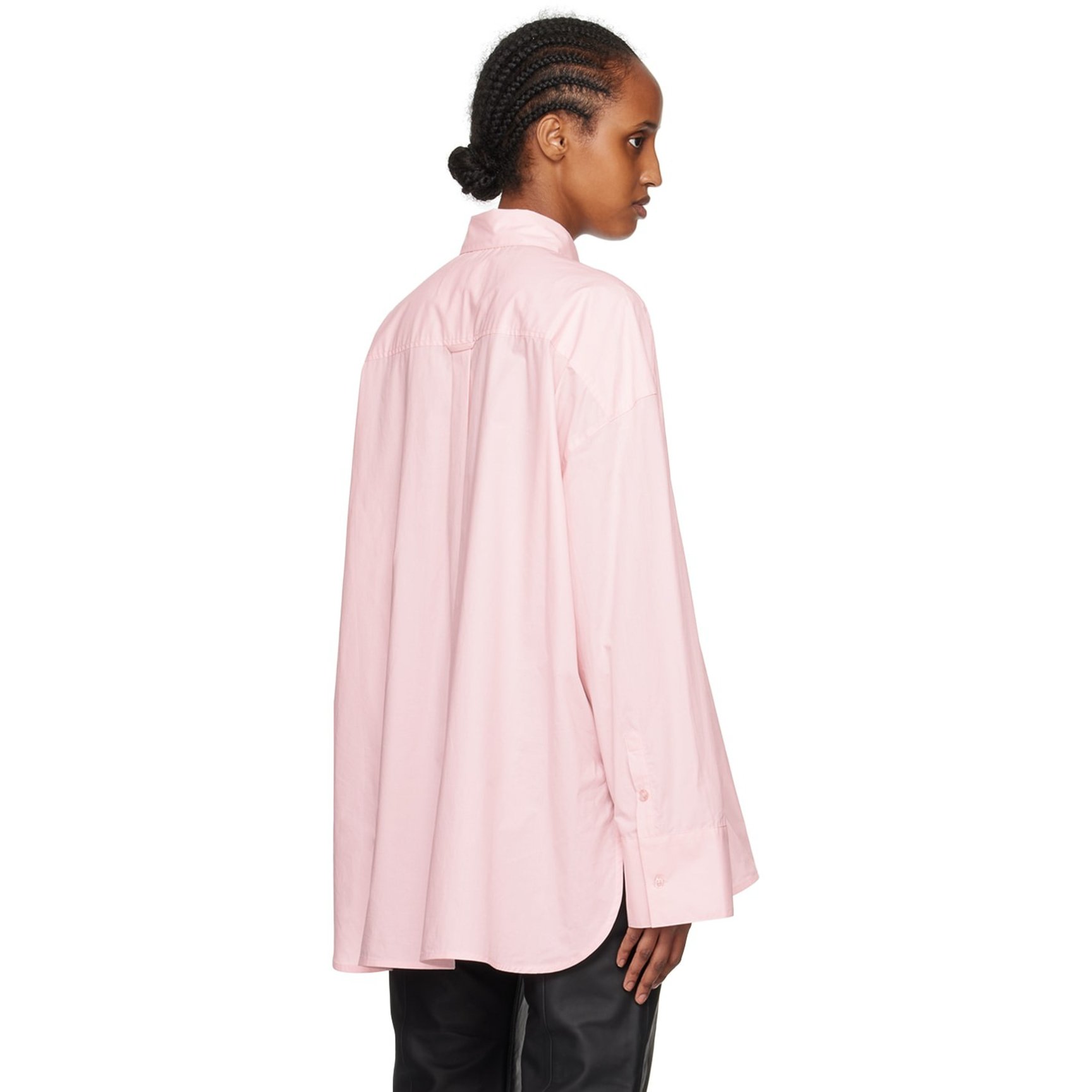 ドロップショルダーで、裾がAラインに広がる姿が素敵な「リメイン バーガー クリステンセン(REMAIN BIRGER CHRISTENSEN)」のオーバーサイズシャツ。甘いピンクも端正なシャツで取り入れたら好バランスで着こなせます。