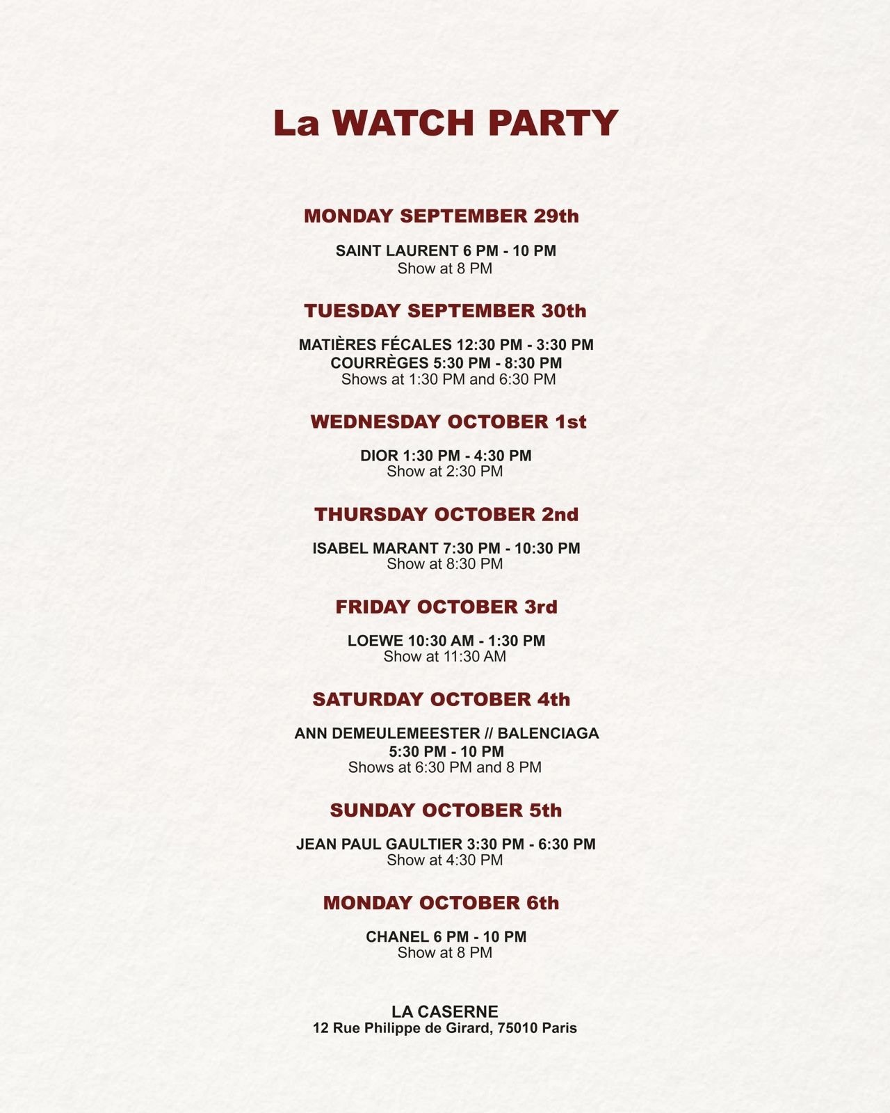 手応えを得たLyasは、プロジェクトを本格的に始動。9月17日、「wE’re backkkkkkkk」の投稿とともに、「La WATCHPARTY」の開催を宣言した。単なる"配信を見る場"ではなく、ファッションを共に体験する、新しいコミュニティの場に発展させたのが今シーズンだ。さらに、La WATCHPARTYは海を渡り、ロンドン、ミラノ、パリで開催されることになった。