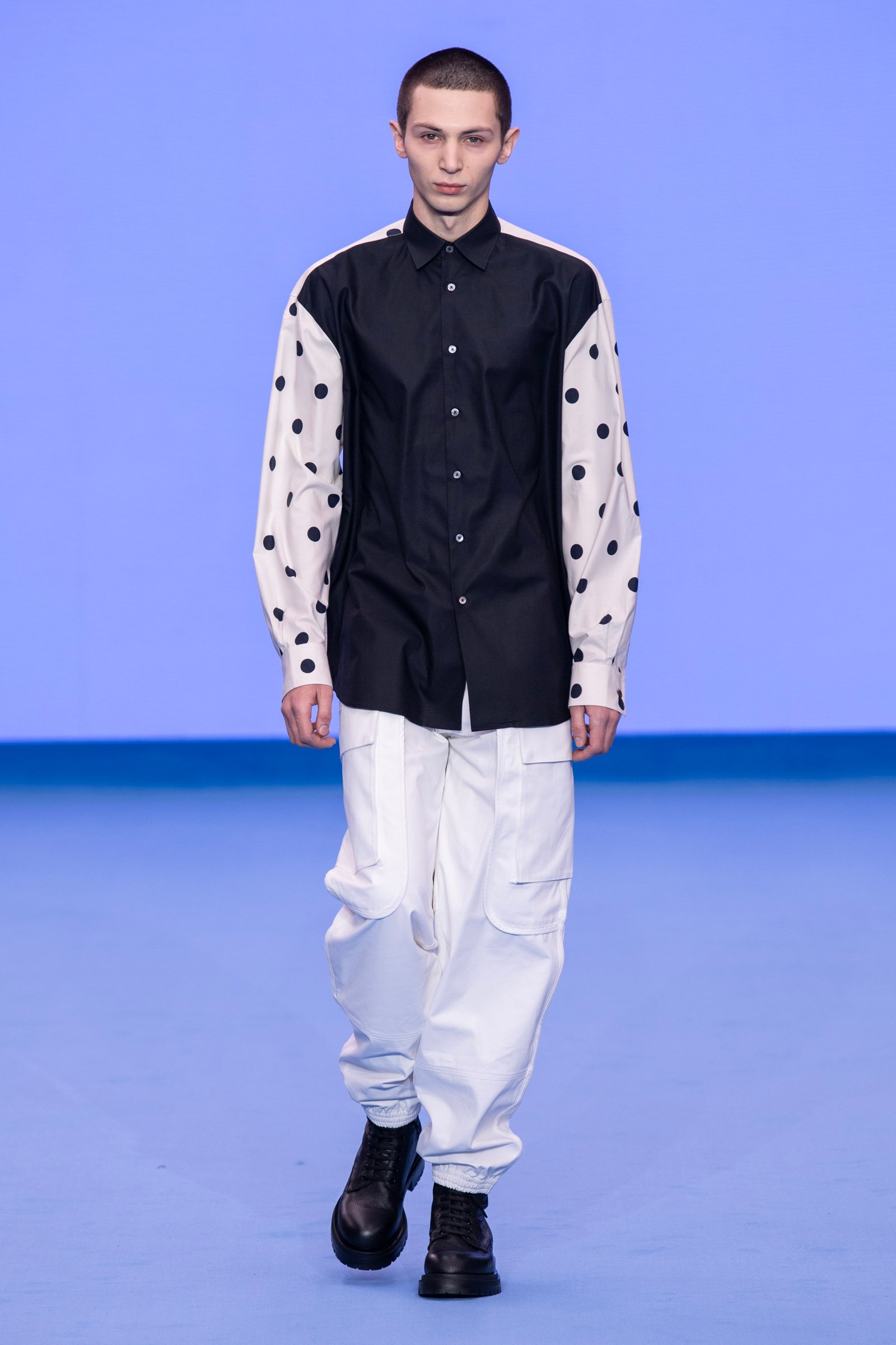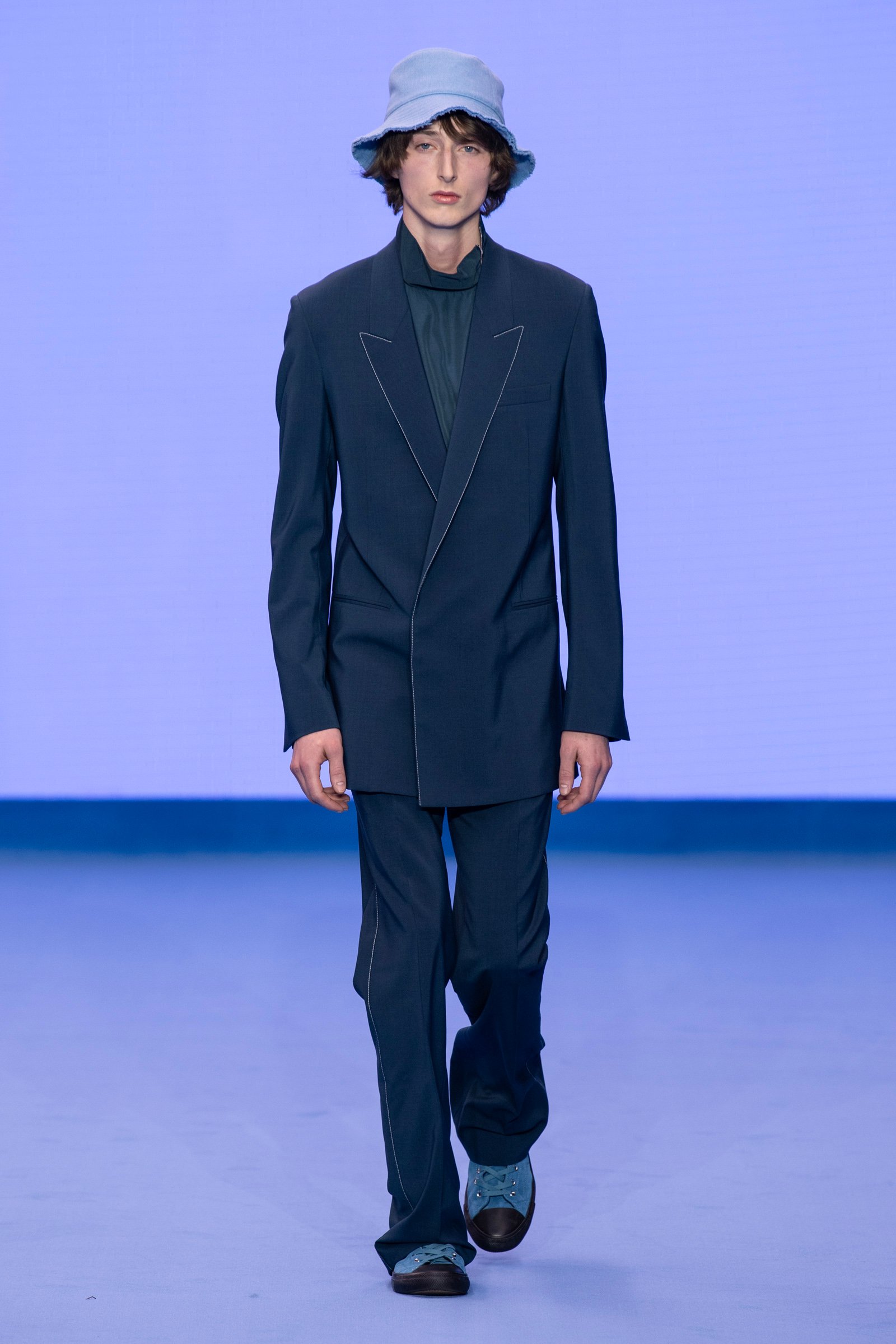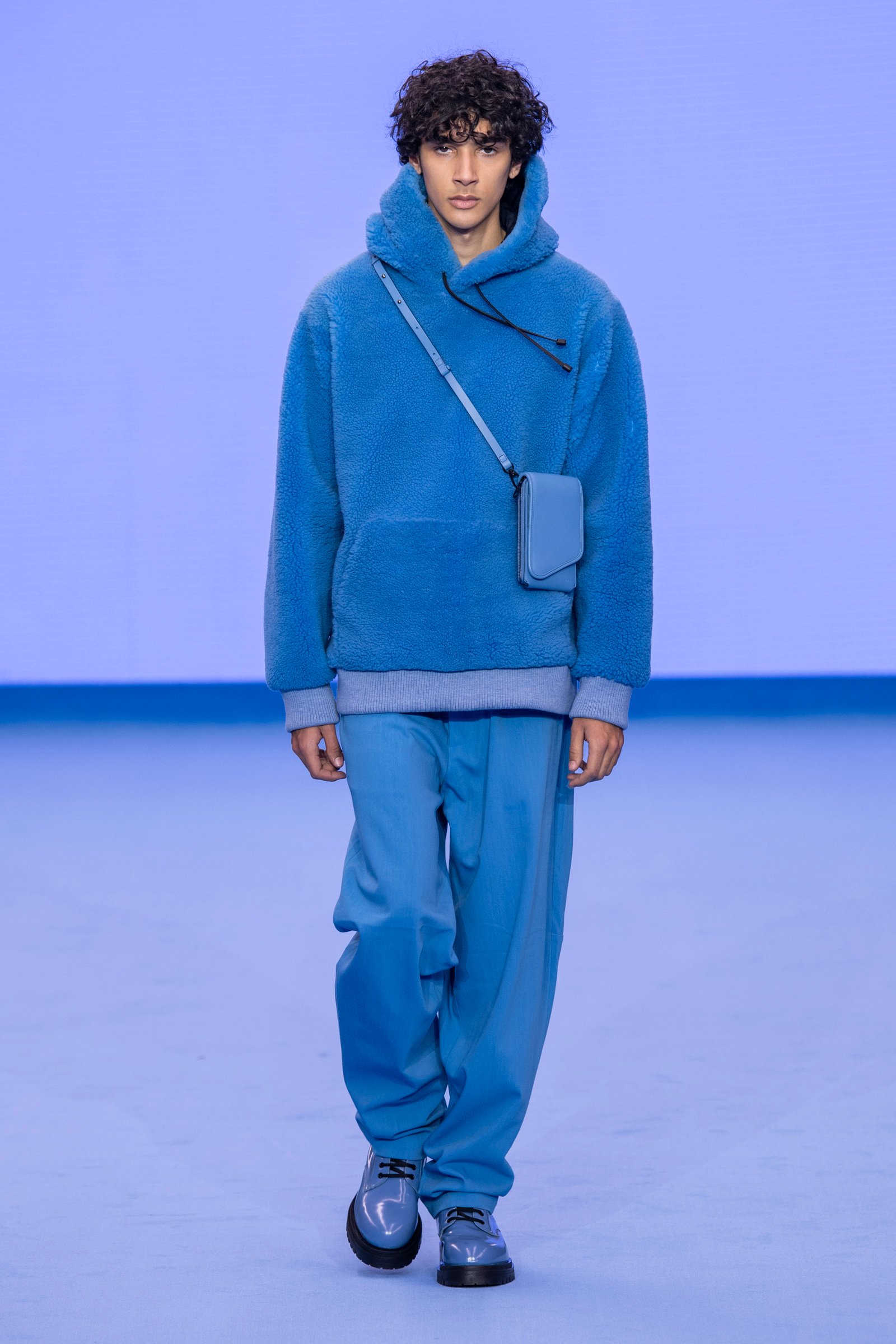<p class="text-small">スカイブルーに彩られたメンズ?ウィメンズのルック</p>