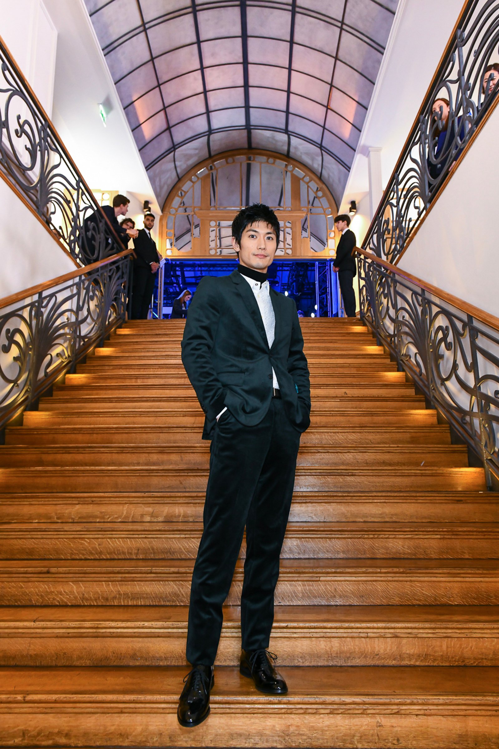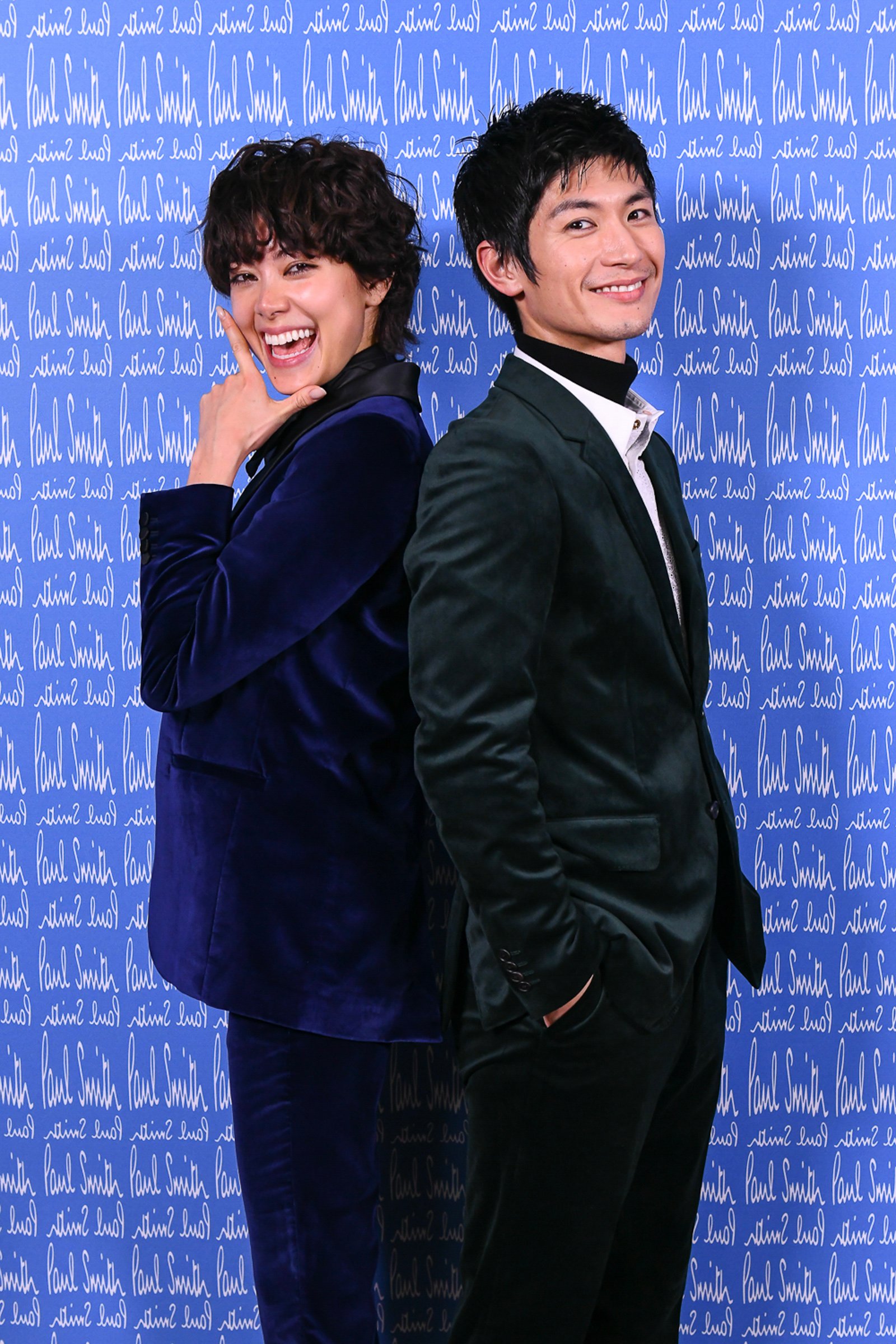 <p class="text-small">日本におけるメンズブランドアンバサダーの三浦春馬と、ショーゲストの森星</p>