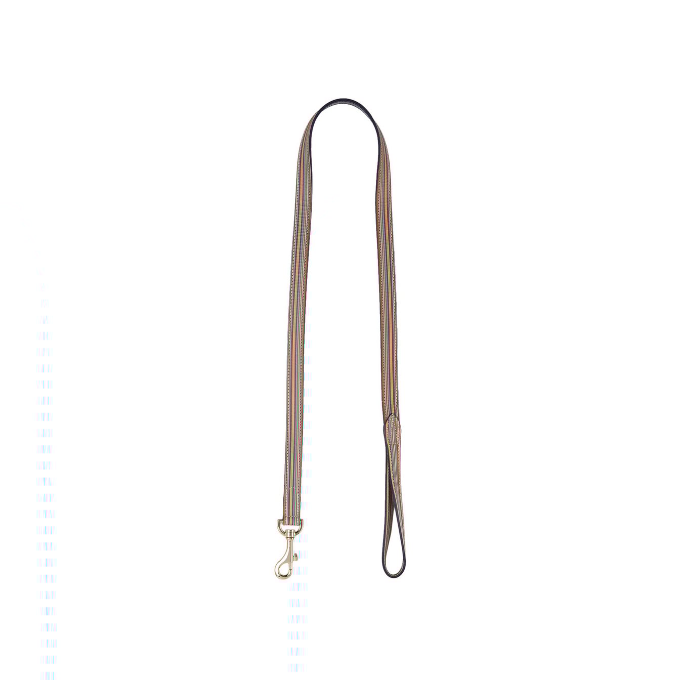 ロゴがなくとも、シグネチャーのマルチカラーストライプでおしゃれを堪能できる「ポール?スミス(Paul Smith)」のペットグッズ。高級感のあるカーフスキンとゴールドトーンのハードウェアでデザインされたリードは、パープルカラーに仕上げたコバ処理が施され安心感もひとしお。