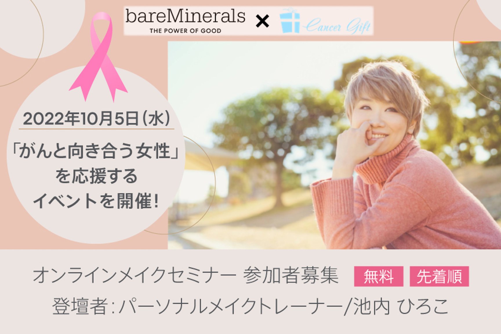 ベアミネラルは、がんを経験した女性たちによって運営される情報発信サイト「キャンサーギフト(Cancergift.co)」と連携し、10月5日にオンラインメイクセミナーを実施しました。がんと向き合う女性たちに寄り添ったメイクを提案することで、彼女たちを支援しています。