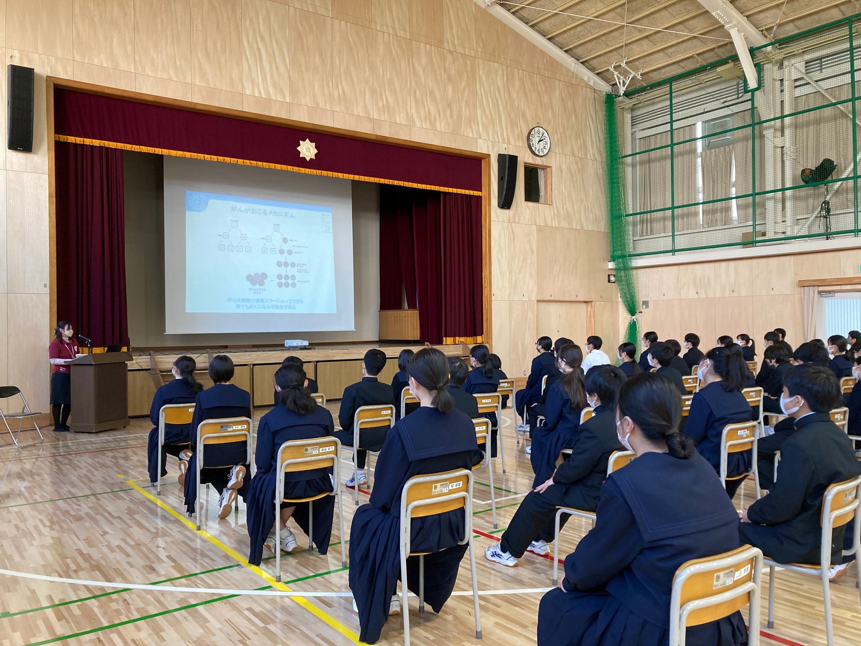 さらに、認定NPO法人乳房健康研究会が行う「ピンクリボンアドバイザーによるがん教育プロジェクト」の支援も実施。がんを経験したピンクリボンアドバイザーが中学校?高校でがんに関する授業を行う活動で、講師自らの経験を踏まえ、正しい知識を伝えることで、学生の健康に対する意識向上を目指しています。