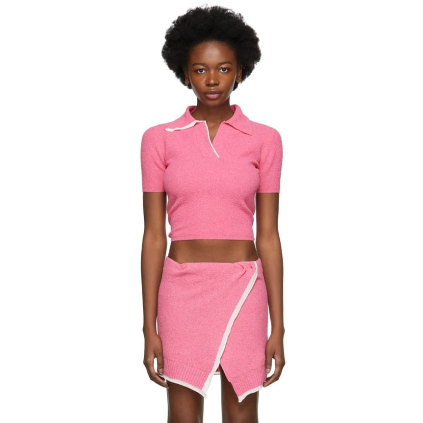 「ジャックムス(JACQUEMUS)」から、フレッシュなピンクカラーにホワイトラインのアクセントが効いたシャツをピックアップ。後ろ姿でドキッとさせる、カットアウトとリボンがポイントです。