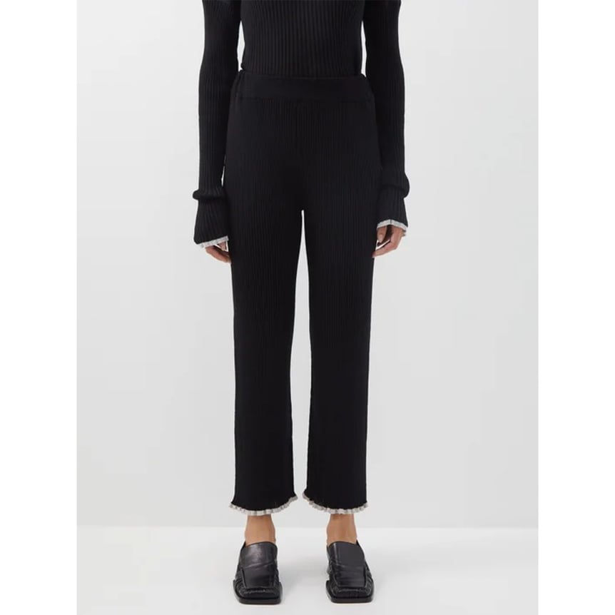 楽ちんな履き心地から支持を得ているリブニットパンツ。今季新調するなら「エムエム6 メゾン マルジェラ(MM6 Maison Margiela)」のパンツに決まり。裾にあしらったホワイトのラッフルでさりげなくコントラストを効かせた、シックな印象の一本です。