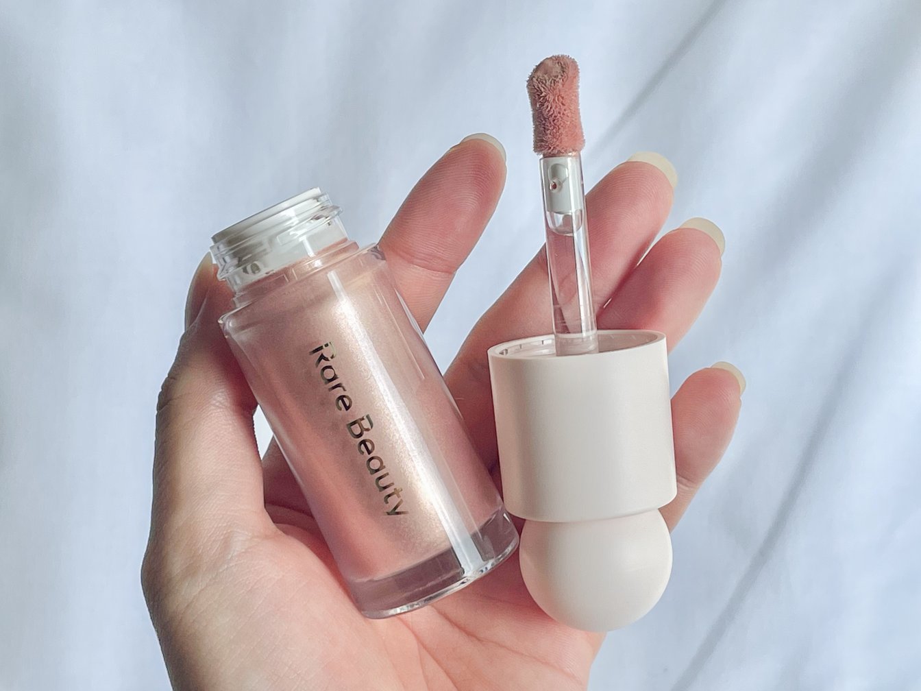 ? Rare Beautyは欧米を中心に展開しているコスメショップ「セフォラ(Sephora)」で販売されています。どのセフォラに入っても大きな棚を独占していて、存在感抜群なブランドです。あれこれ見ていたら、フレンドリーな店員さんが話しかけてきて「私のおすすめはこれよ!」と差し出したのが、このリキッドハイライター。