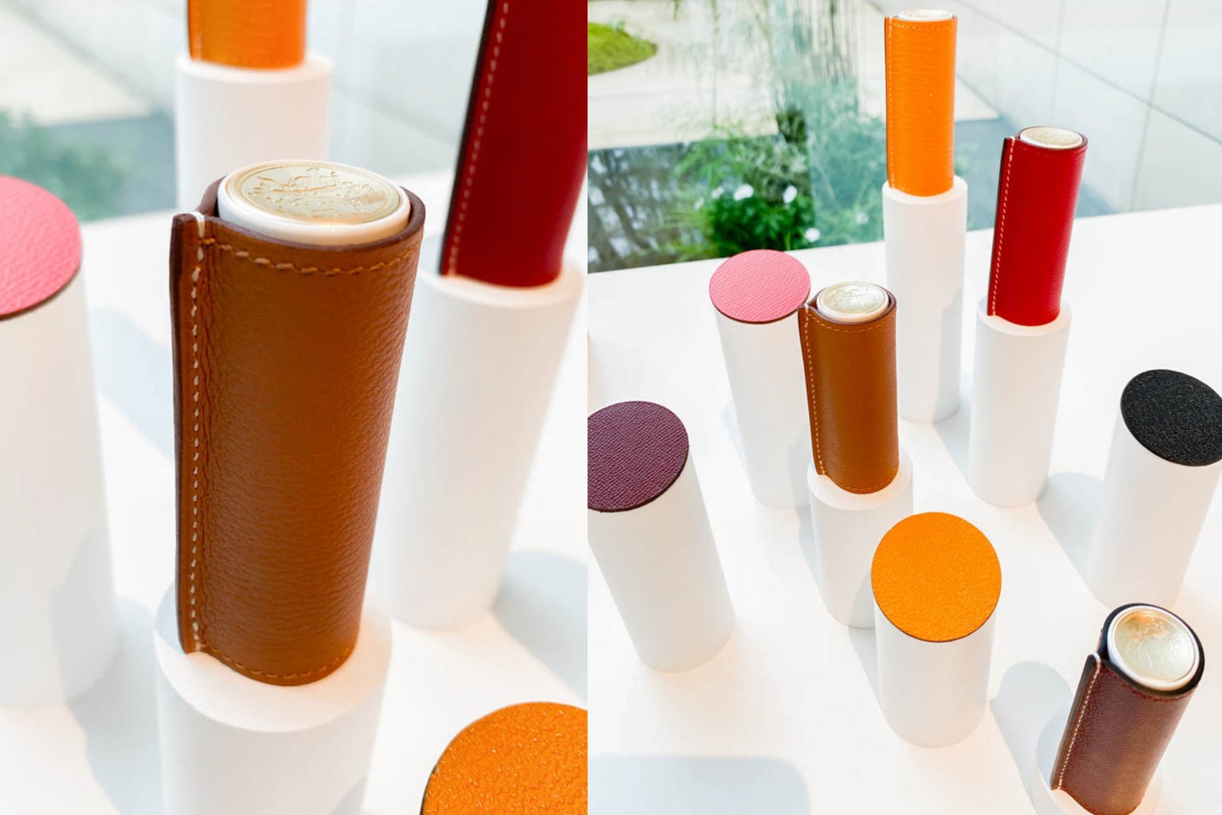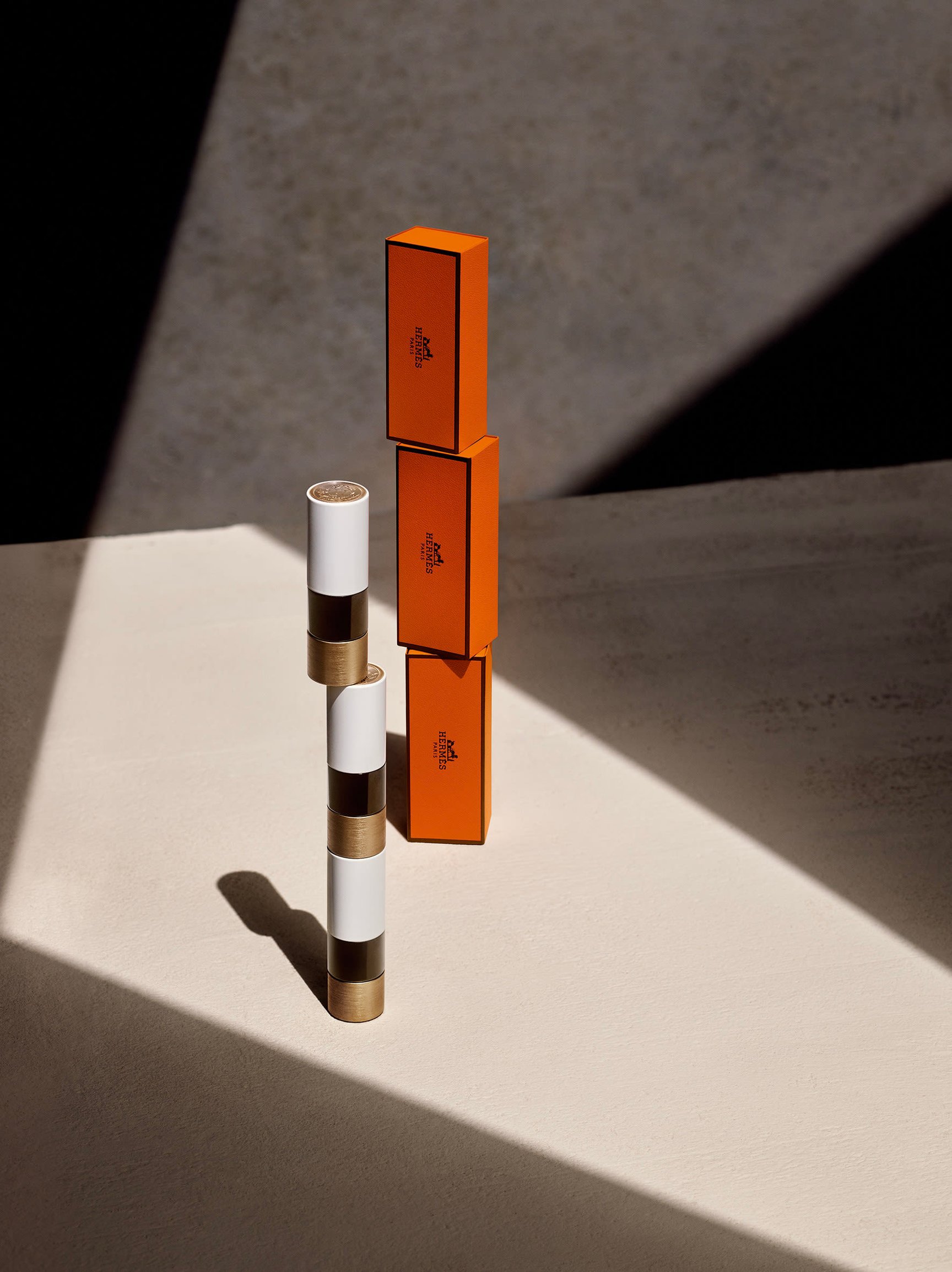 「色を決める過程は、色彩から色彩への旅のようなものでした」。ジェロームは、メゾン独自の7万5000色におよぶシルクの色見本と、900色のレザーの色見本から選んだ色を、マットやサテンの質感に落とし込んでいく作業を繰り返したという。中でも真っ先に決まったのは、メゾンのシグネチャーカラーとして親しまれている深みのあるレッド「ルージュ?H(Rouge?H)」や、1942年に誕生したオレンジボックスのカラー「オランジュ?ボワット(Orange?Bo?te)」、アイコンバッグのひとつ「ケリー」の代表色で微かにブルーを帯びたレッド「ルージュ?カザック(Rouge?Casaque)」。いずれもエンブレム?コレクションに欠かせないカラーとなっている。