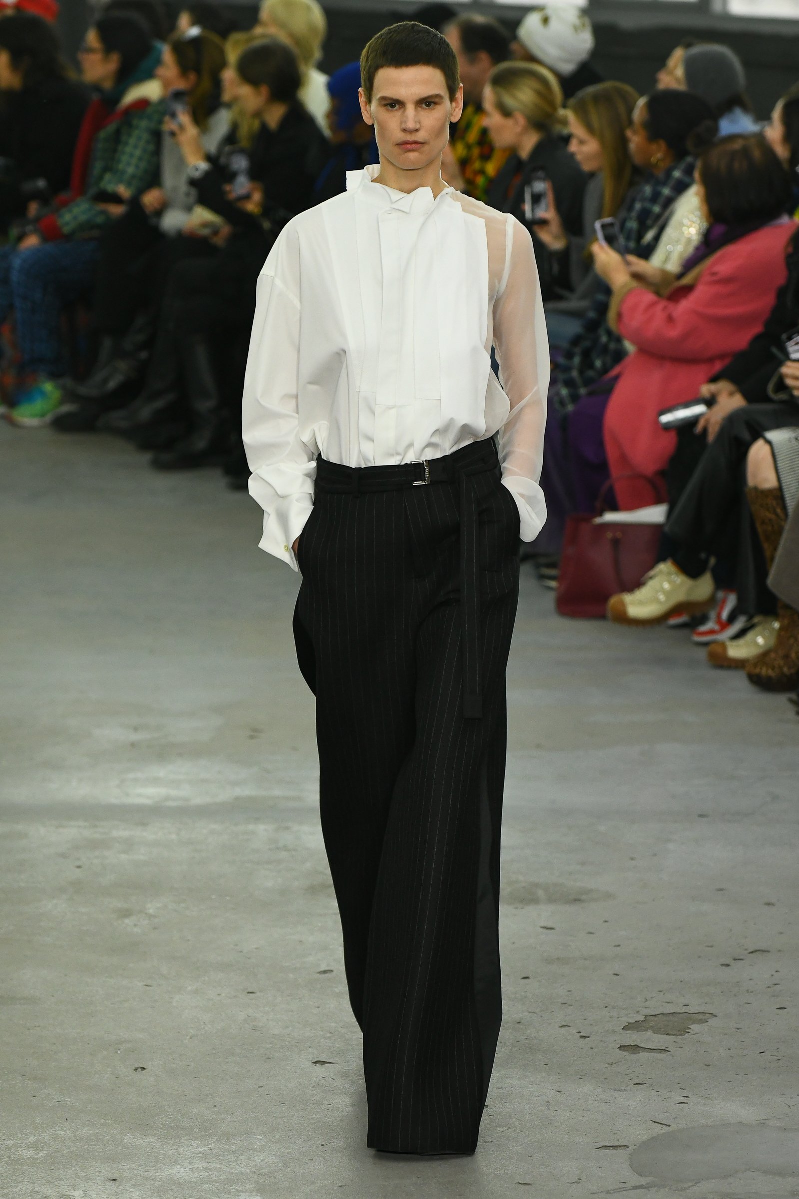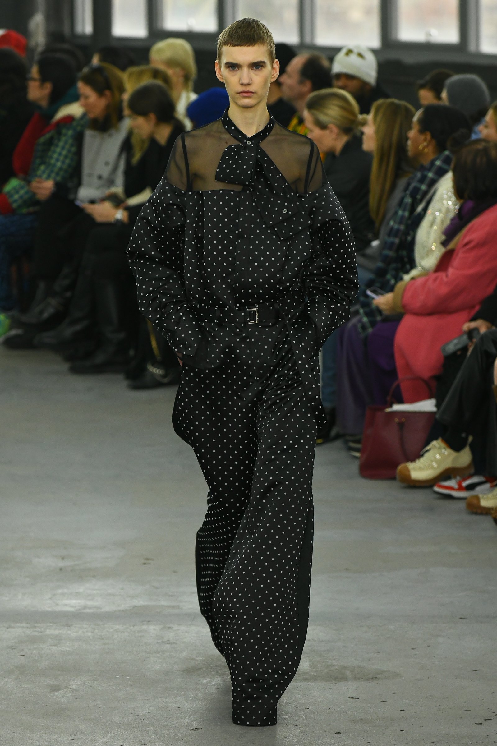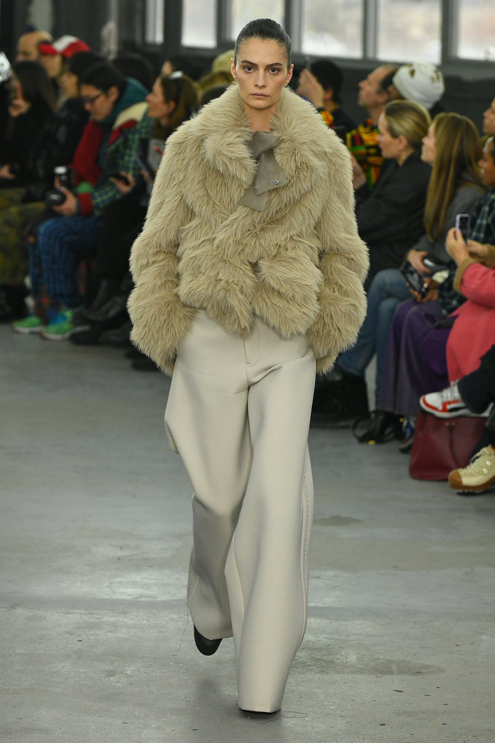 ショー会場となったのはパリ15区、セーヌ川沿いに建つ旧ルノーのガレージ。低い天井と打ち放しのコンクリート、シルバーのボックス型の椅子が、インダストリアルな雰囲気を漂わせる。招待客の中には、昨年「カルティエ(Cartier)」と取り組んだ限定ジュエリーコレクションのヴィジュアルに起用された宇多田ヒカルの姿もあった。