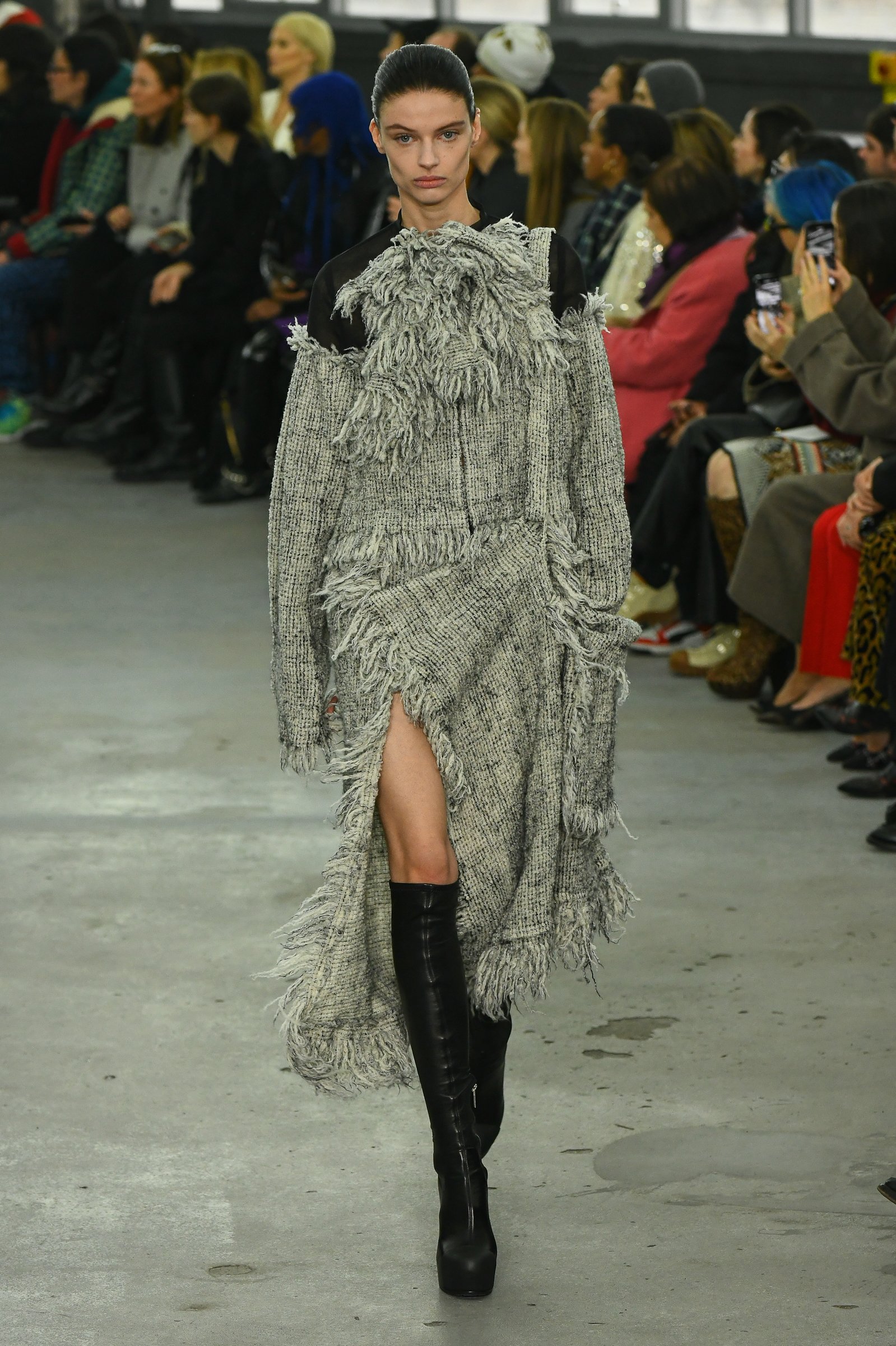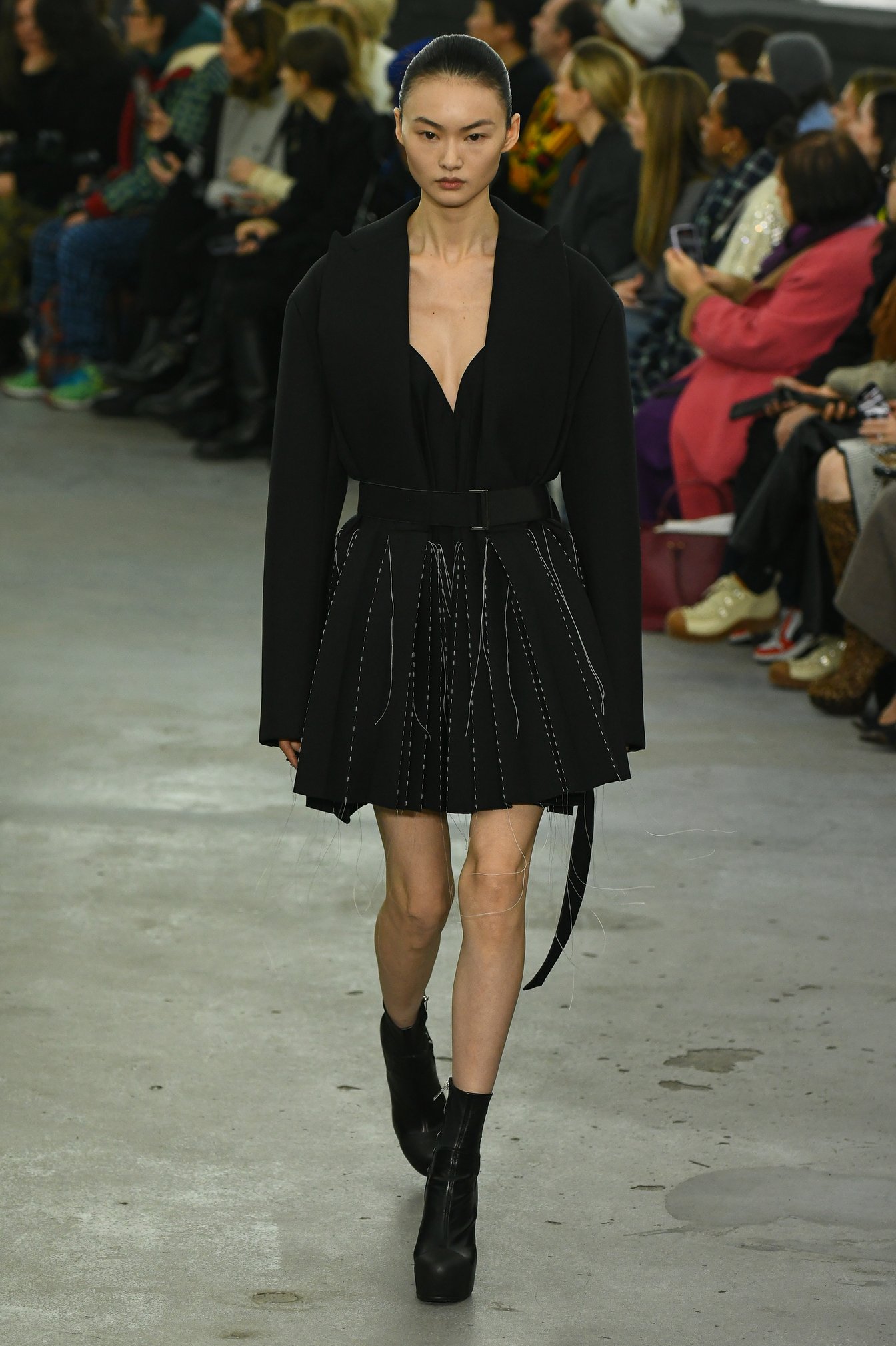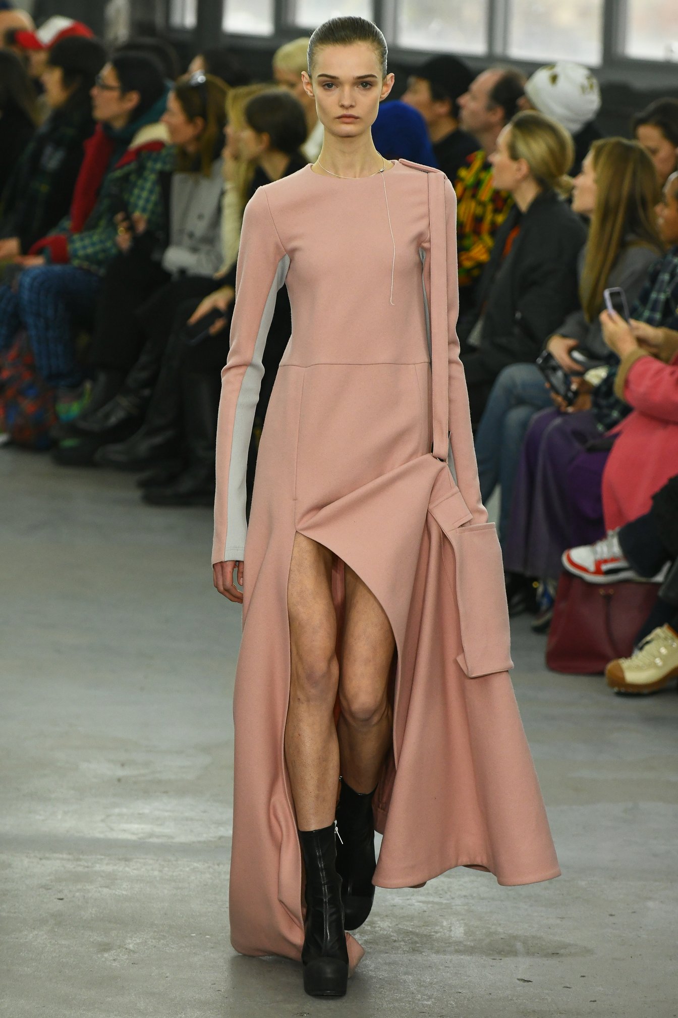 ショー会場となったのはパリ15区、セーヌ川沿いに建つ旧ルノーのガレージ。低い天井と打ち放しのコンクリート、シルバーのボックス型の椅子が、インダストリアルな雰囲気を漂わせる。招待客の中には、昨年「カルティエ(Cartier)」と取り組んだ限定ジュエリーコレクションのヴィジュアルに起用された宇多田ヒカルの姿もあった。