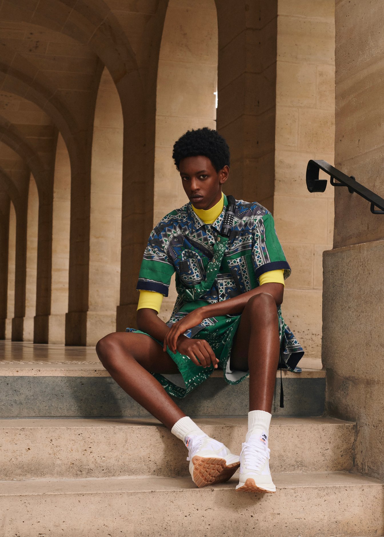 シューズでは「ナイキ(NIKE)」の「ブレーザー LOW(Blazer Low)」の新色をスタイリングに用いたほか、新たなデザインも登場。
