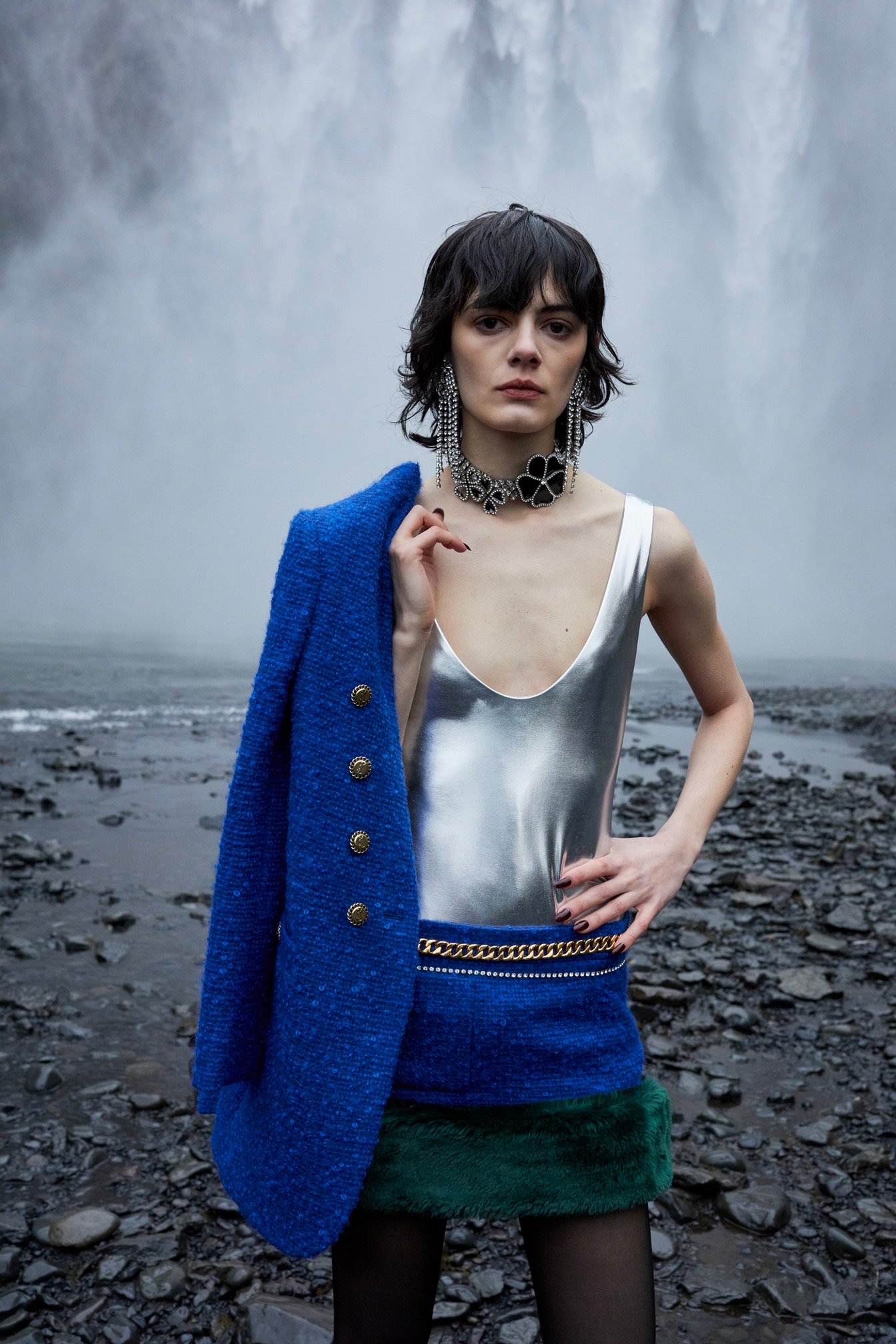 前回の砂漠のランウェイに続き、「サンローラン(SAINT LAURENT)」の新作2021年ウィンターコレクションもダイナミックな自然が舞台。滝や氷河、荒涼とした大地といったアイスランドの荘厳な景色と、コレクションの輝きがコントラストを描いた。