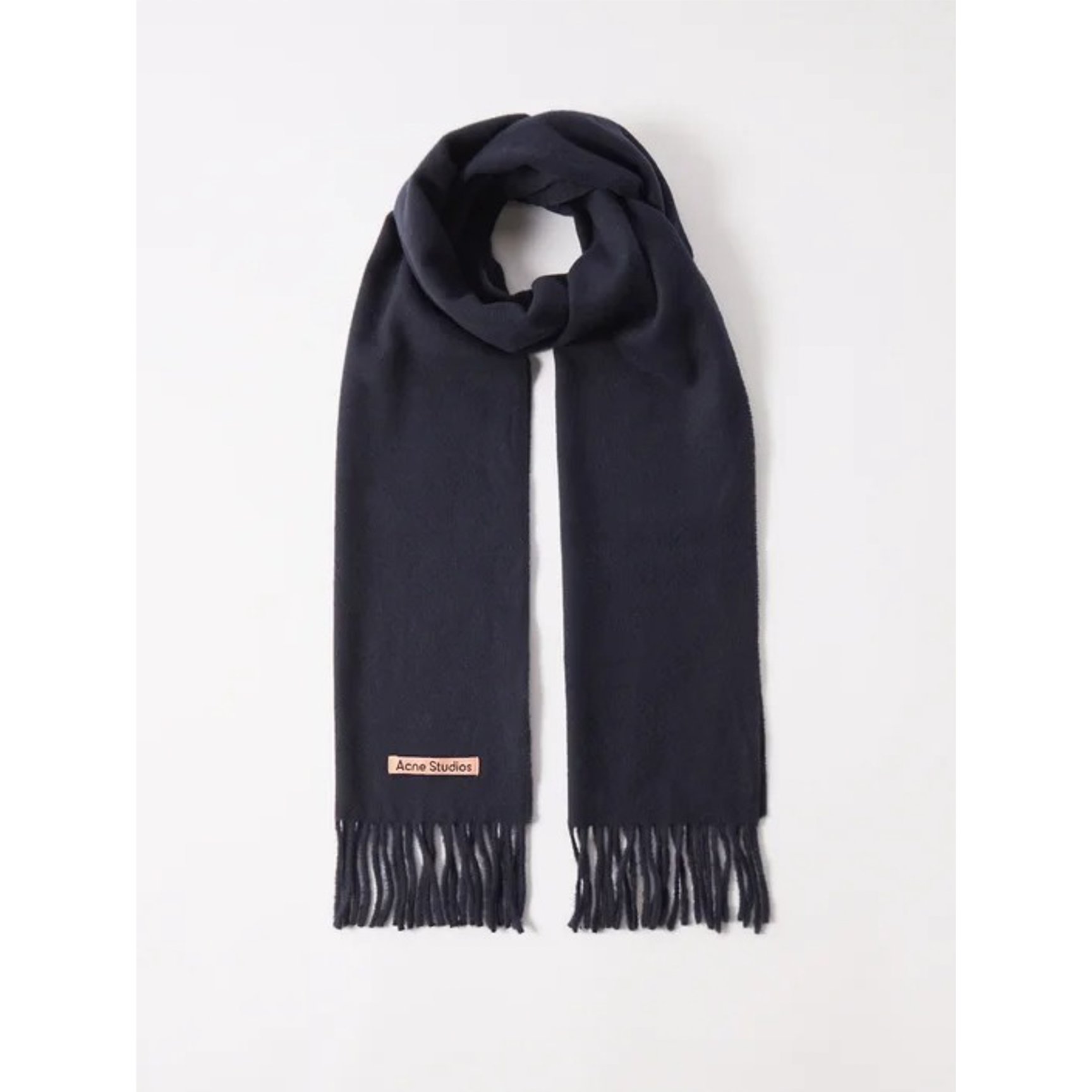 品のあるウールの面持ちと、中厚手の生地感が嬉しい「アクネ ストゥディオズ(Acne Studios)」のマフラー。黒ではなくネイビーなので、強くなりすぎずスタイルに馴染みます。
