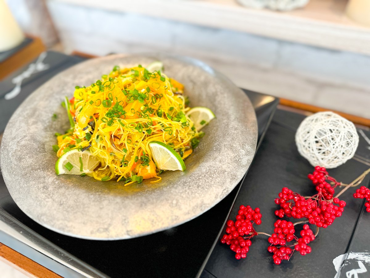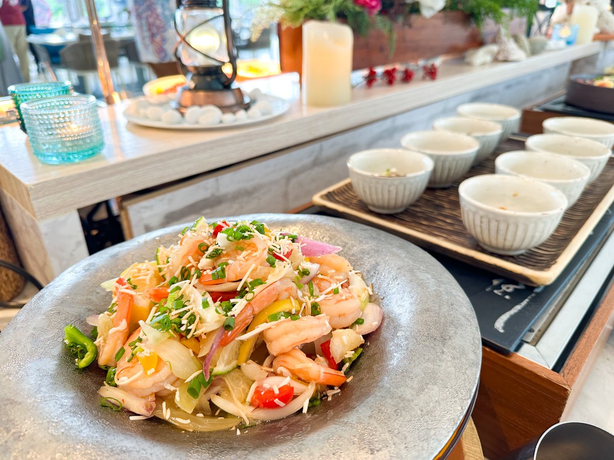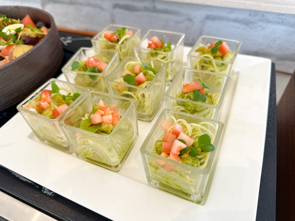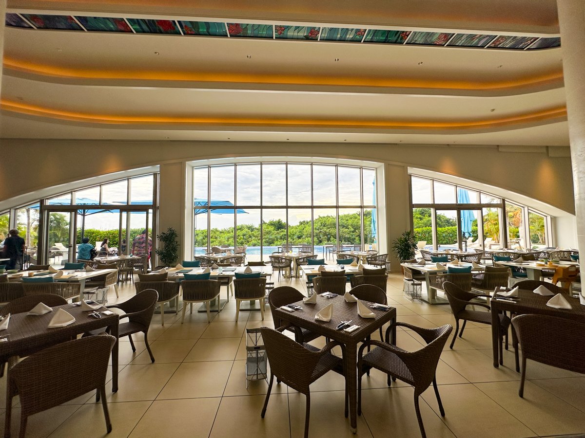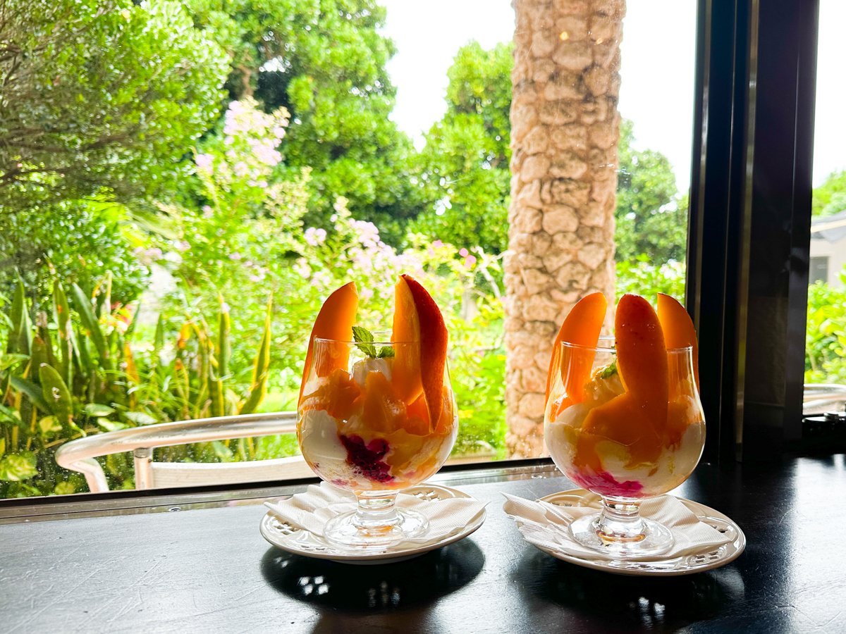 食事は沖縄や宮古島で採れた新鮮な野菜や魚、沖縄特産のアグー豚などのお肉がずらり。室内でのバイキングや、レストラン真横のプールサイドでのBBQなどがあります。カルパッチョなどに使われている魚は、その日に獲れた新鮮な白身魚で、不飽和脂肪酸であるDHAやEPAなどを豊富に含みます。また、沖縄の中でも限られたレストランでしか食べられない、ブランド牛「宮古島泡盛ほろよい牛」の赤身も必見。エサに泡盛の酒粕を混ぜているのだそう。