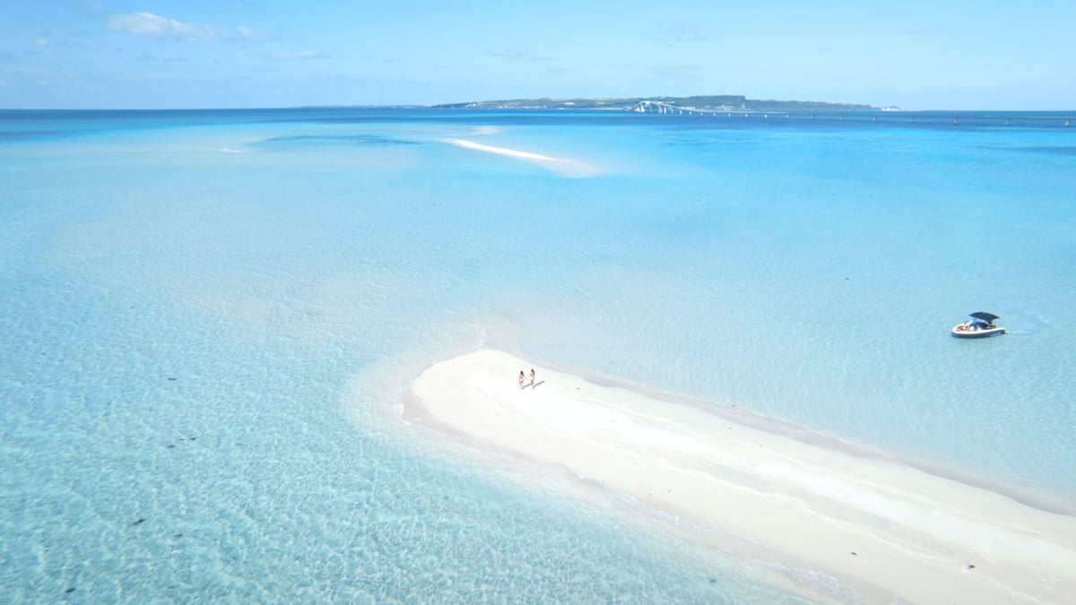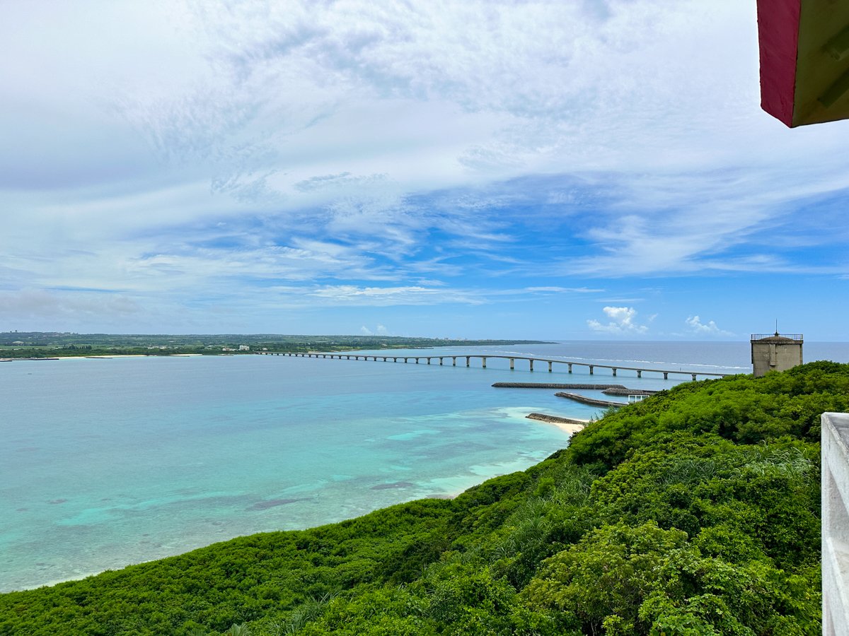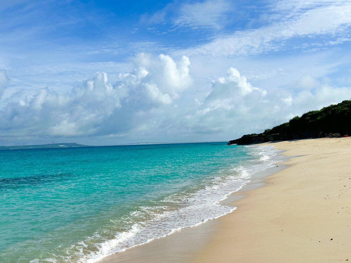 来間島へは空港からレンタカーなどを利用して移動。空港にもレンタカーのカウンターがあるので、スムーズに移動することができます。島へと続く全長1690mの来間大橋からの景色は圧巻です。