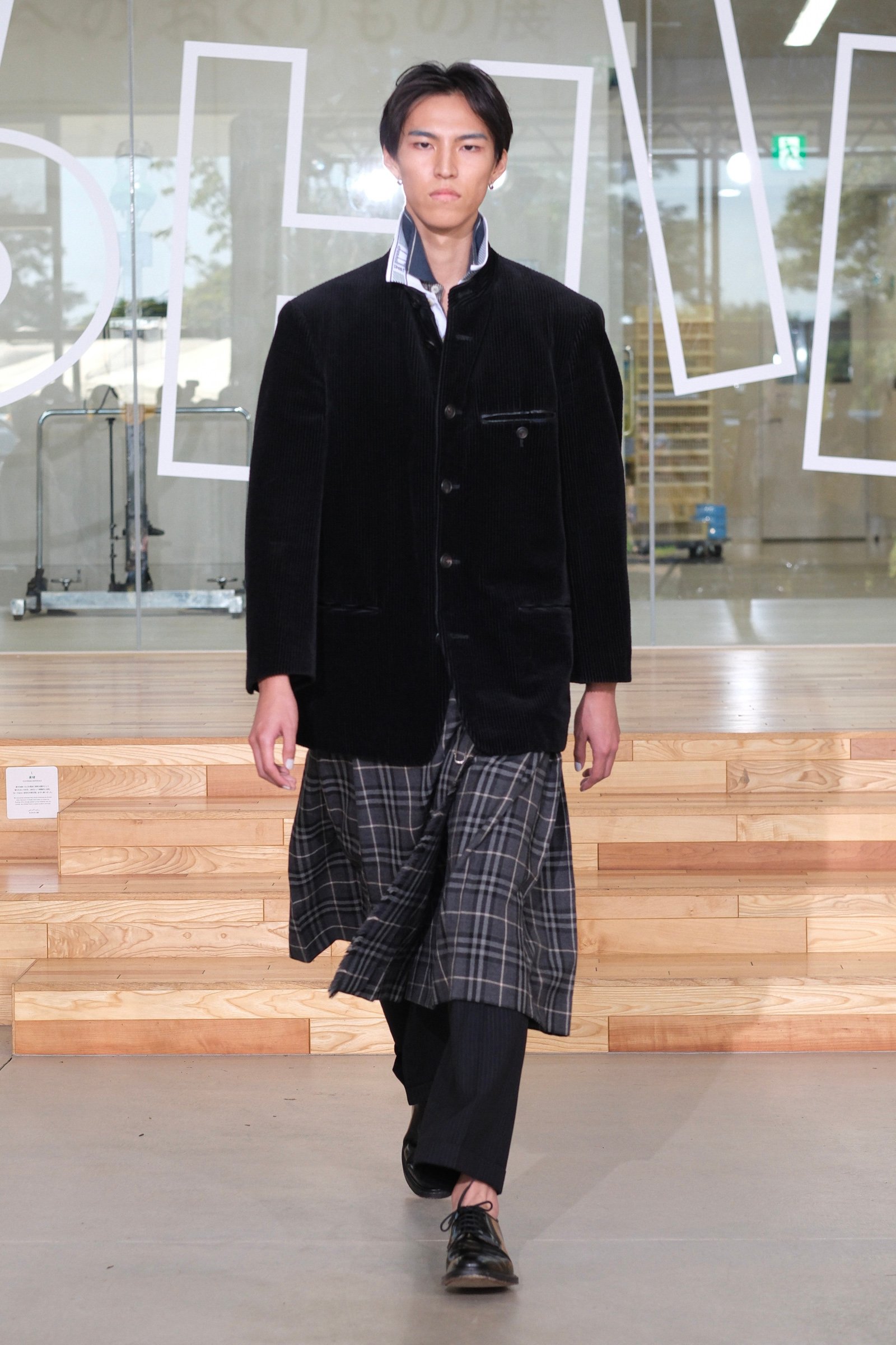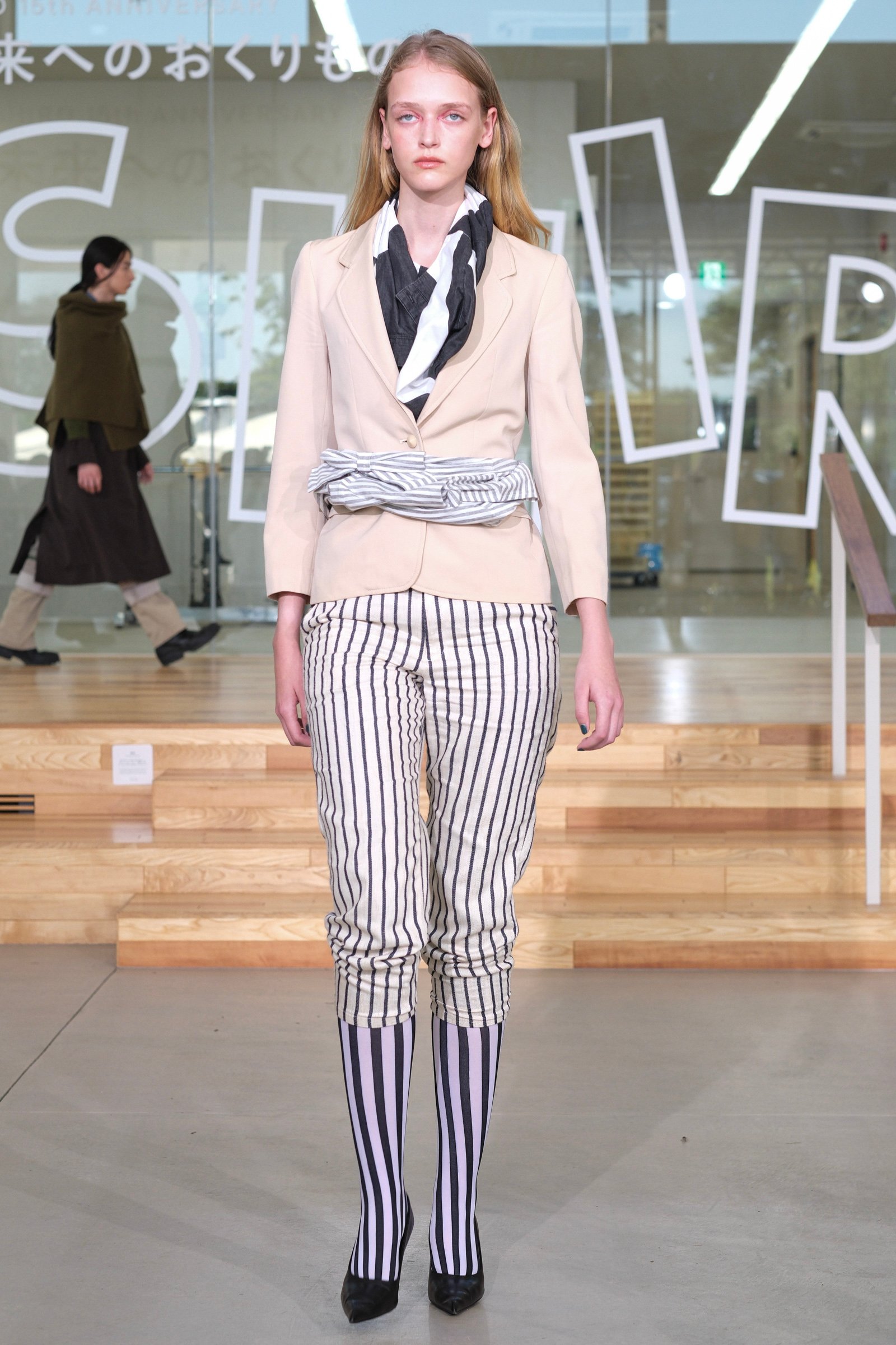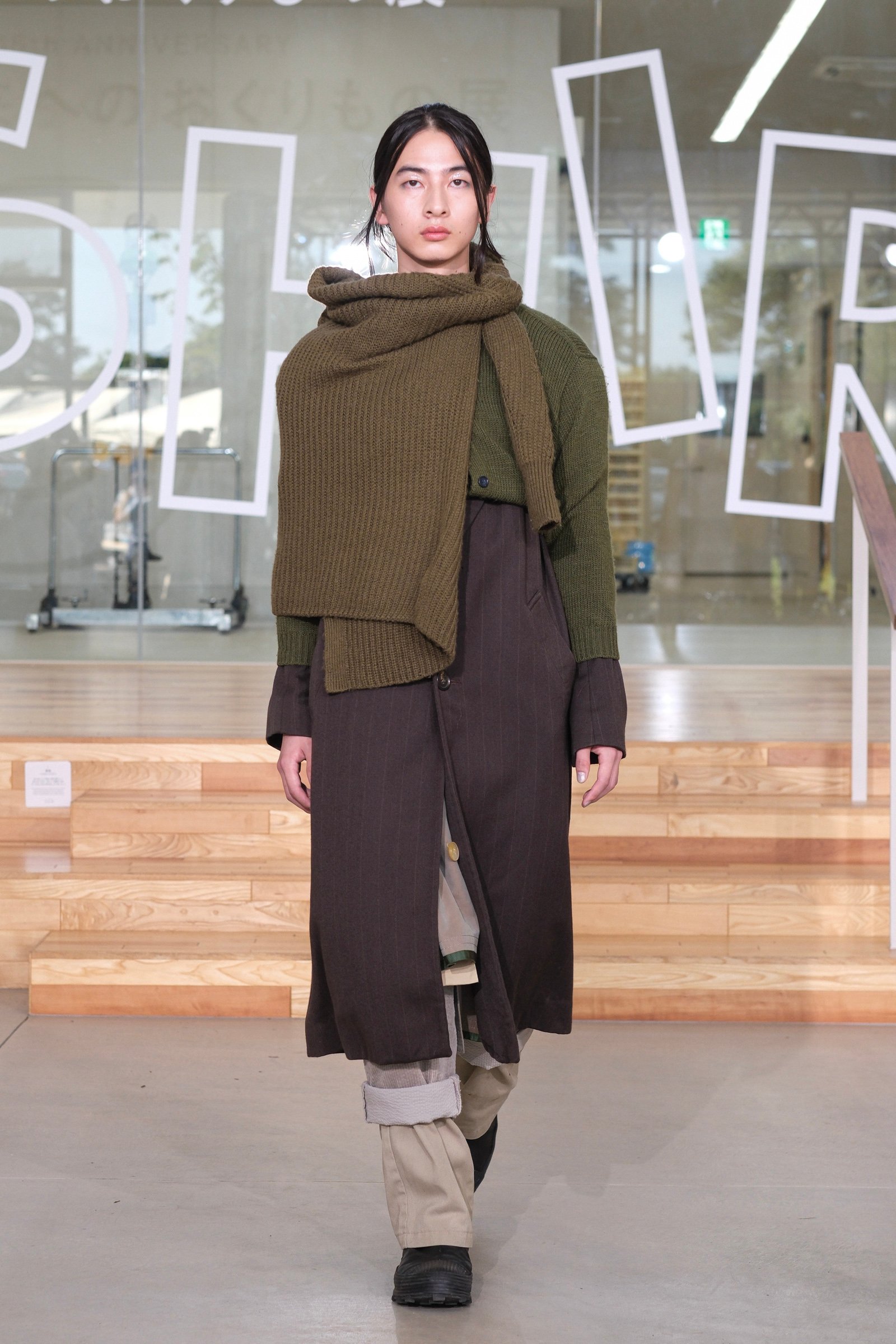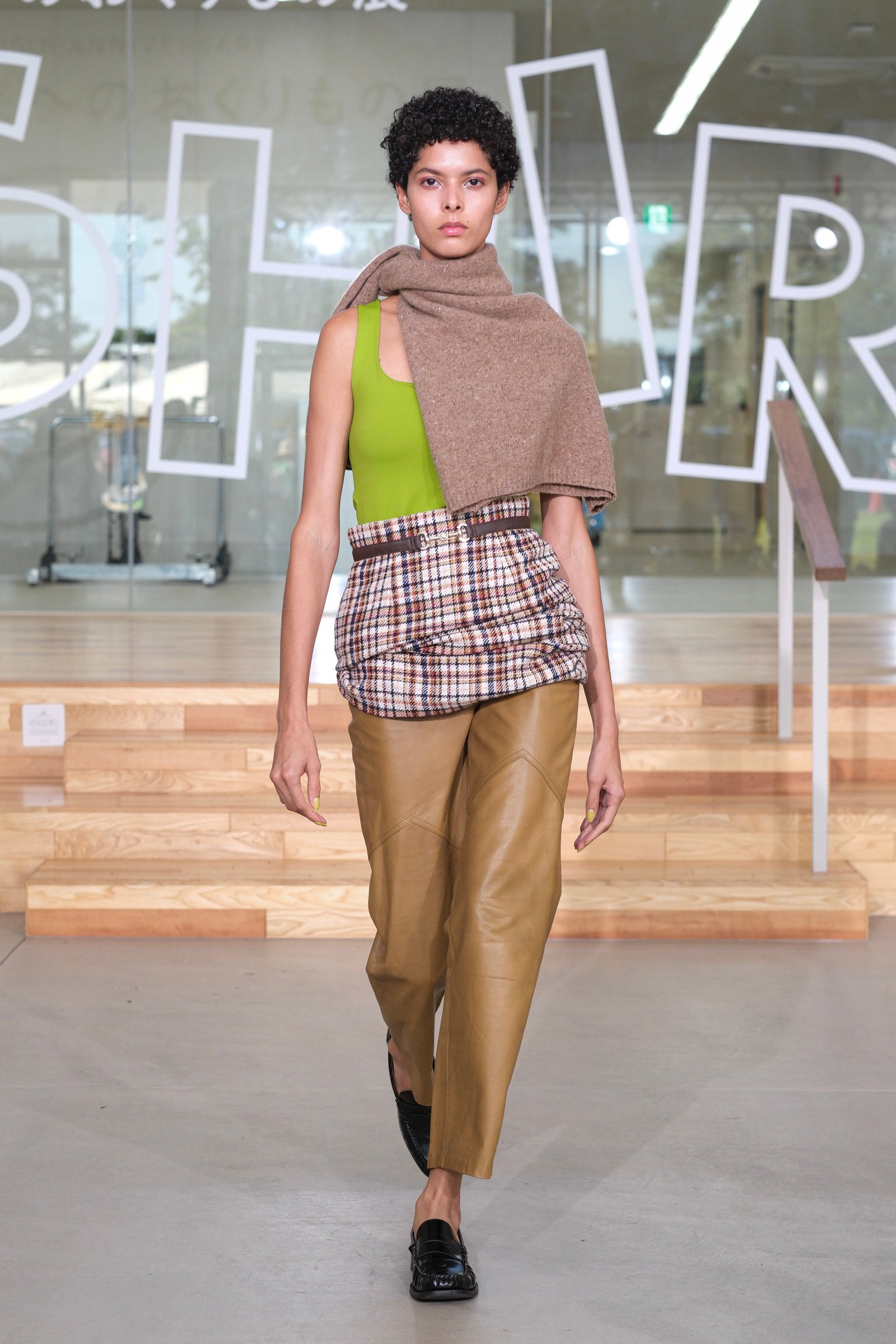 ランウェイモデルは、東京と北海道を拠点とするプロモデルと、工場で働いているスタッフや友人、そしてシロの福永敬弘社長とエコミットの川野輝之社長を加えた総勢22人。身につけていたのは、エコミットが回収した古着。柄もサイズも不揃いだが、ハサミを入れたり縫い直したりせず、スカートをトップスに用いたり、シャツやパンツを何着か重ねたり、ブラウスをヘアアクセに変えたりと新鮮なスタイリングで、捨てられた服に新たな命が吹き込まれた。