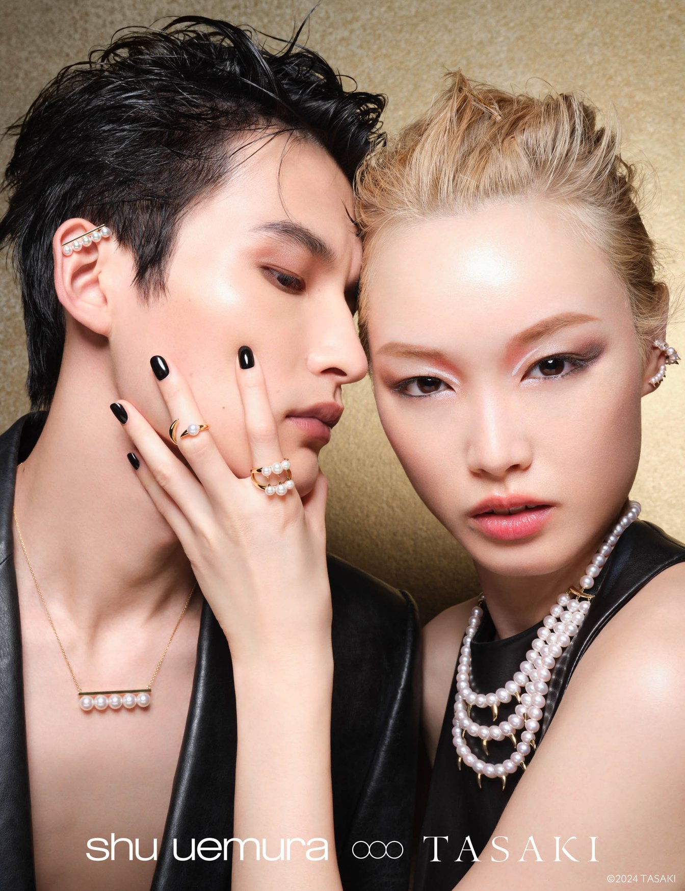 TASAKIのアイコンシリーズ“デインジャー”にインスパイアされたアイシャドウパレットがお目見え。あこや真珠のような輝きを放つ“アコヤ パール シマー”と、TASAKIオリジナルゴールドの「サクラ ゴールド」をイメージしたカラーや、ピュアゴールドカラーの“TASAKI メタリック”、エッジーさを演出できる“シュウ ブラック シマー”といった、TASAKIとシュウ ウエムラのコンビネーションが感じられる全9色がセットされています。