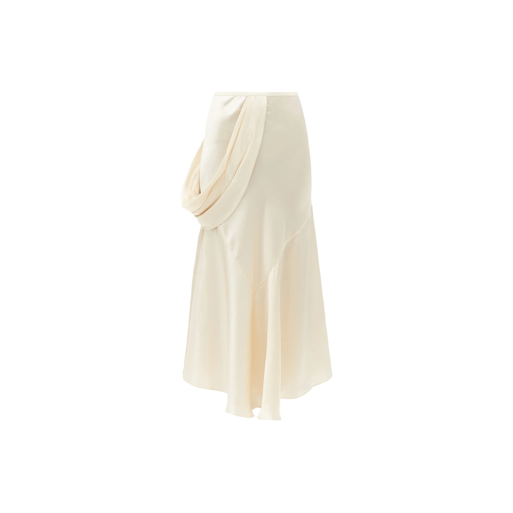 2020年秋冬コレクションより、コレクションのキーテーマとなった光沢感のあるサテン素材を使用したスカートです。優雅なドレープが、贅沢なシルクの輝きをより一層引き立てています。