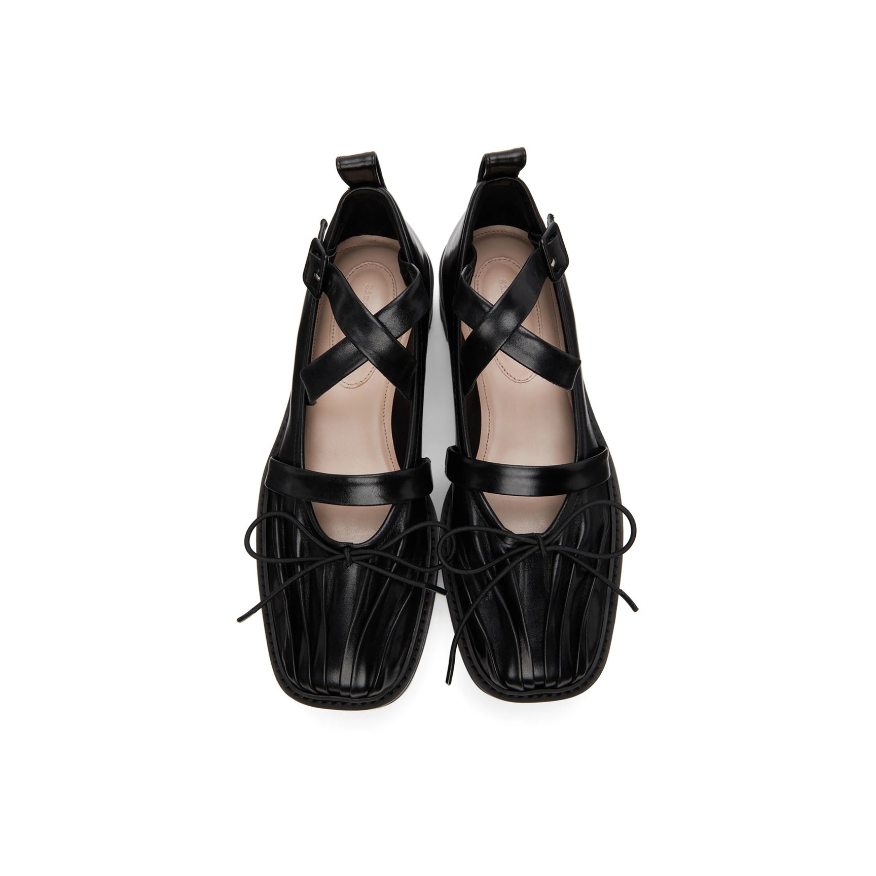 クロスストラップや厚底といったディテールで、少しハードなイメージで仕上げたバレエシューズ。キュートだけれどほんのりとしたエッジも感じる一足です。