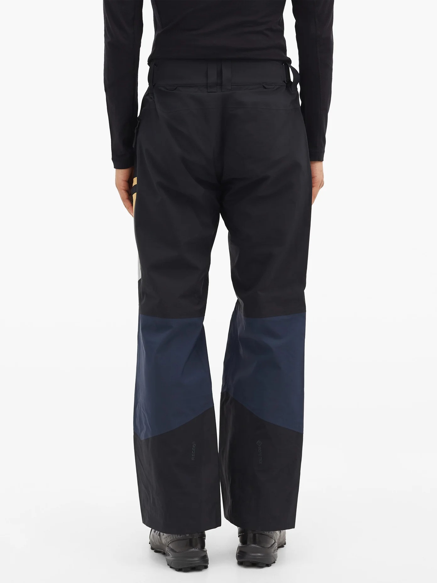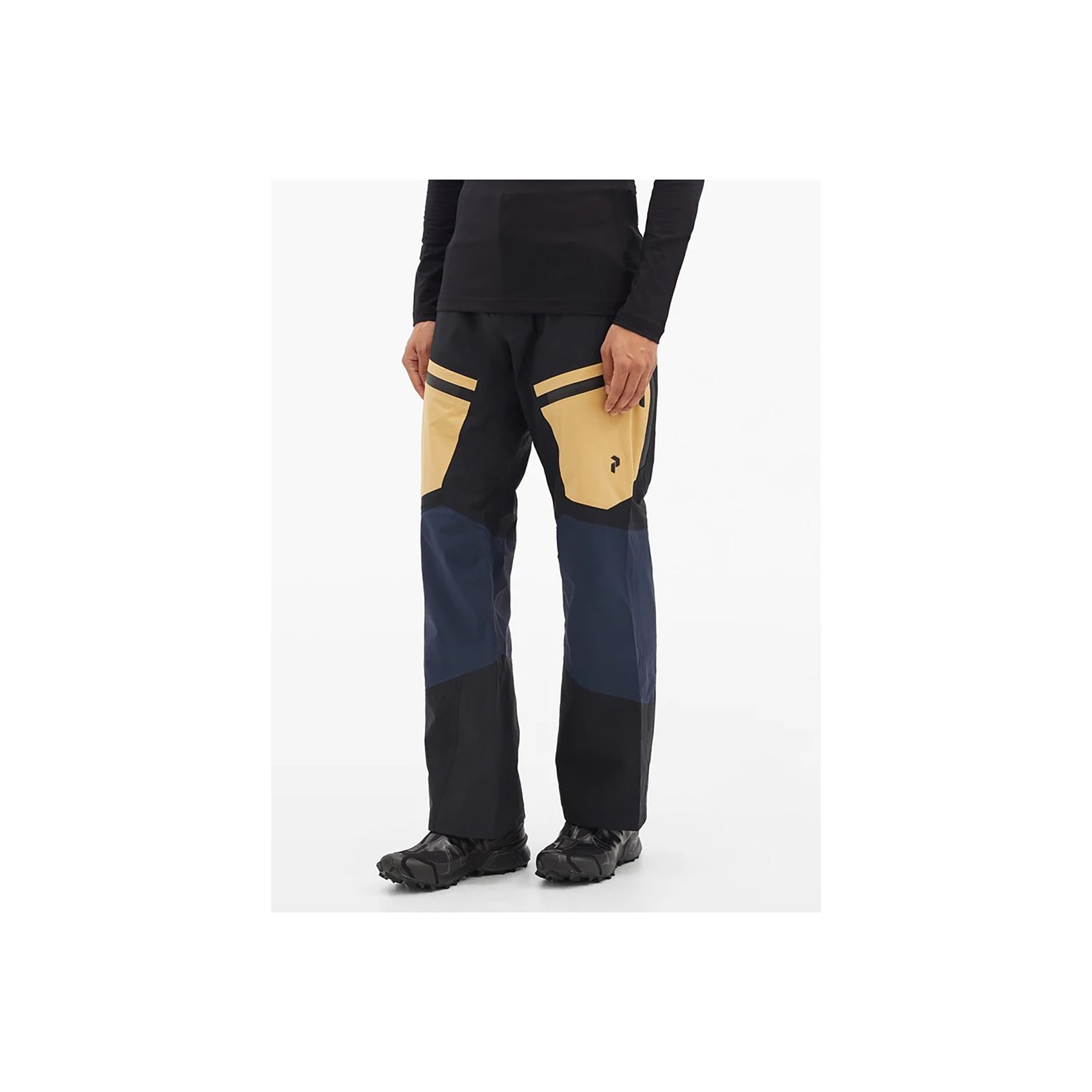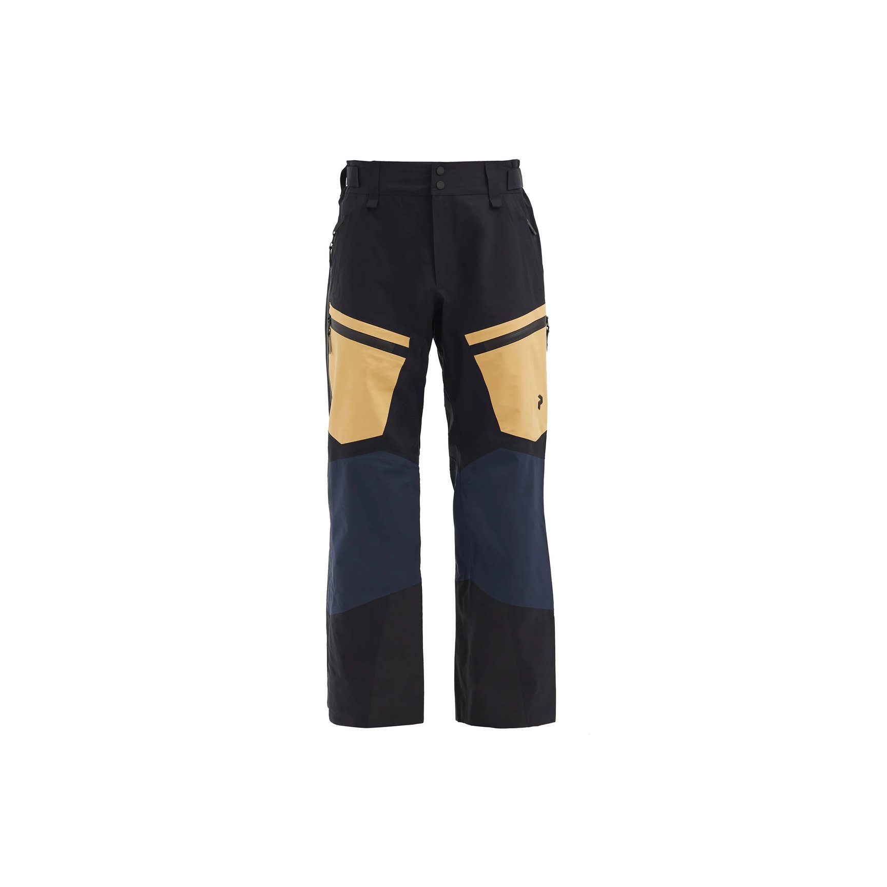 スウェーデン発の「ピークパフォーマンス(PeakPerformance)」の、「ゴアテックス(GORE-TEX?)」素材のスキーパンツです。ブラック×ネイビーをダークトーンカラーをパネル仕立てに組み合わせ、ファスナー付きのイエローのパッチポケットがアクセントになっています。有事の際にも安心な、RECCO?レスキューシステムリフレクターを搭載。