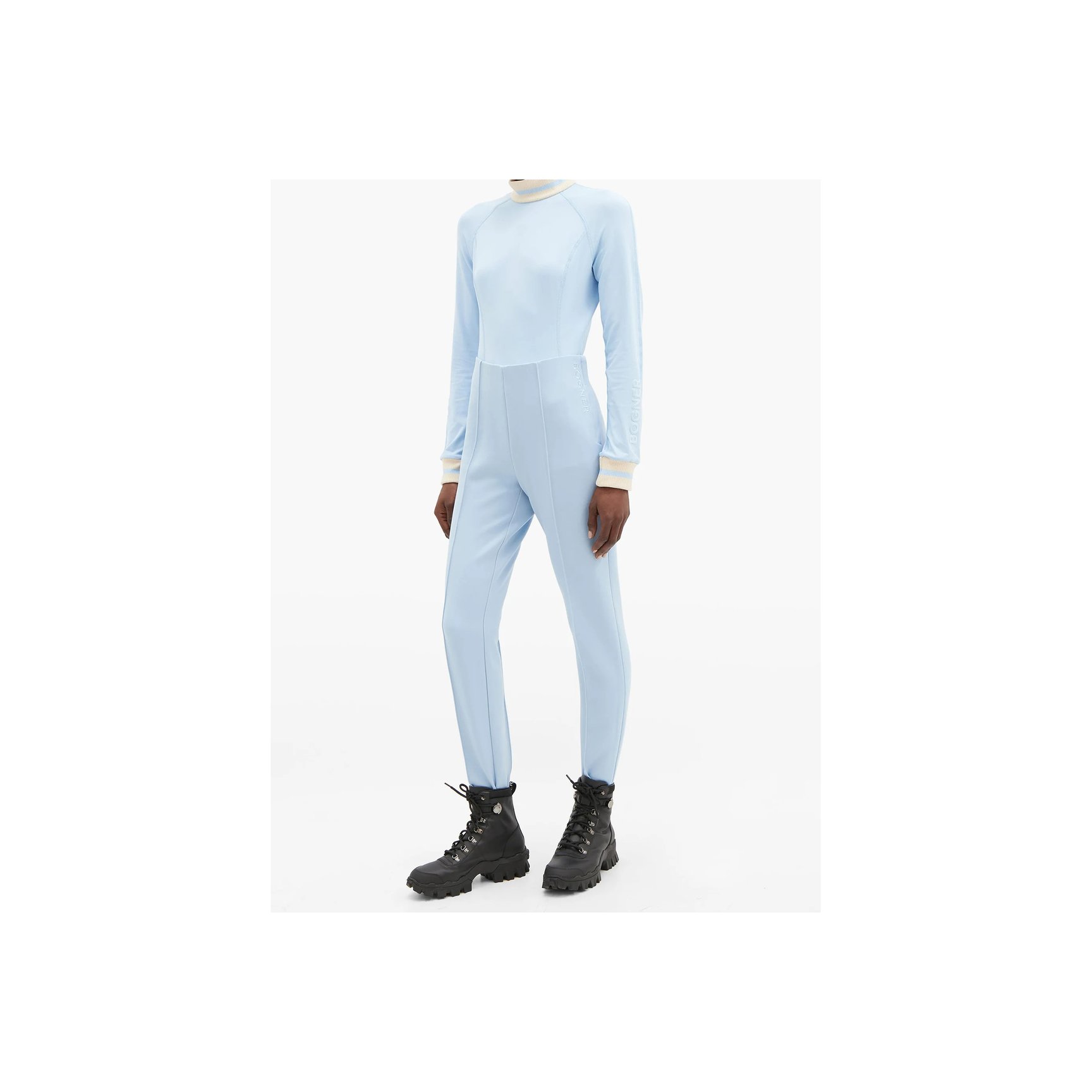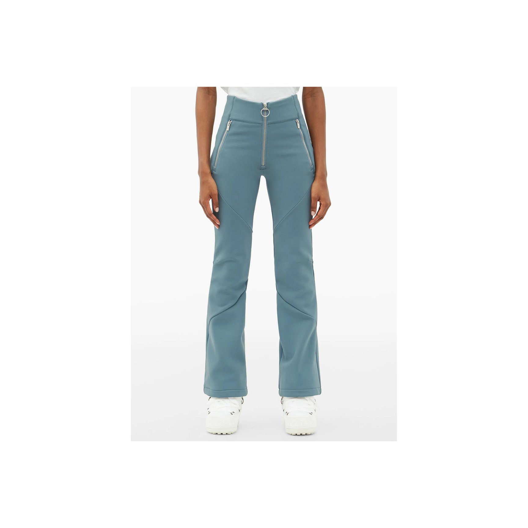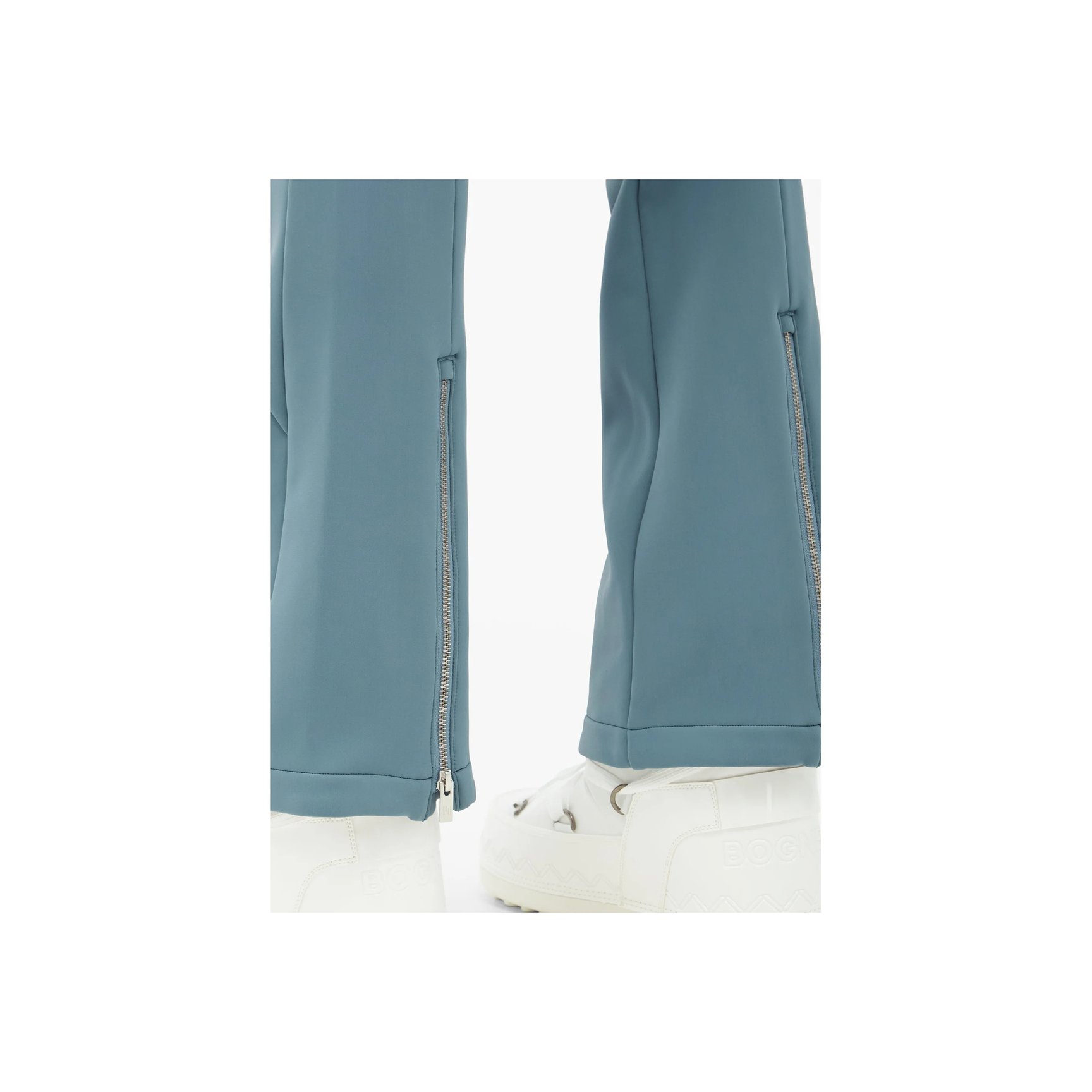 スリムで都会的なシルエットのスキーパンツは、「ボグナー(Bogner)」のもの。ややルーズなシルエットが多いスノーウェアには珍しいですよね。センターに配されたピンタックが洗練された印象のハイライズスタイルです。爽やかなライトブルーも雪山のホワイトにマッチ。スターラップになった裾をブーツにインして、すっきりとした着こなしが決まります。