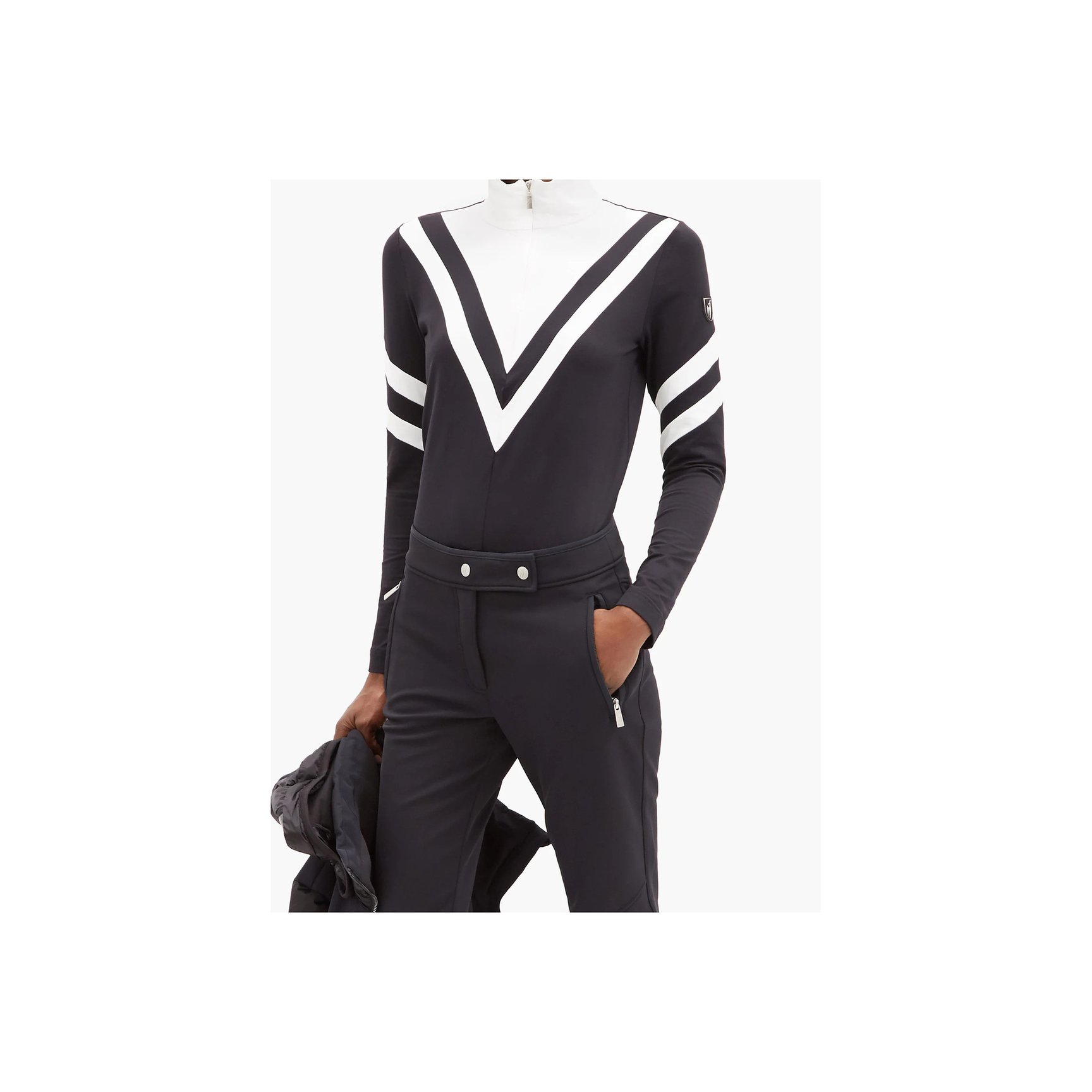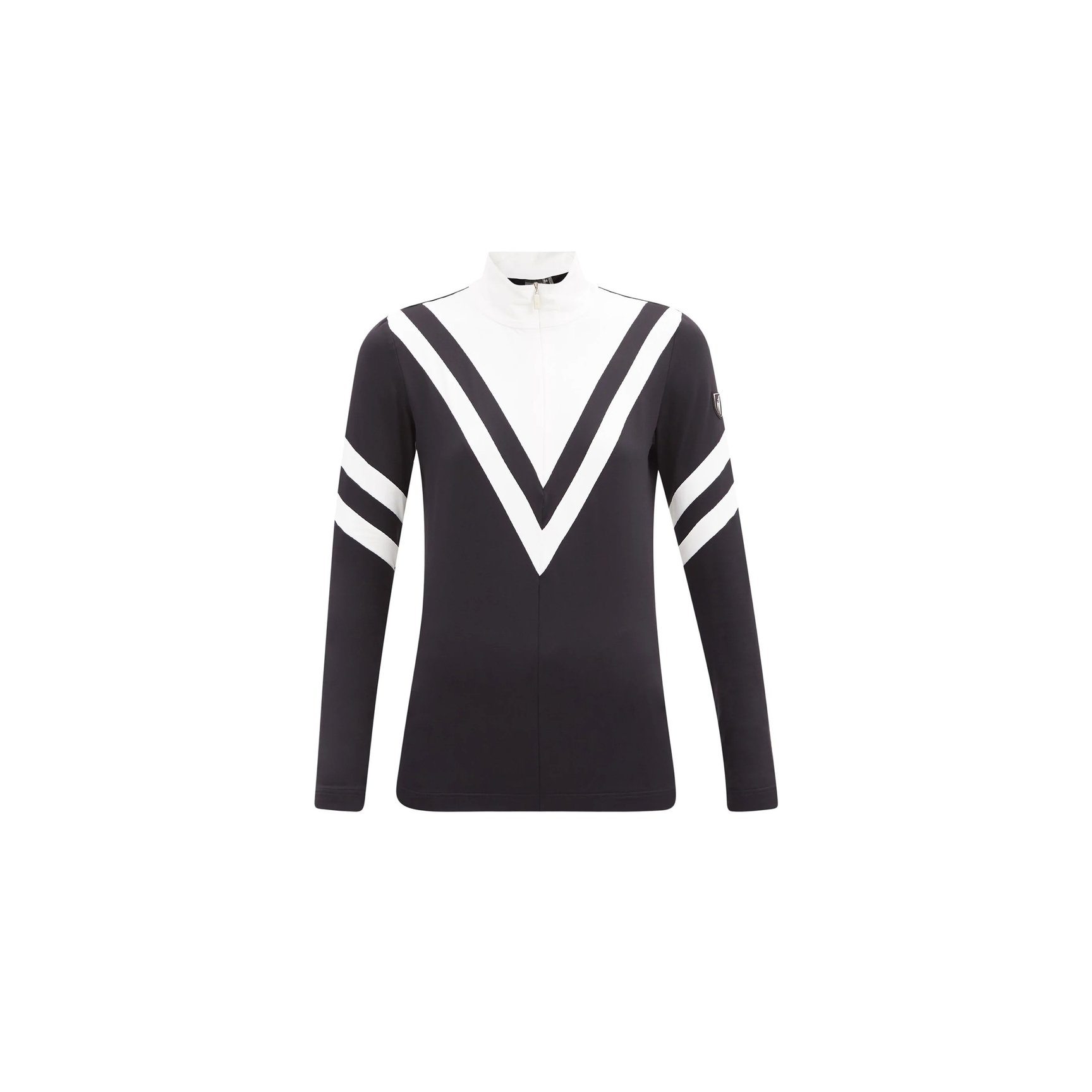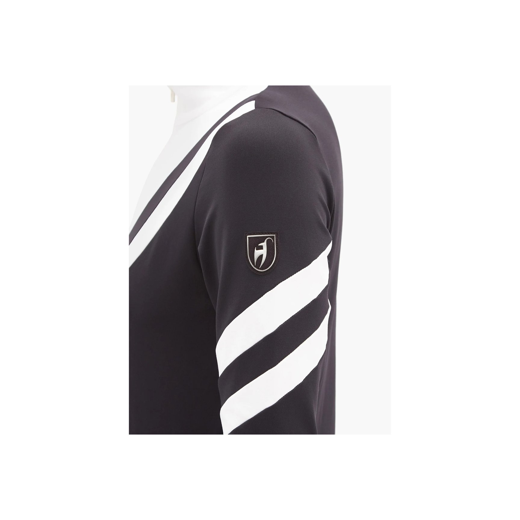 1956年のコルチナ?ダンペッツオオリンピックで世界初の三冠王に輝いたオーストリア人名選手の名前を冠するブランド「トニー?ザイラー(Toni Sailer)」。こちらのテクニカルジャージートップは、温度調節機能付きでインナーに最適。モノトーンのシェブロンストライプが存在感を放っています。
