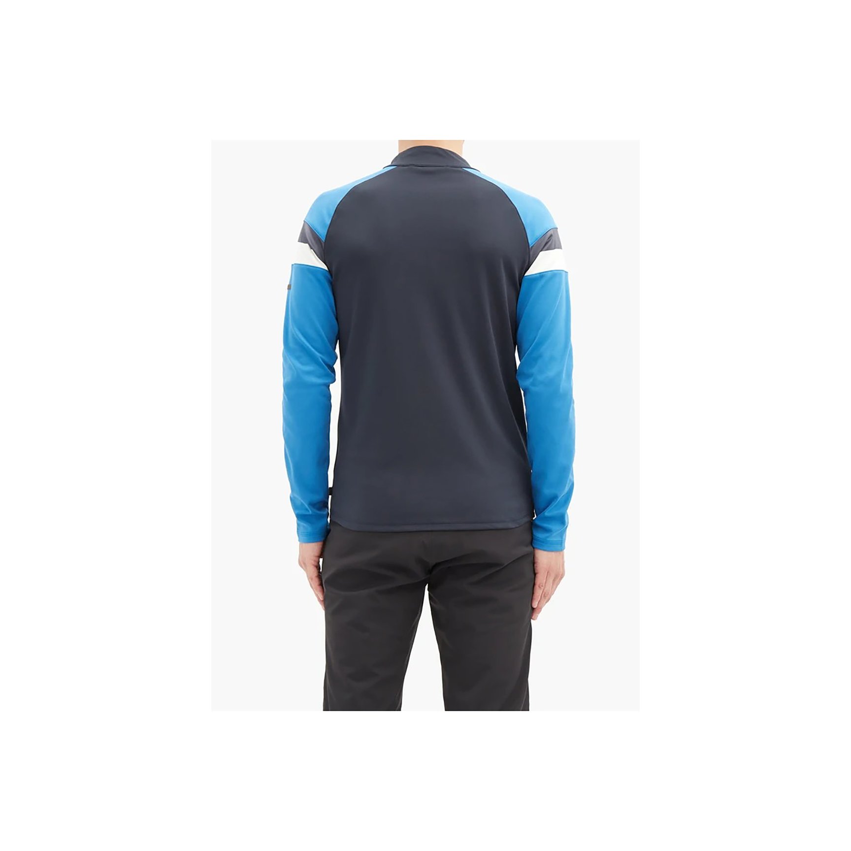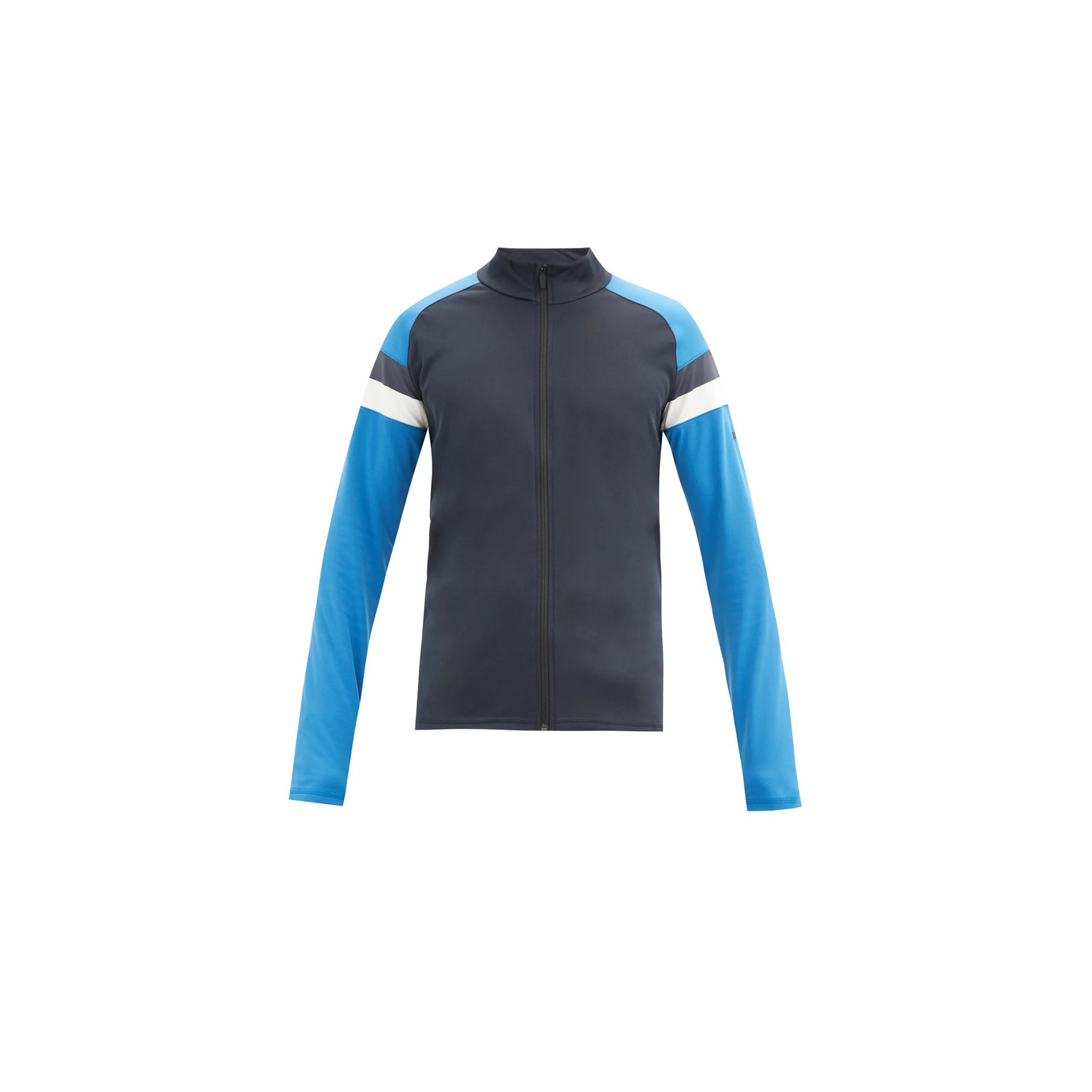 ジャケットを脱いだときにもお気に入りのインナーを身に着けていたら、もっと楽しめそうですよね。スイス発「カプレーナ(CAPRANEA)」のジャージートップは、ブルー系カラーブロッキングに仕上がっています。