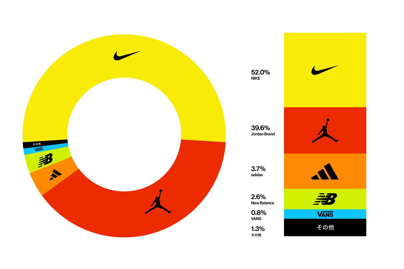 ?G-DRAGON?のピースマイナスワンやサカイなどナイキから話題のコラボスニーカーが発売された11月。上記チャートを見てもわかる通り、同月の全取引数の9割以上をナイキ社が占める独走状態に。近年各社が力を入れて取り組んでいるウィメンズでも、ジョーダン ブランドのエア?ジョーダン?1が人気でした。12月は2年ぶりに発売される「エア マックス 95」のOGカラーや、ナイキとステューシーのコラボによる「エア フォース 1」などに注目です。