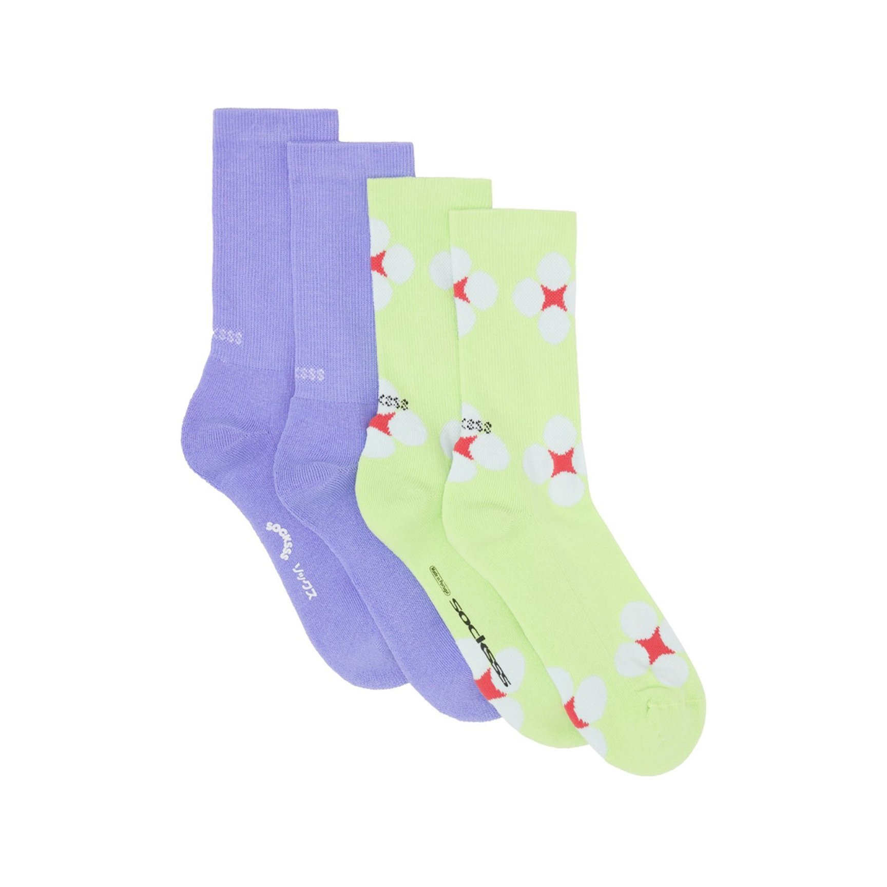 ストックホルム発の靴下ブランド「ソックス(SOCKSSS)」。単色のパープルと、どこかクラシカルな花柄の2足セットが嬉しい。ストレッチ性のあるエコテックス?認証オーガニックコットンとナイロン混ニットを使用しており、地球に優しいうえに履き心地も叶えてくれます。