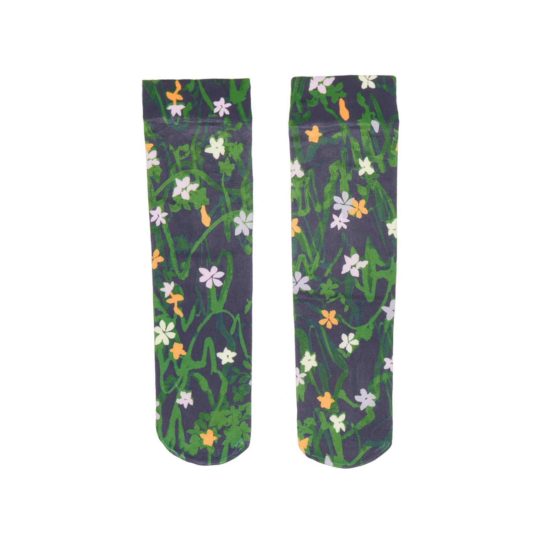 自信と独自性と楽しさのメッセージが込められた「スティーヌ ゴヤ(STINE GOYA)」の可憐なフローラルプリントソックスです。ネイビーをベースにしているので、意外とスタイルに馴染みやすいデザインです。